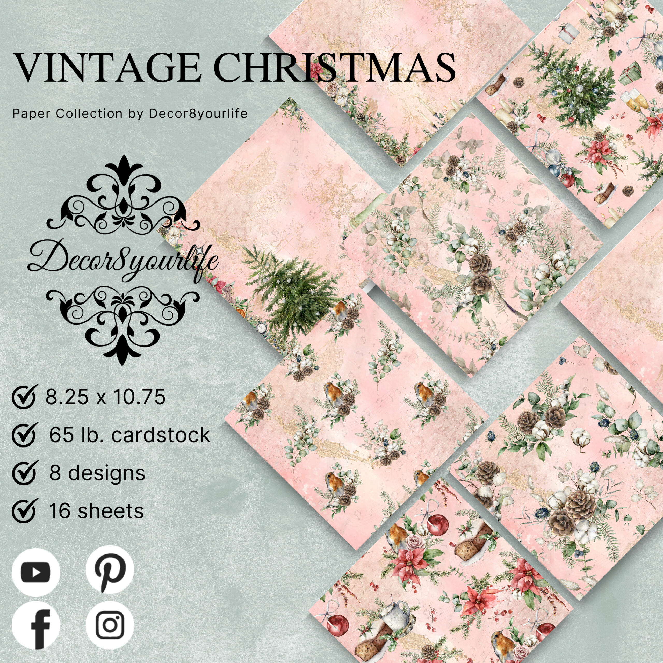Learn about the Vintage Christmas in Pink collection, an adorable shabby chic collection of Christmas paper that includes 16 sheets. These 8.25 x 10.5 single-sided sheets provide lovely vintage images of birds, poinsettias, ornaments, and more for your holiday crafts. Get yours right away to give your holiday crafts a nostalgic touch.