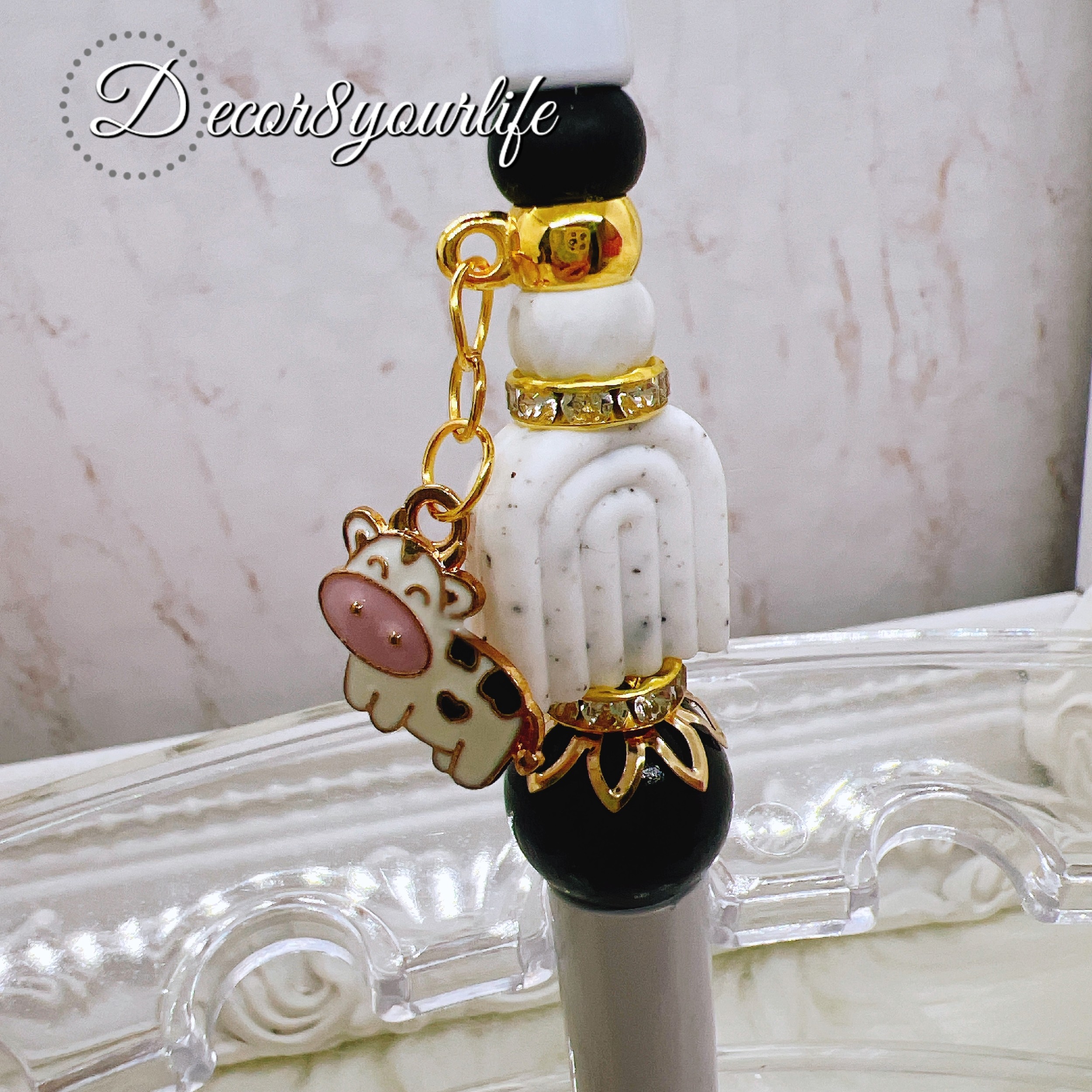 • Materials: Wooden, acrylic, silicone beads, rhinestone spacers, gold-tone bead caps, sturdy pen parts