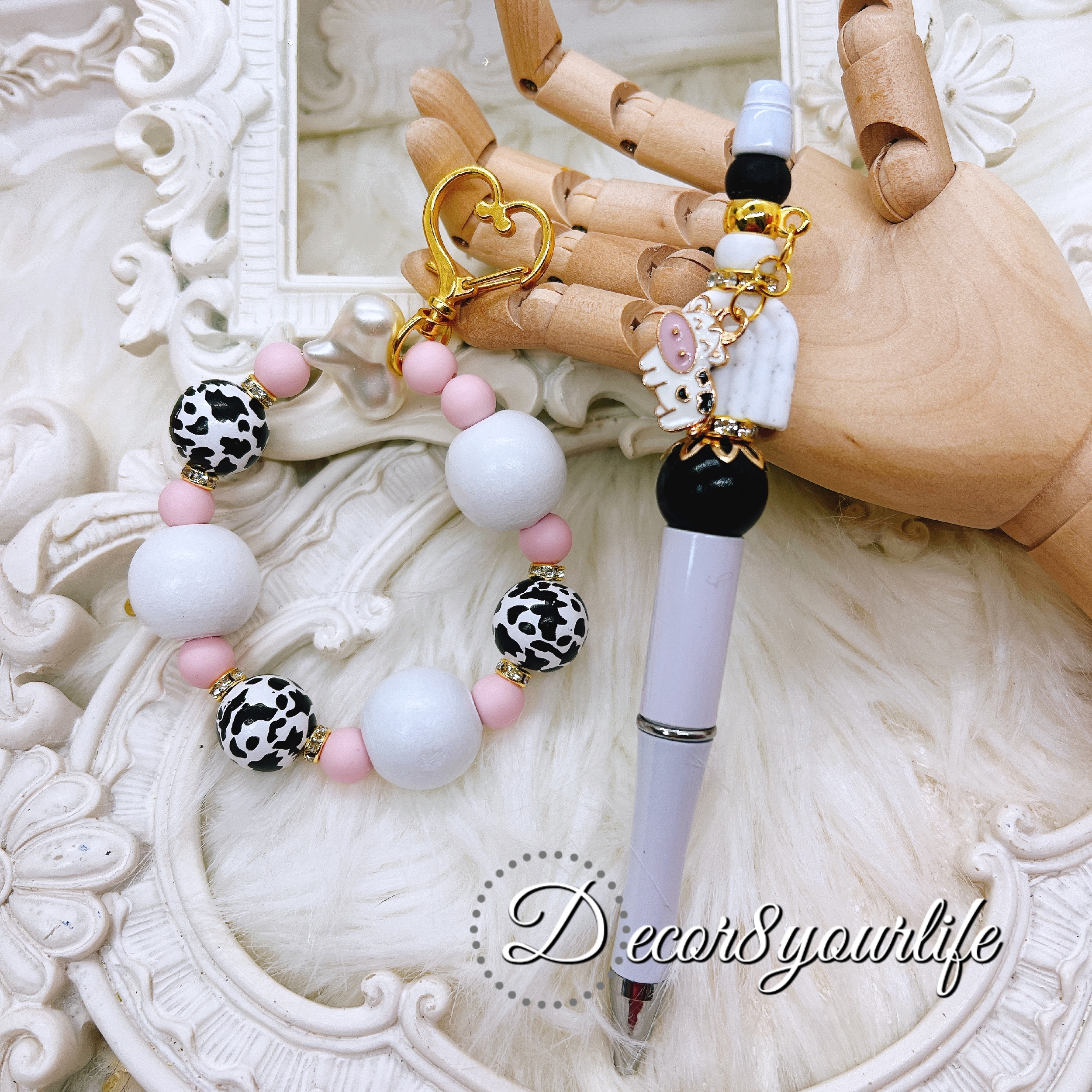 The wristlet keychain is equally stylish and practical, allowing you to easily keep track of your keys while on the go. Made with the same high-quality beads, it pairs perfectly with the pen, creating a coordinated set that’s both fashionable and functional. The gold-tone hardware and heart-shaped clasp add a whimsical touch, while the durable construction ensures longevity.