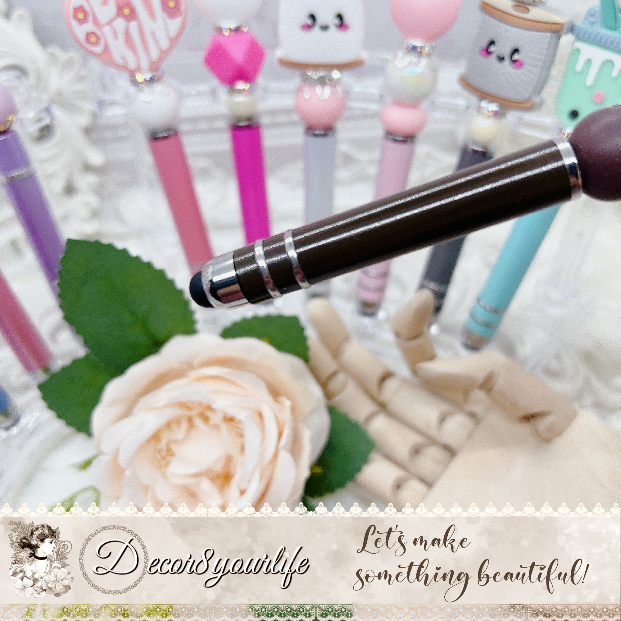 • Beaded Design: The stylus pen is beautifully beaded with silicone and acrylic beads that give it a unique texture.