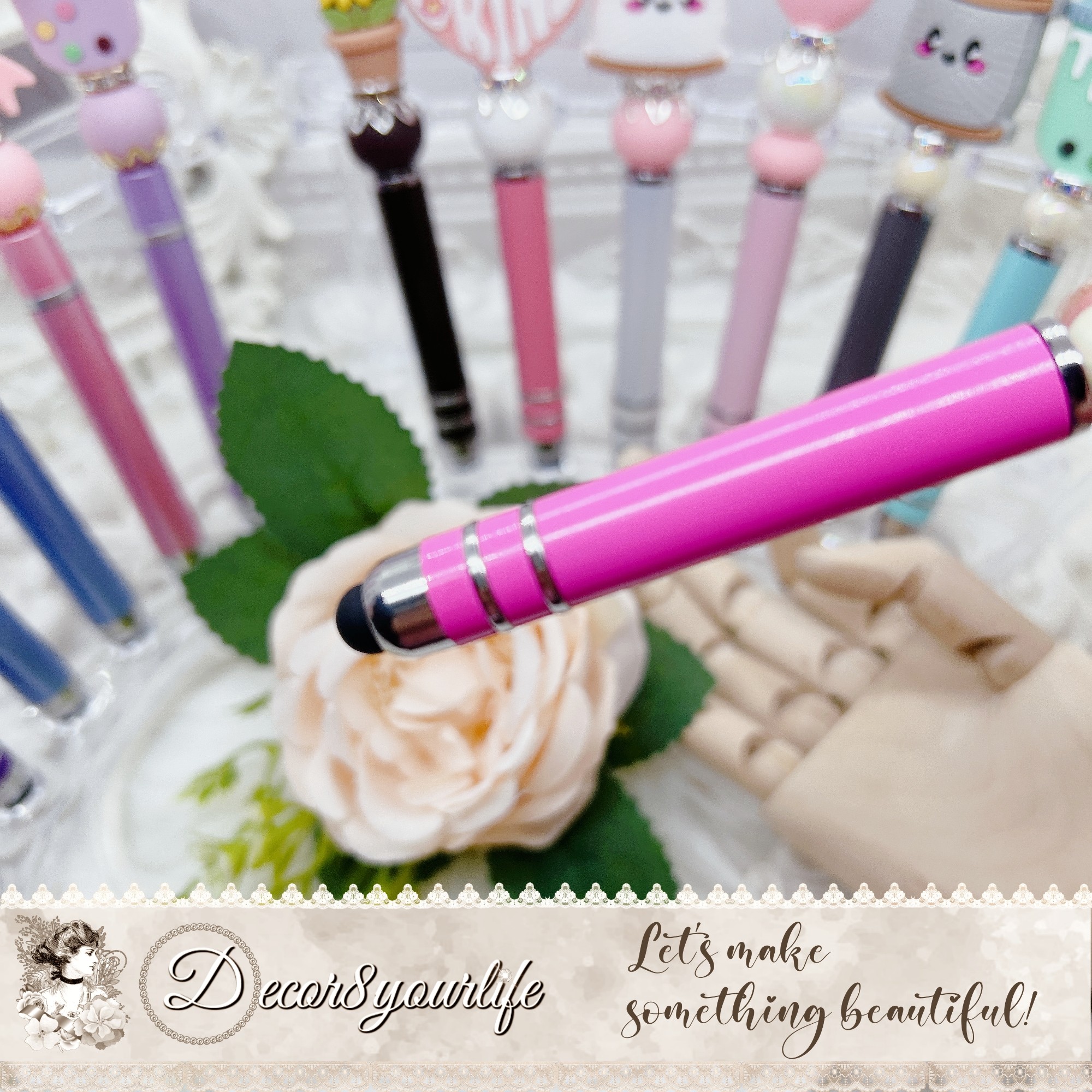 • Beaded Design: The stylus pen is beautifully beaded with silicone and acrylic beads that give it a unique texture.