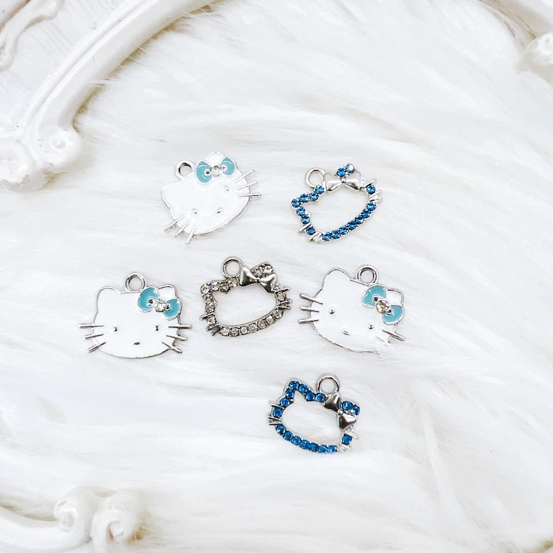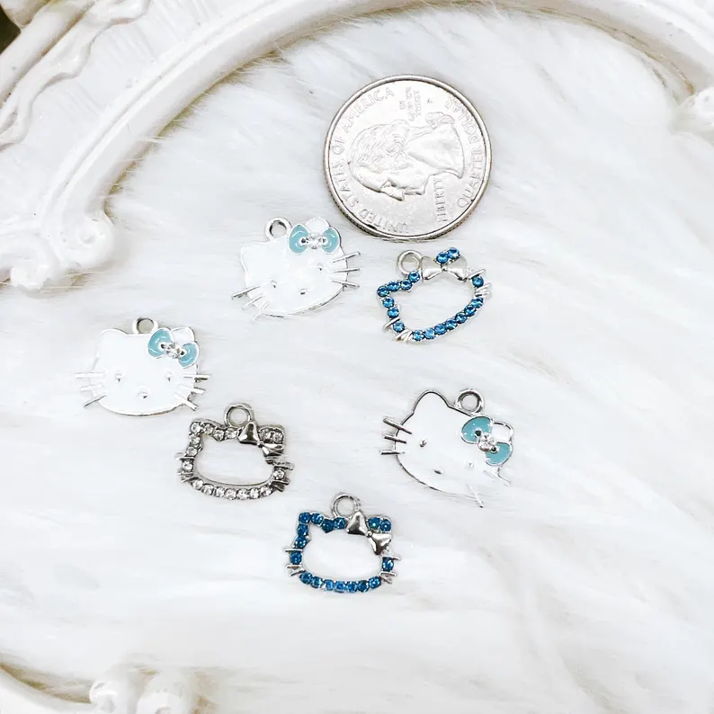 Add a touch of timeless cuteness to your creative projects with this officially licensed Sanrio Hello Kitty charm set. Each pack includes six silver tone charms in a coordinated blue and white theme, featuring a mix of classic enamel designs and sparkling rhinestone accents.