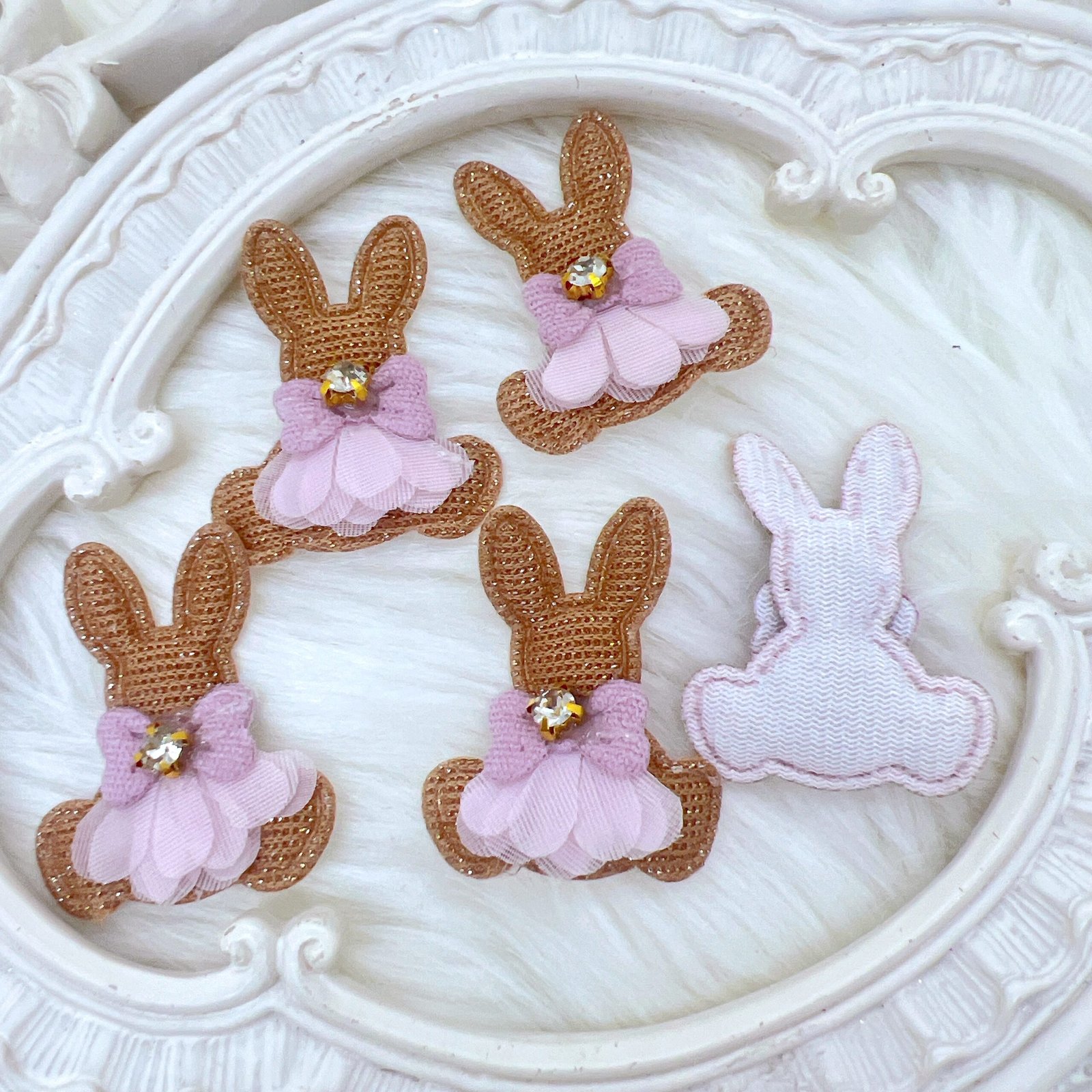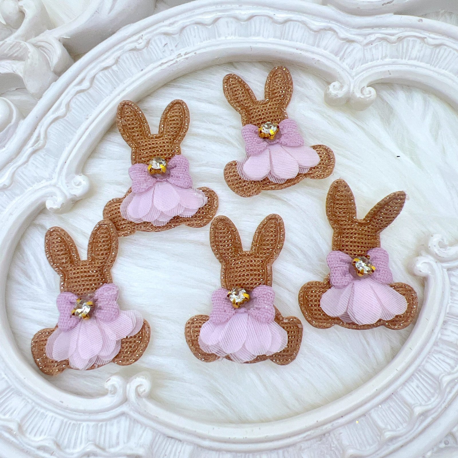 Brown Bunny Fabric Appliques with Rhinestone Center – Set of 5
