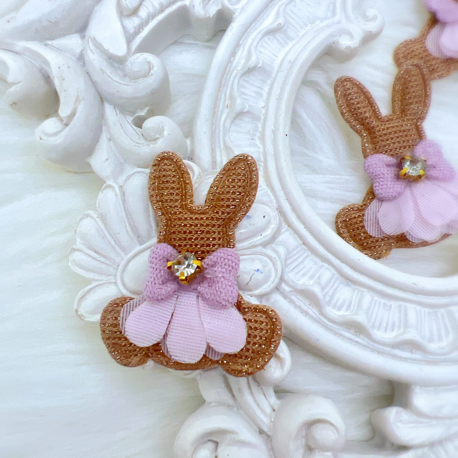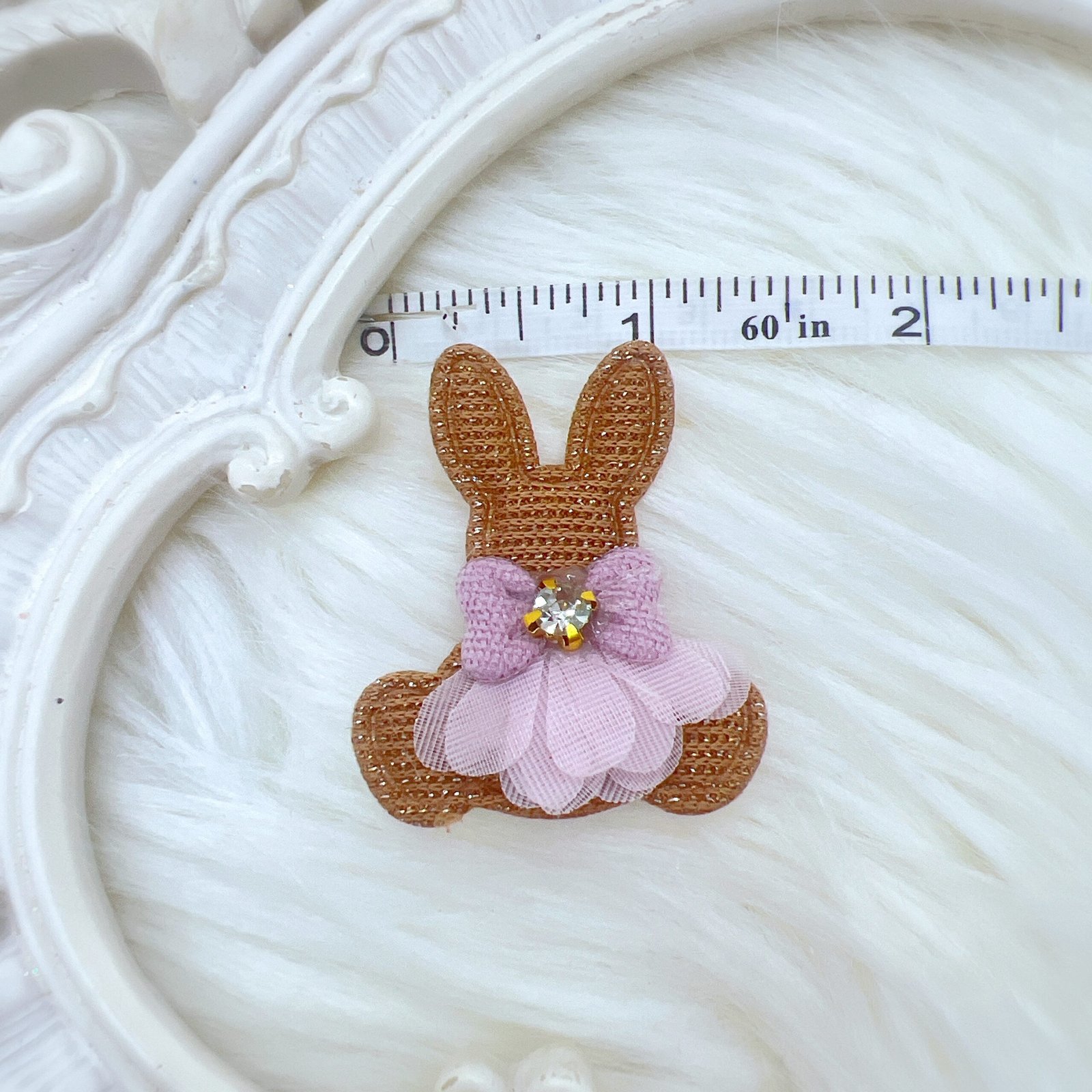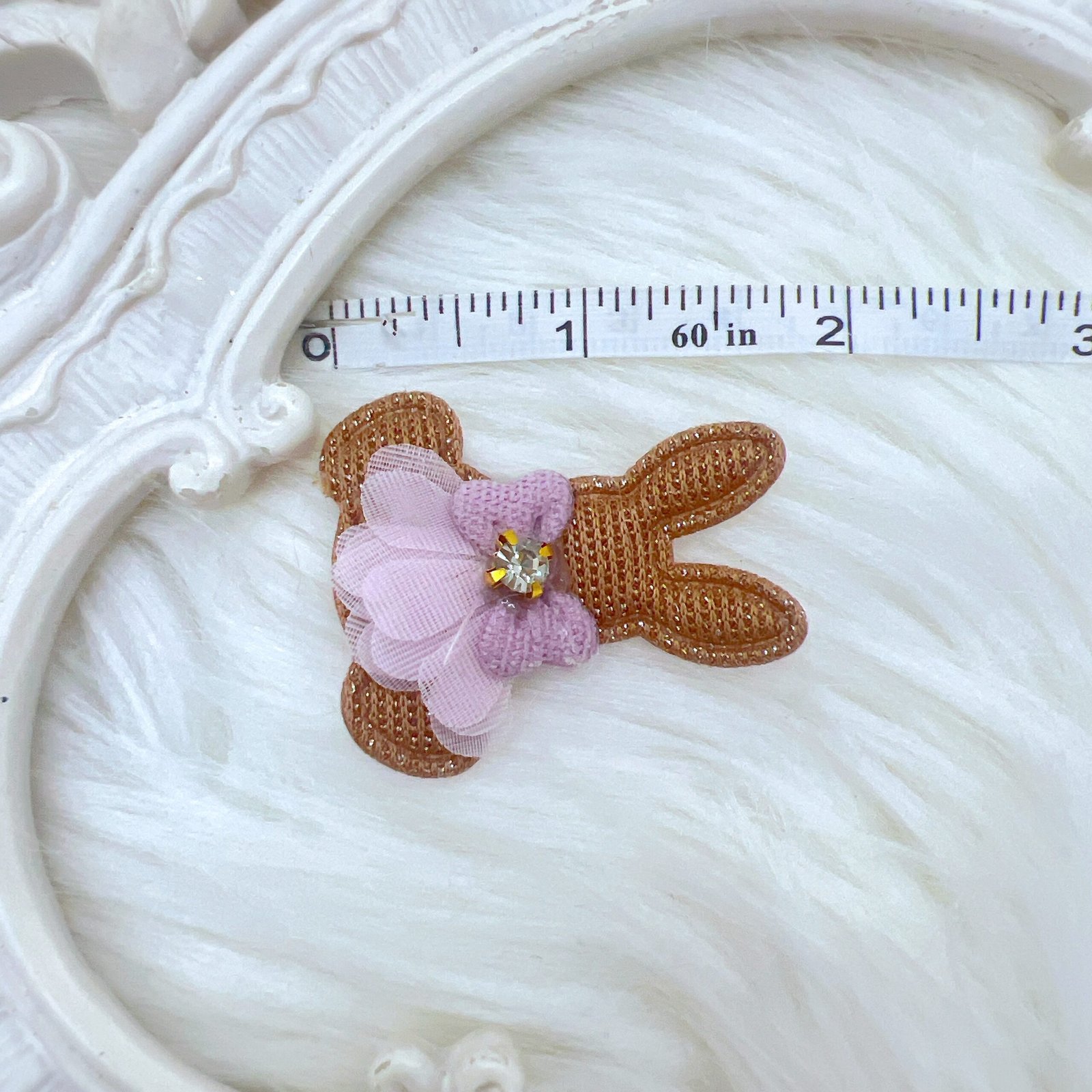 Brown Bunny Fabric Appliques with Rhinestone Center