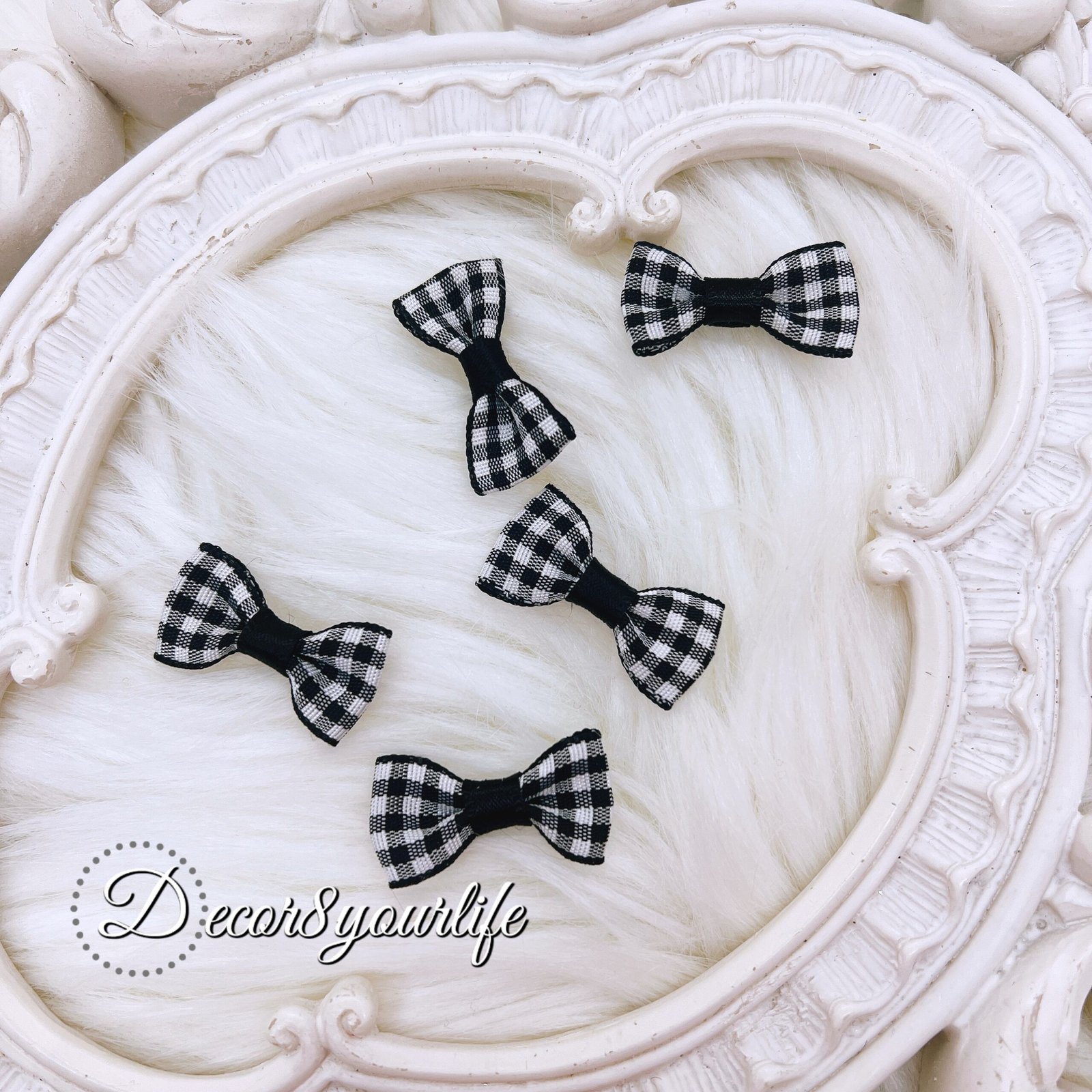 Handmade Buffalo Plaid Ribbon Bow-ties for DIY Crafts, Hair Accessories and Decor Projects- Pack of 5