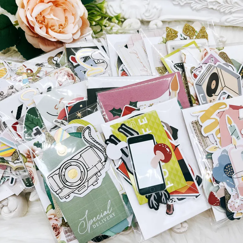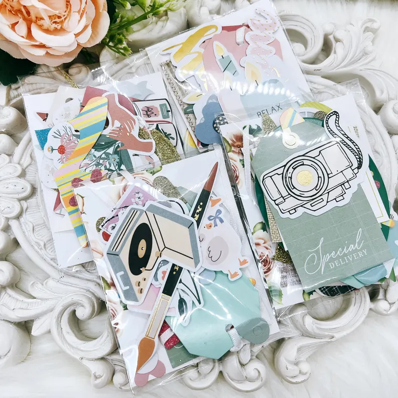 Each pack contains 30 acid-free card-stock die-cuts. While the exact designs and sizes vary, every assortment is hand-curated so the overall look feels coordinated and pleasing to the eye. This makes them ideal for crafters who love variety but still want their pages and projects to look cohesive.
