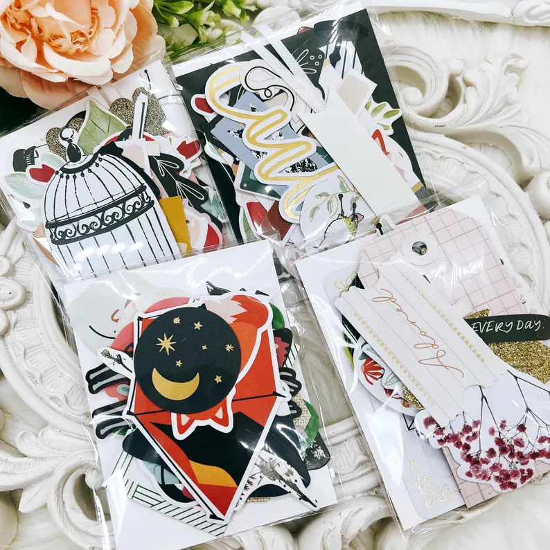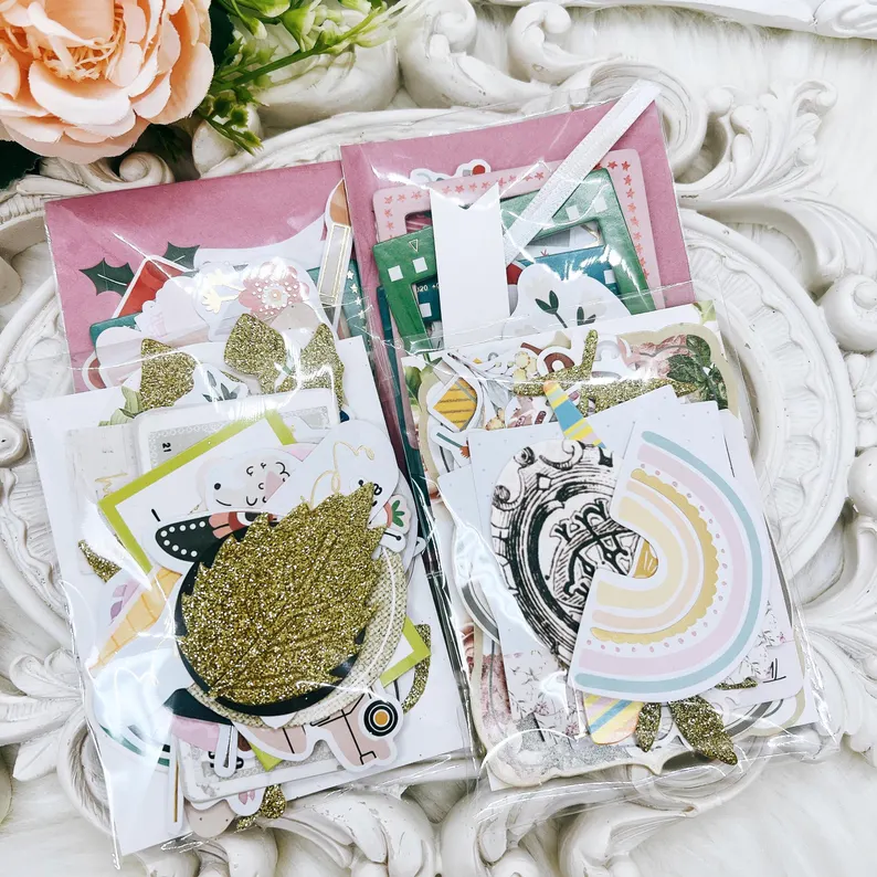 You will receive one physical pack of 30 curated ephemera die-cuts. Designs will vary, and each set is unique.