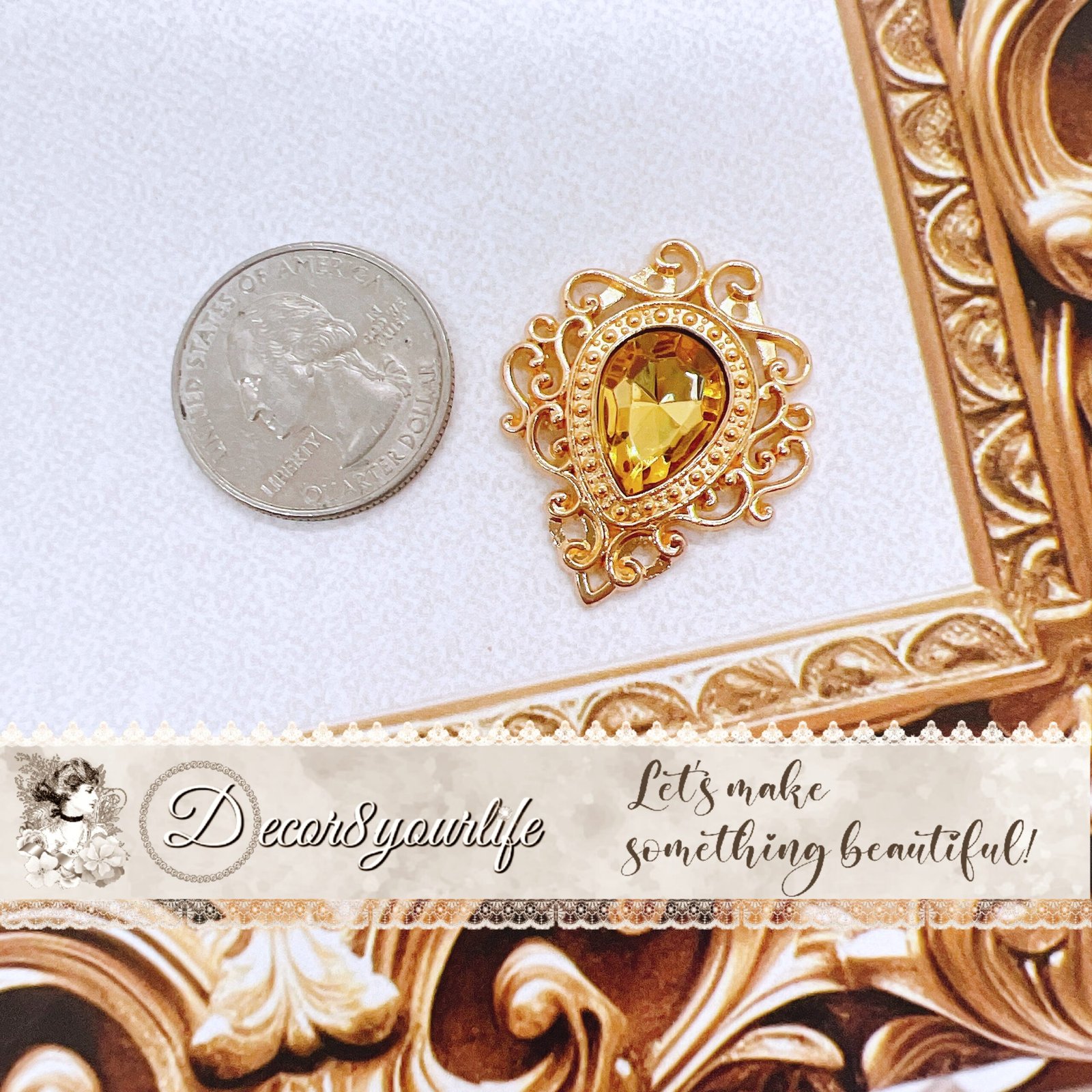 Its radiant faux citrine stone gives your crafts a warm, timeless elegance — whether you’re creating for a wedding, gifting, or just adding a touch of sparkle to your own collection. 🌟
