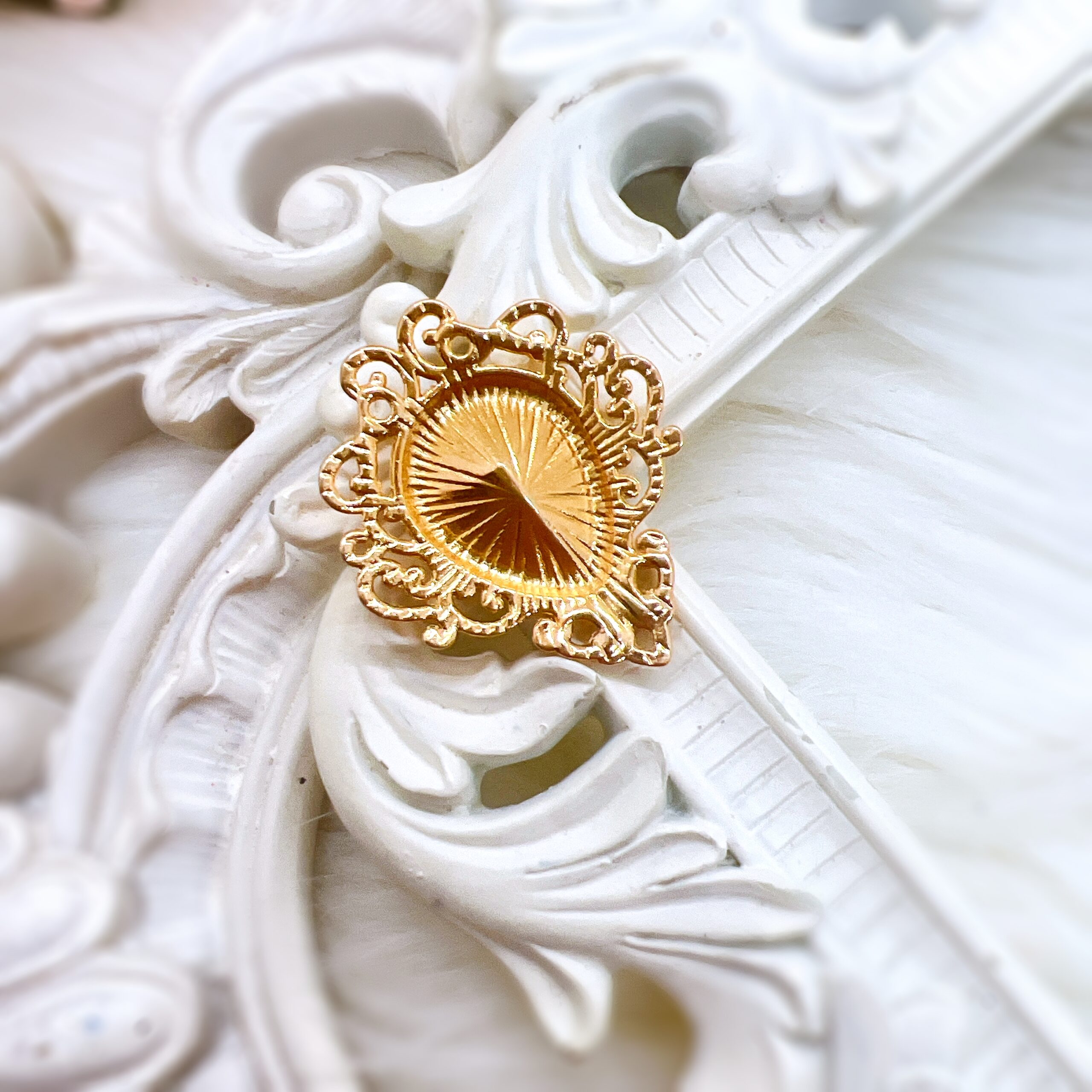 Measuring about one inch, this embellishment is perfectly sized for a wide range of projects. Use it to enhance shabby chic journals, elevate bridal keepsakes, or bring a golden accent to home décor pieces such as frames, jewelry boxes, and altered projects. The flat-back design ensures it lays flush and secure on any flat surface, ready to be attached with glue, resin, or hot-glue.