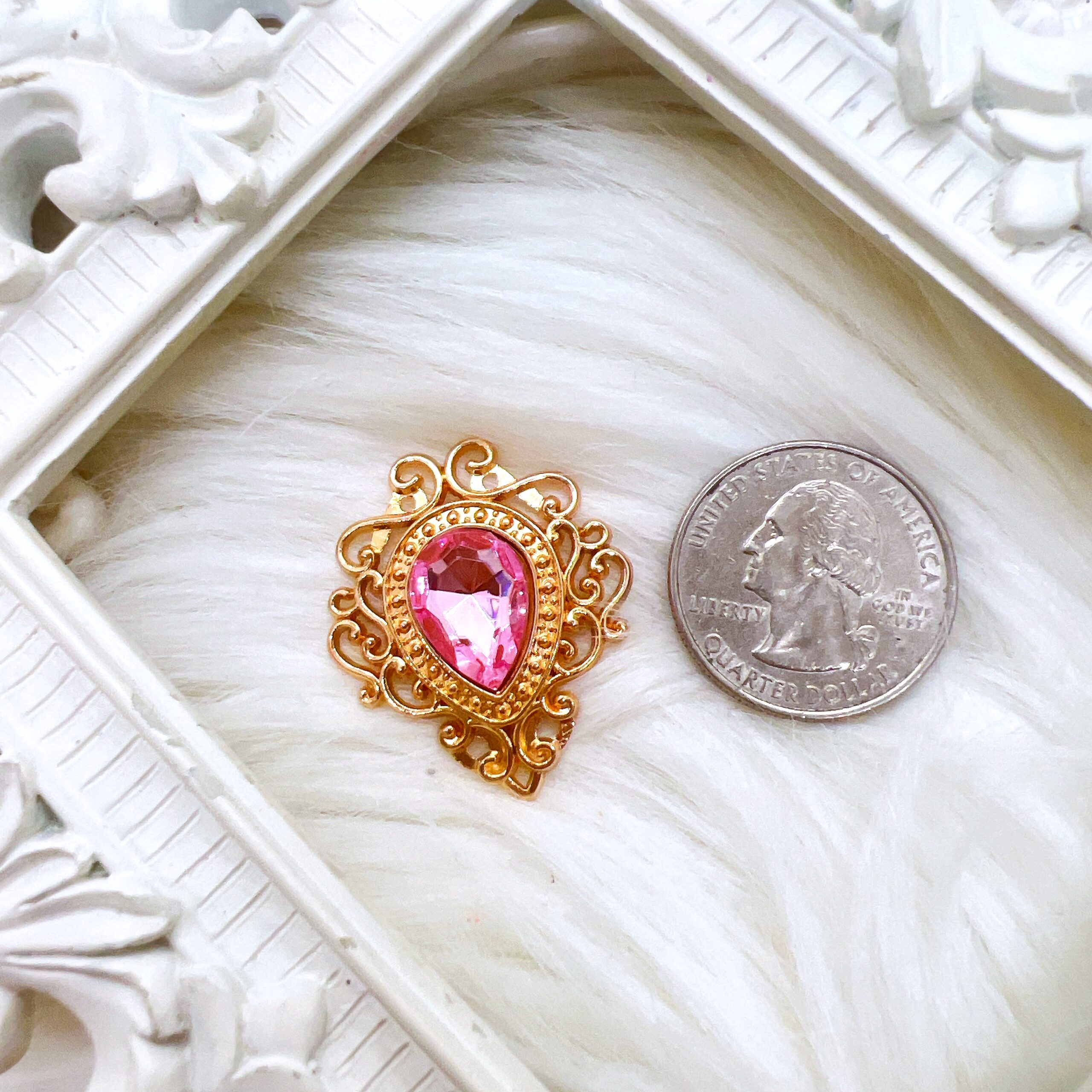 This embellishment is especially popular with crafters who want to add warmth, light, and elegance to their projects. Whether you’re designing a shabby chic journal, crafting a bridal album, or creating unique home décor pieces, this faux-pink sapphire accent adds a golden touch that instantly elevates your work.