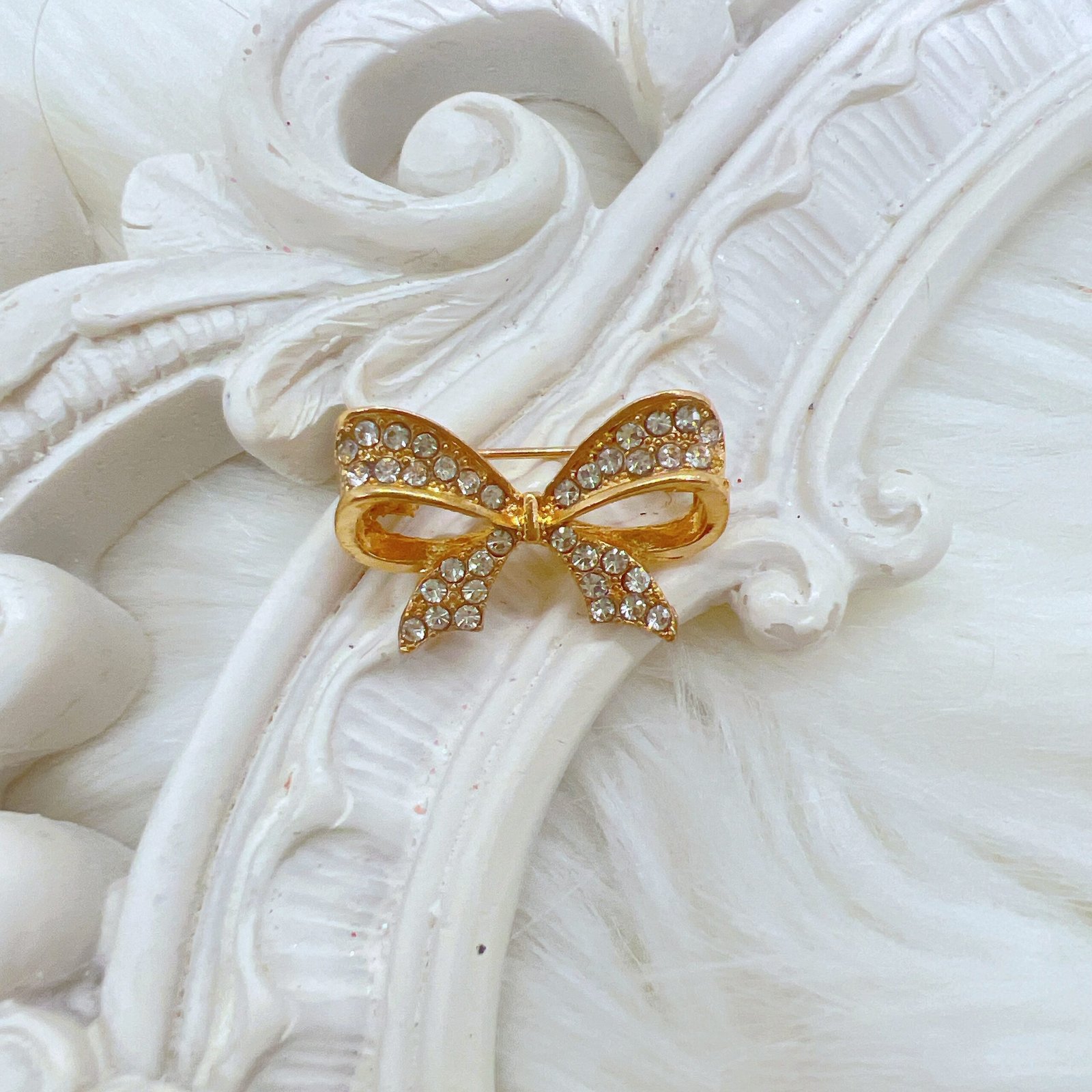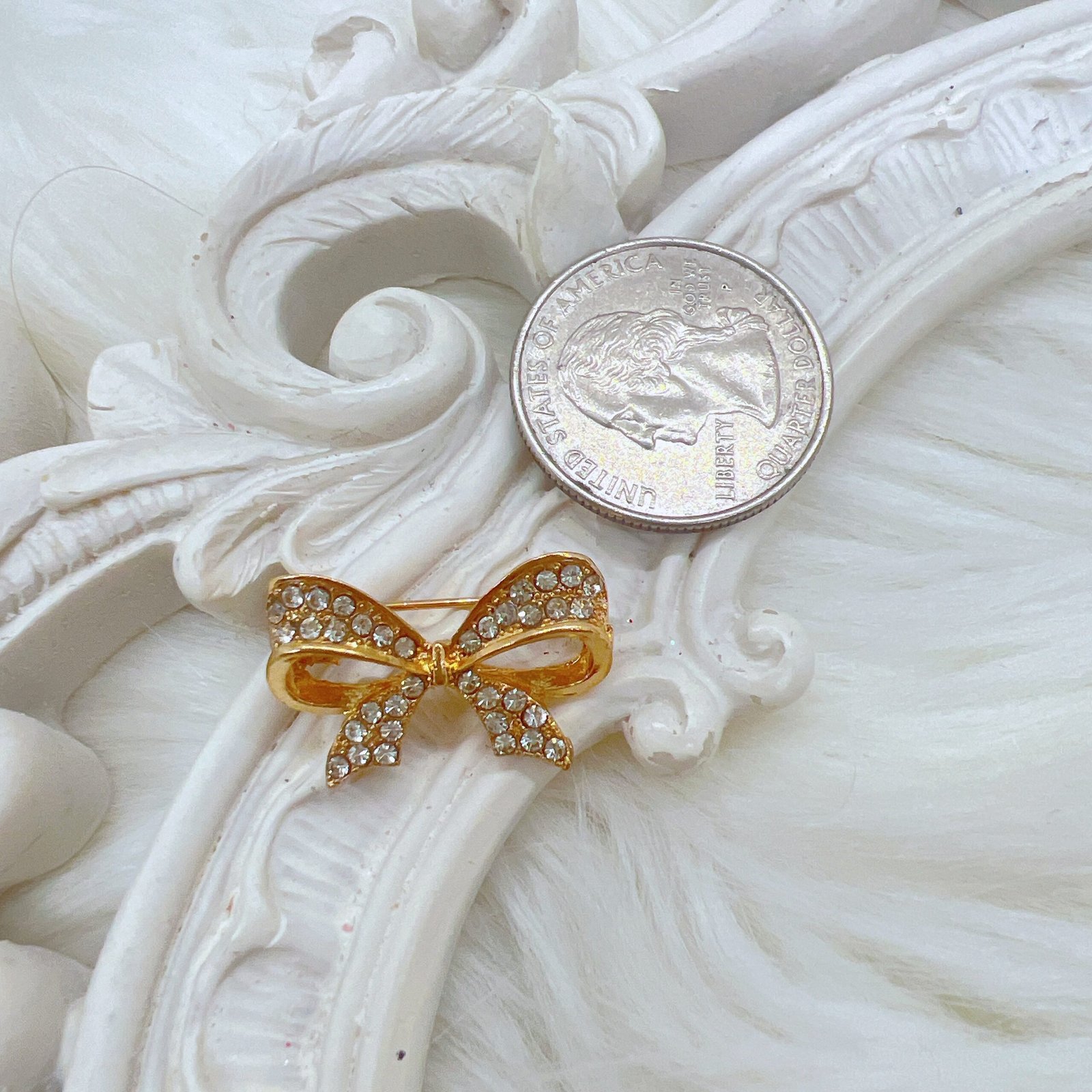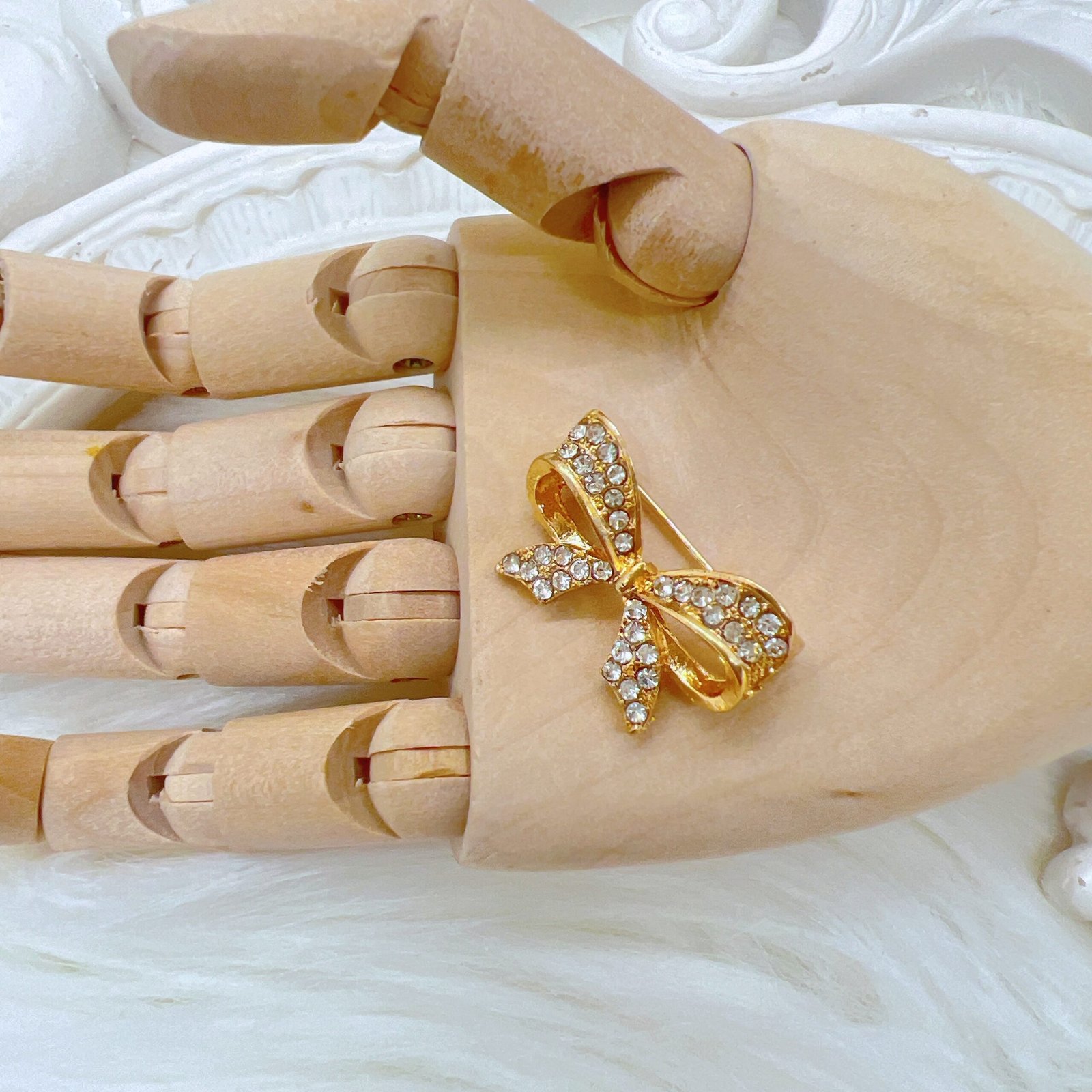 Gold Rhinestone Bow Brooch Embellishment – Vintage Inspired Sparkle for Crafts and Journals