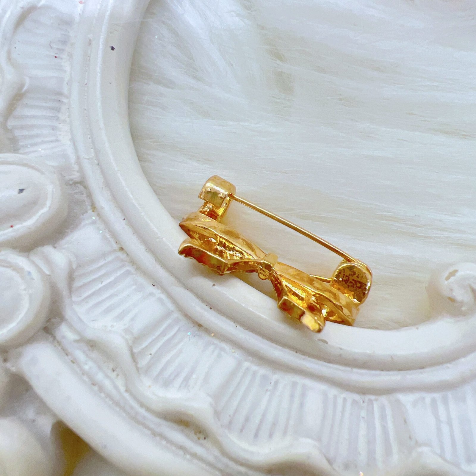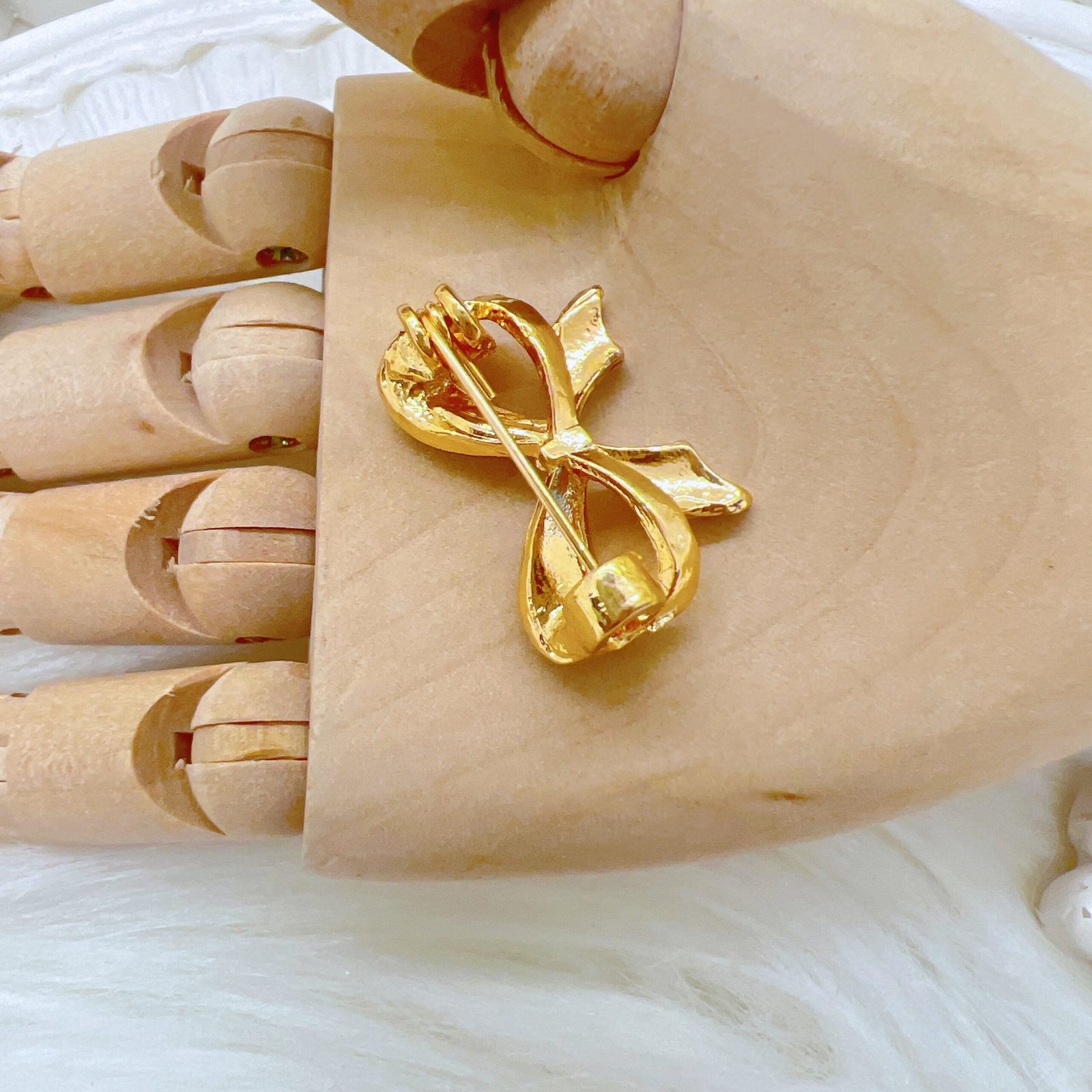 This gold rhinestone bow brooch brings just the right amount of vintage elegance to your creative projects. Designed with a classic bow silhouette and filled with clear, light-catching rhinestones, this piece feels delicate, feminine, and beautifully nostalgic.