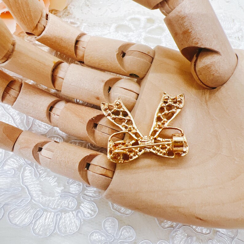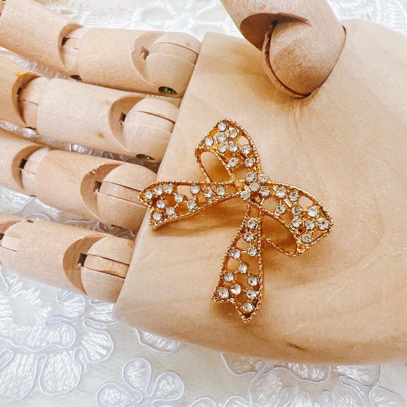 Gold Rhinestone Bow Brooch – Victorian & Bridal Craft Embellishment