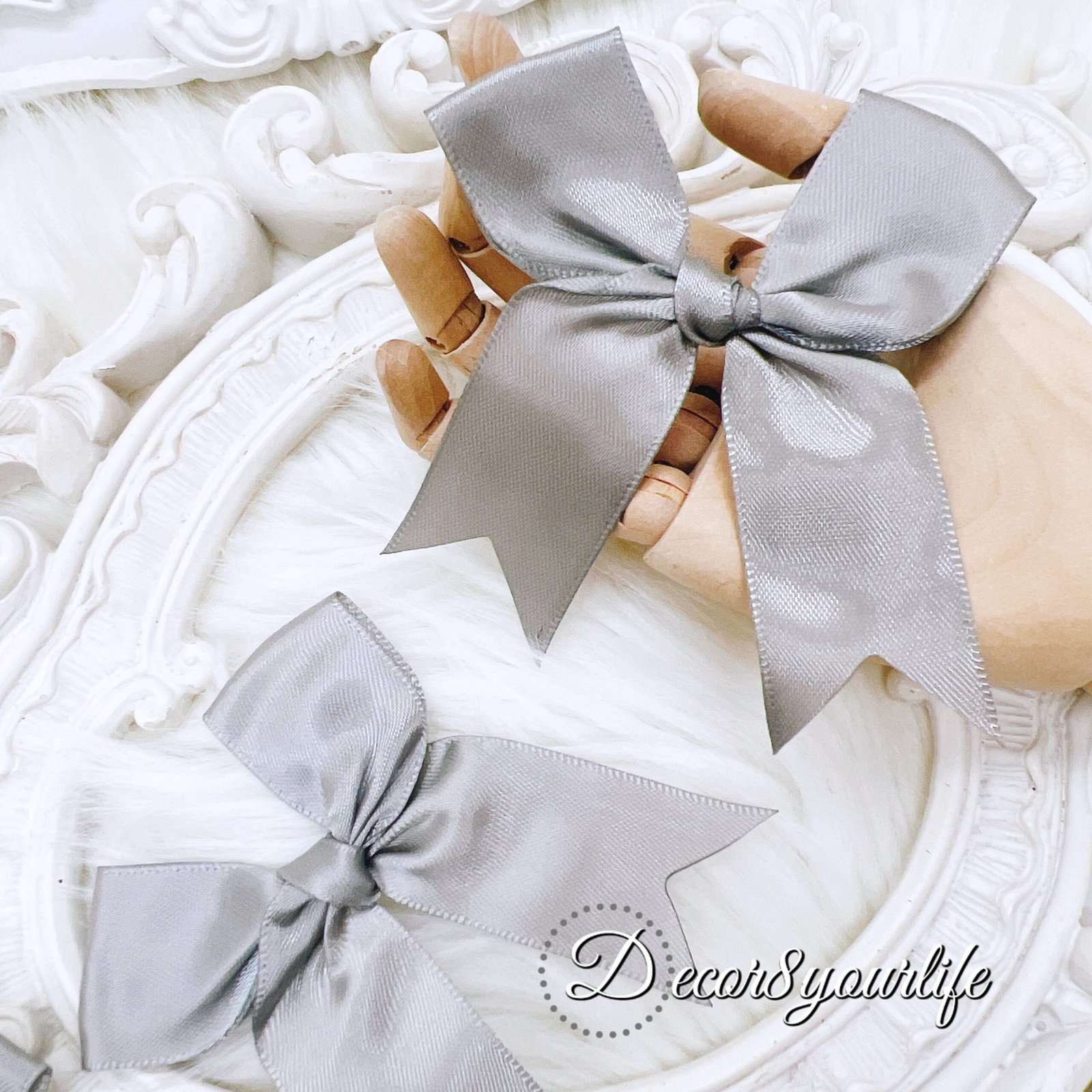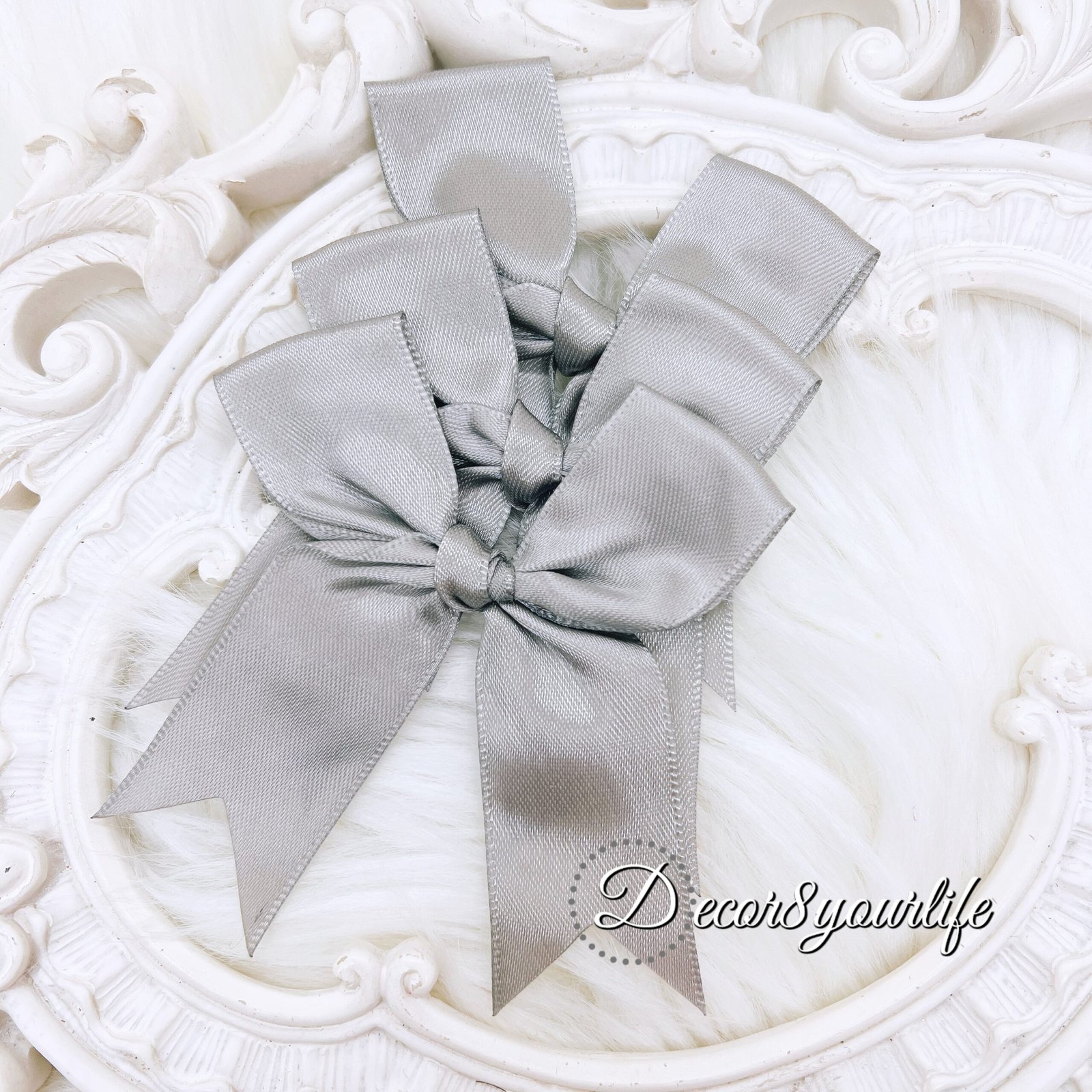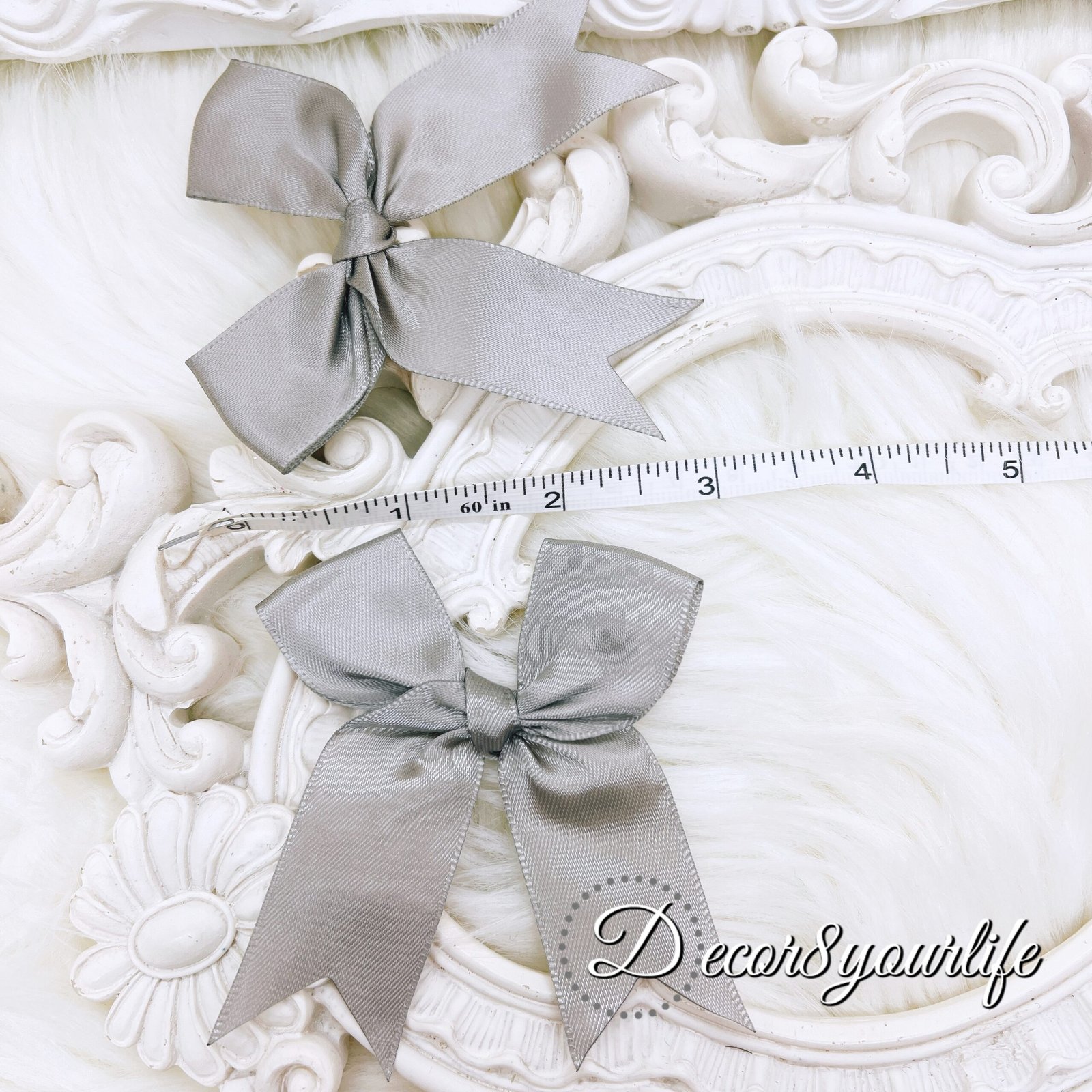Gray Handmade Satin Bows – Elegant Satin Bows for Crafting & Accessories 3 Pack (3” Size)