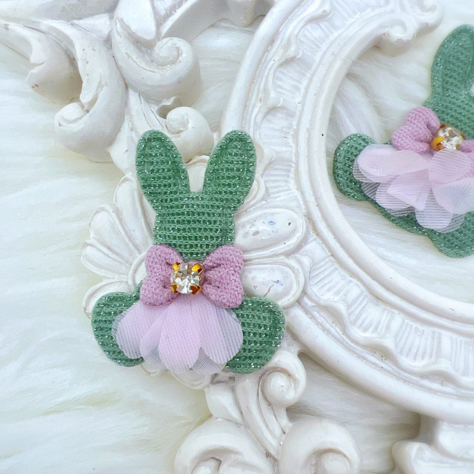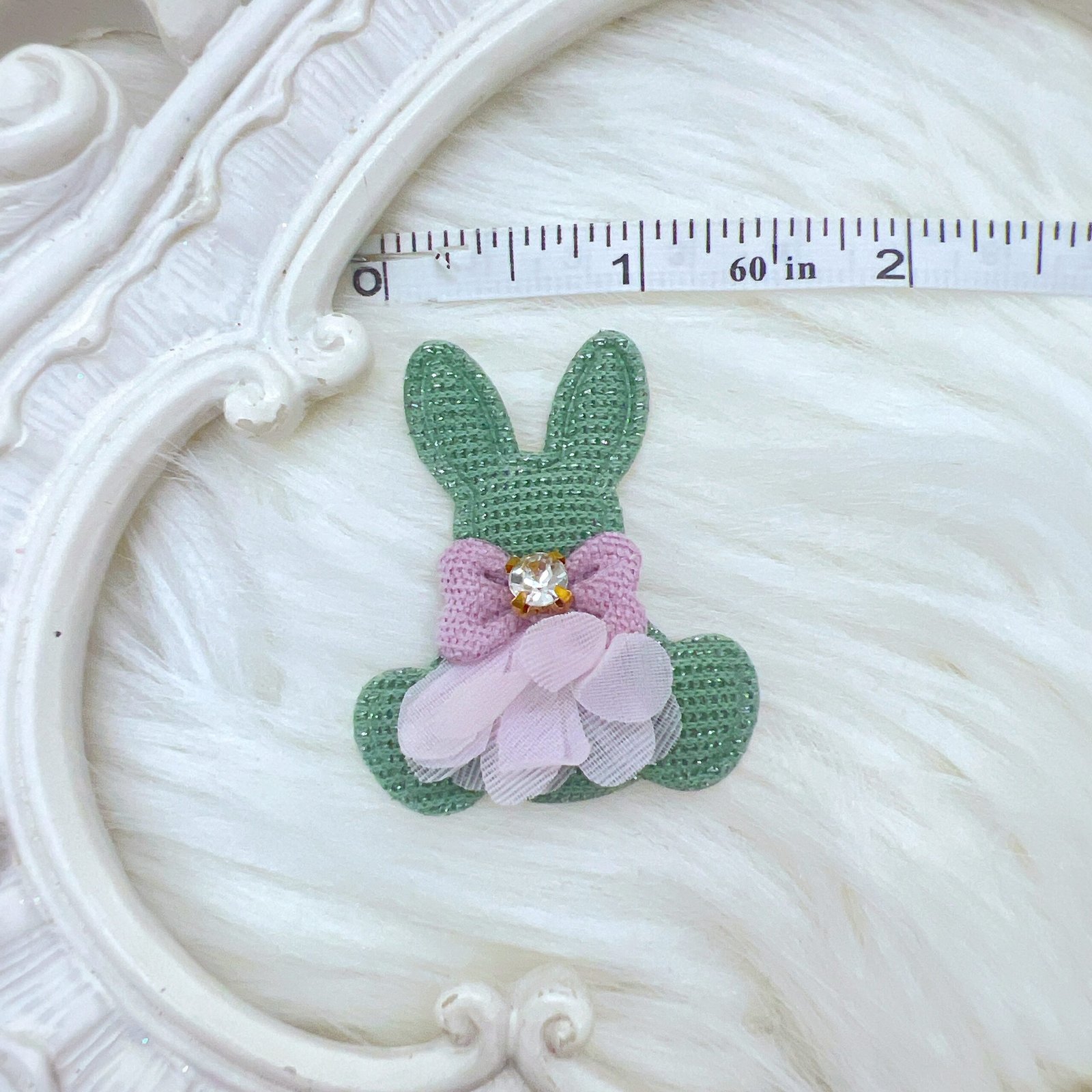 Green Bunny Fabric Appliques with Rhinestone Center – Set of 5