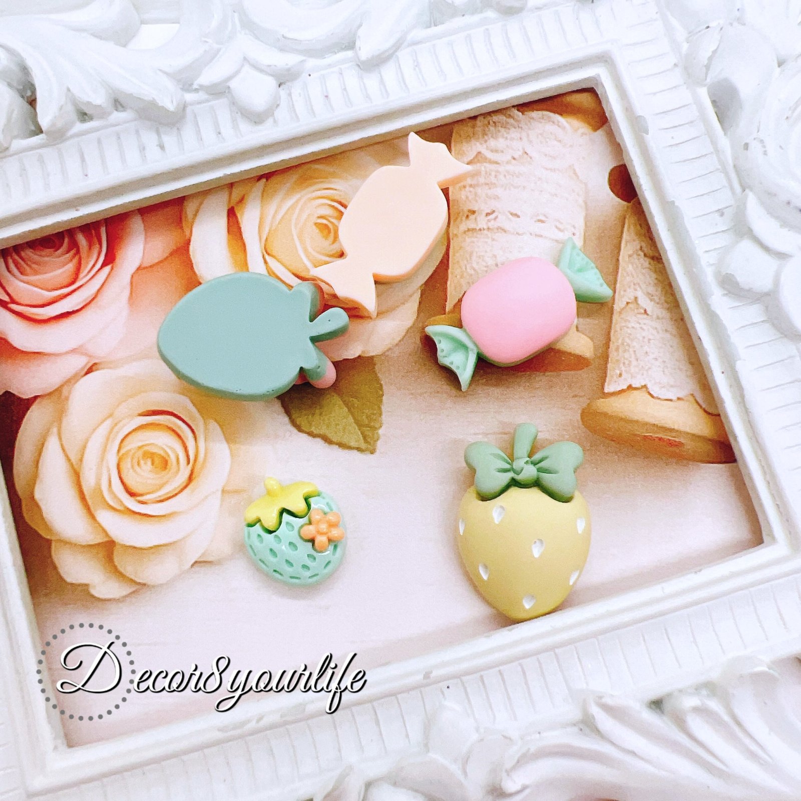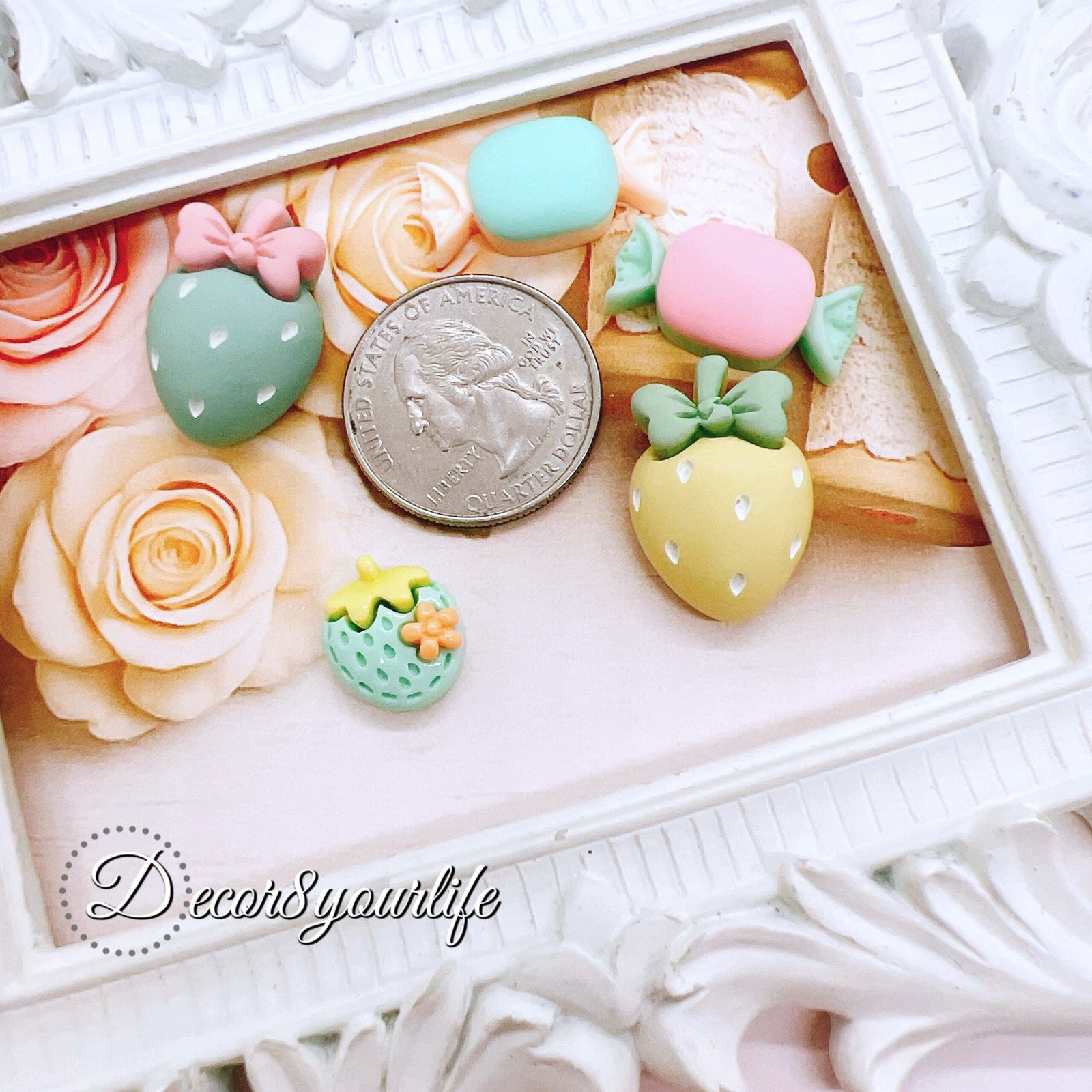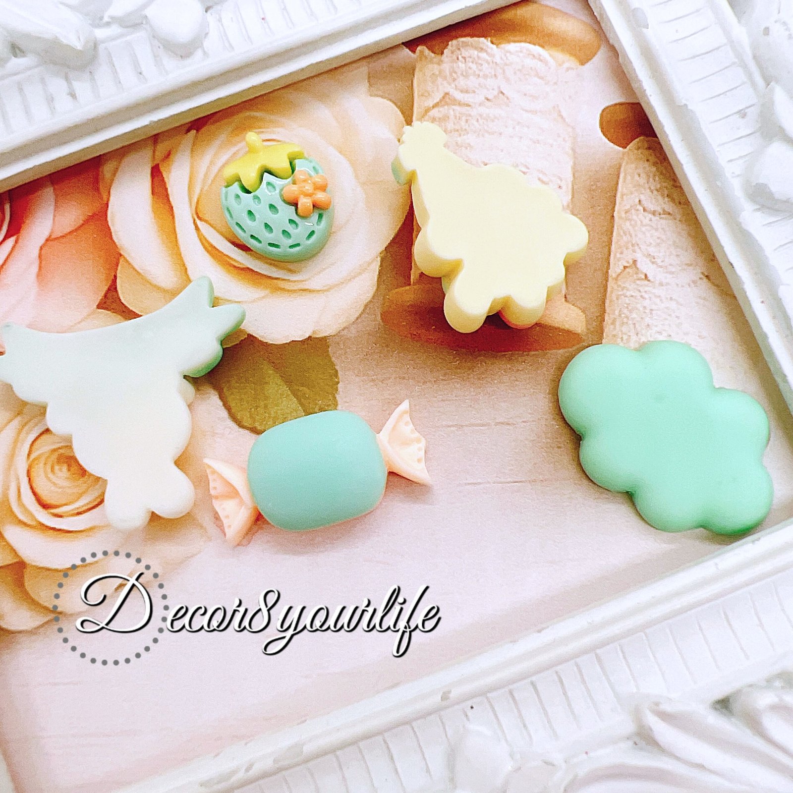 🍓🍡🍬🍭Craft tip: when a project looks cute but not “finished,” add one cabochon. These pink flat-backs come in a 5-piece set and layer beautifully with lace, pearls, and tassels. Perfect for planners, journals, packaging, and resin. Limited quantities per style.