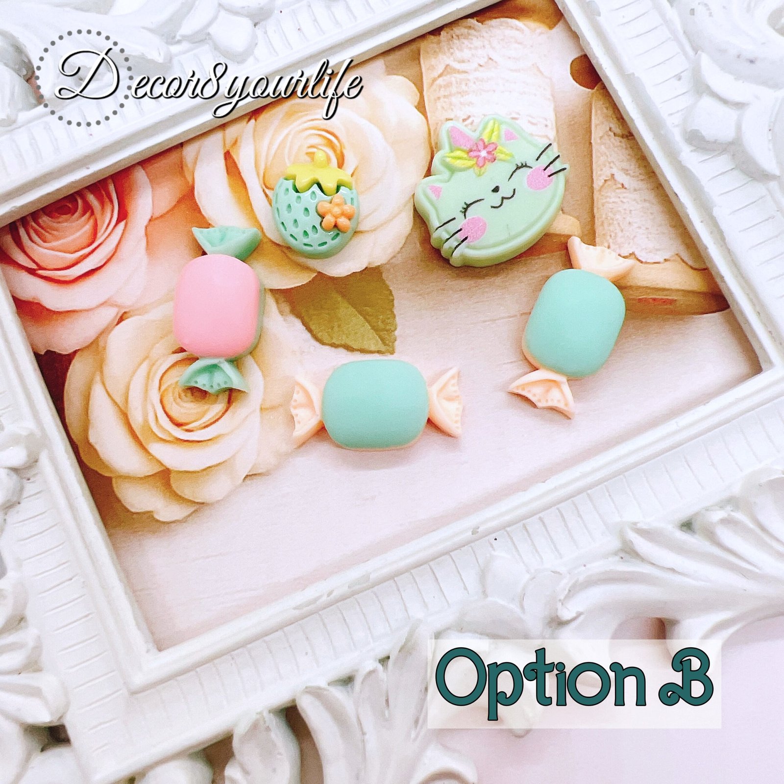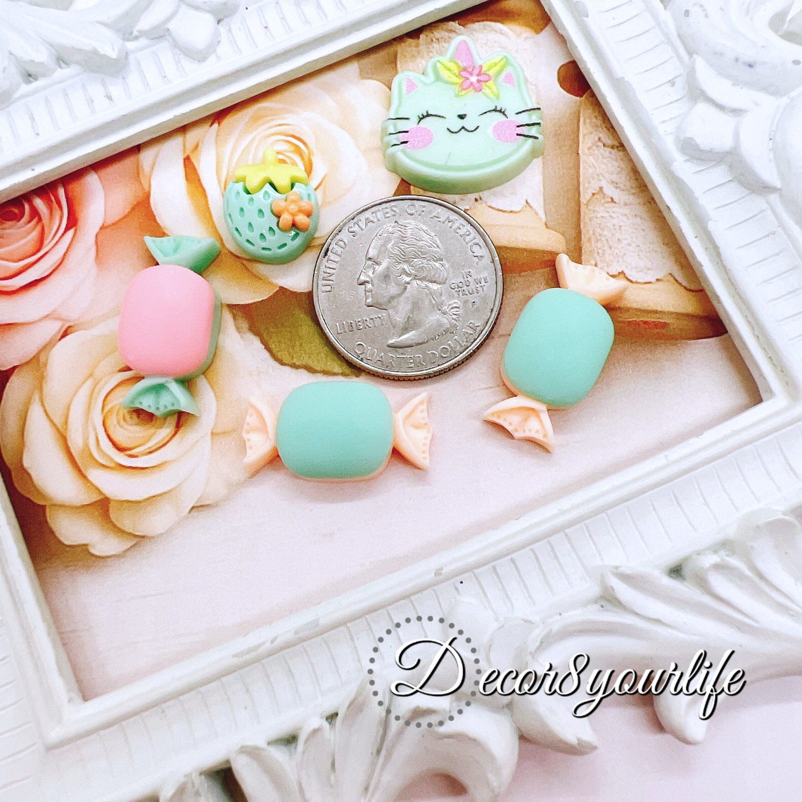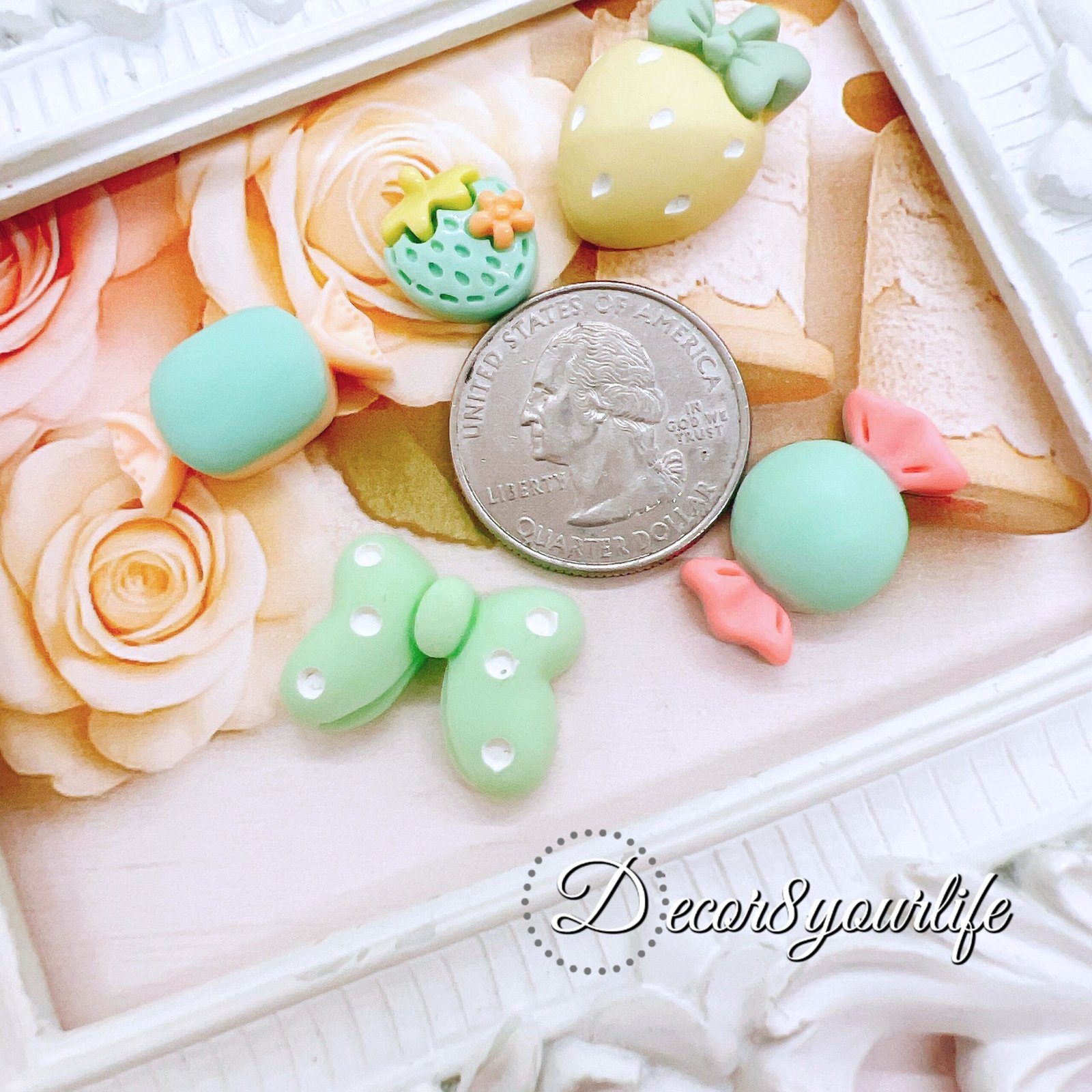 🍓🍡🍬🍭Craft tip: when a project looks cute but not “finished,” add one cabochon. These pink flat-backs come in a 5-piece set and layer beautifully with lace, pearls, and tassels. Perfect for planners, journals, packaging, and resin. Limited quantities per style.