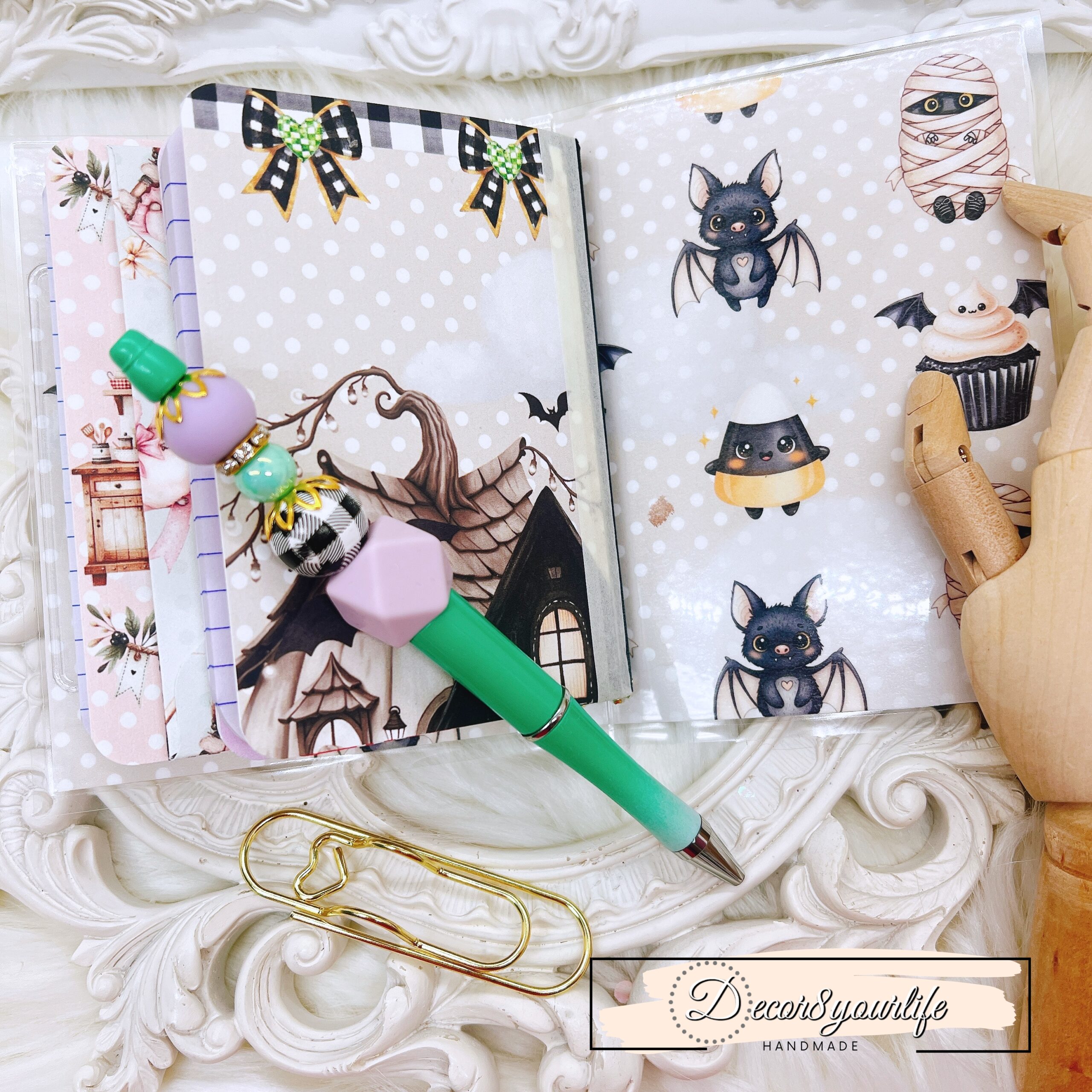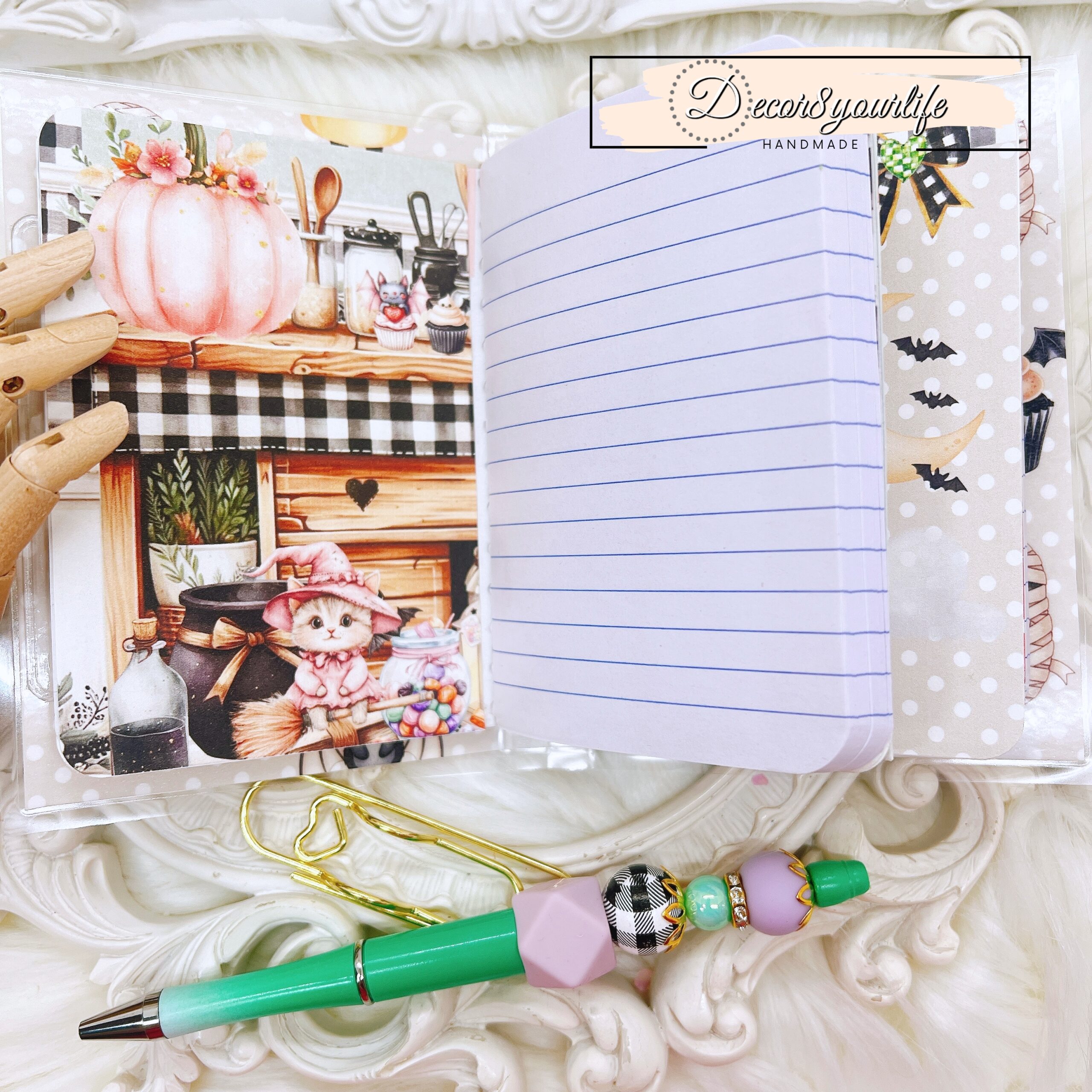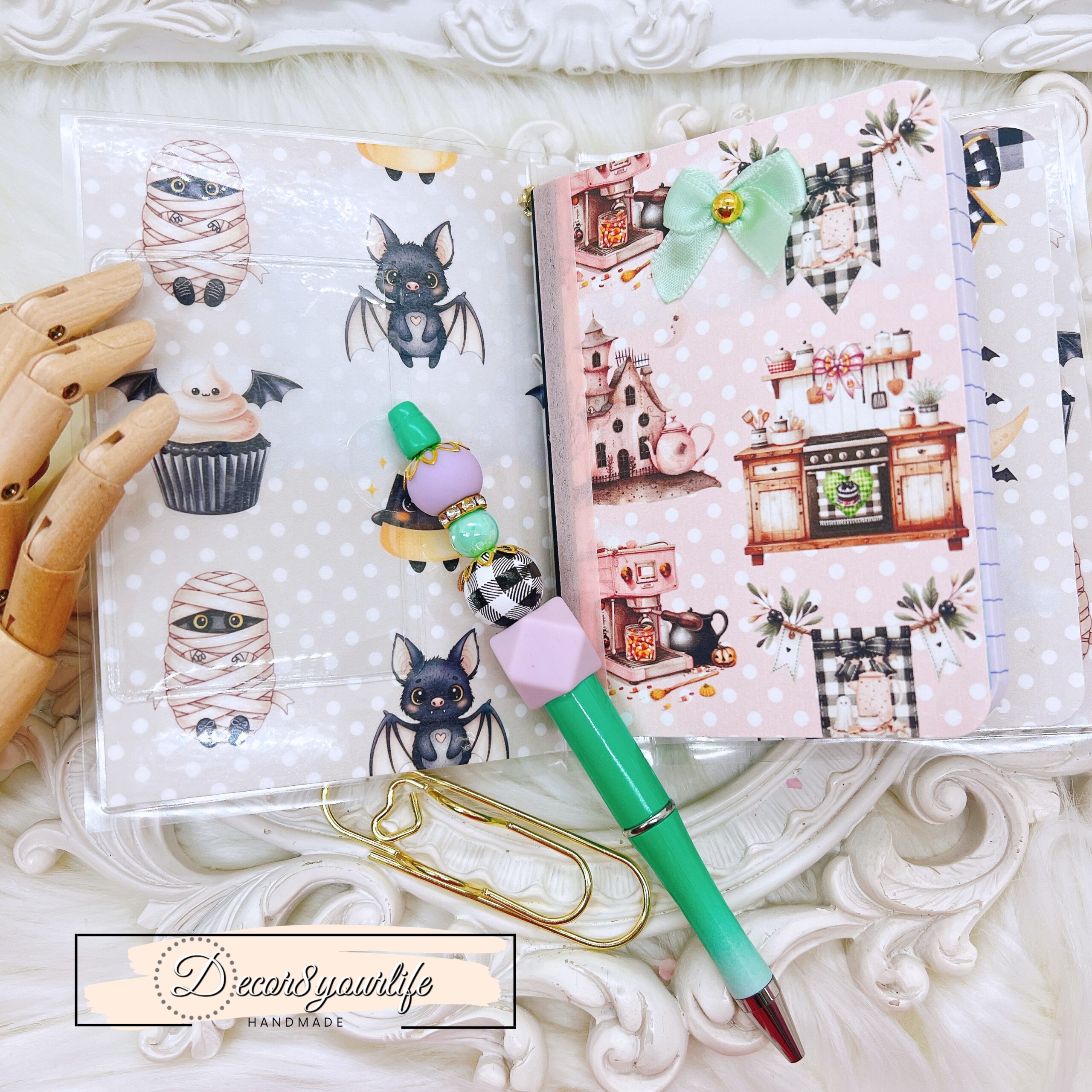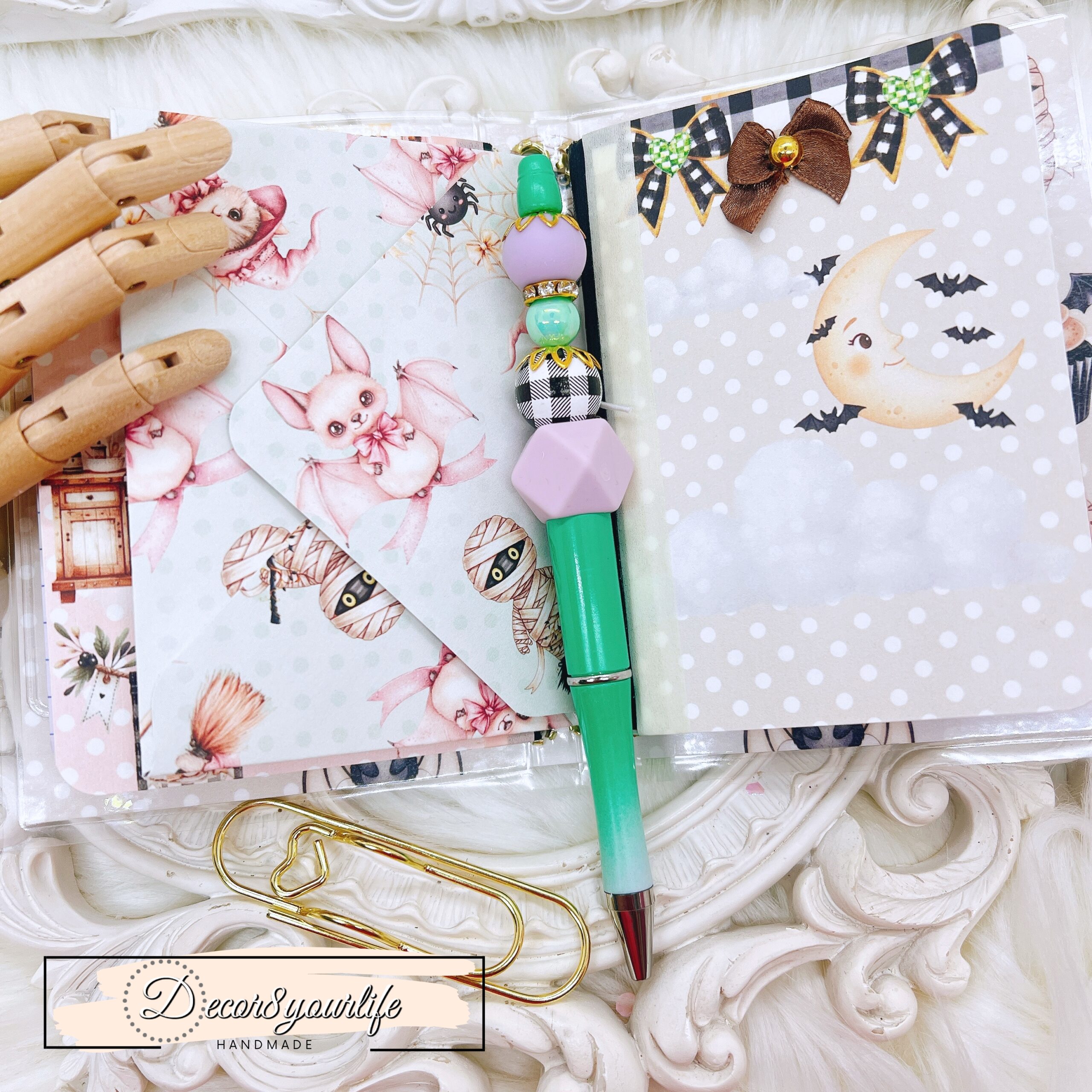 Cute Halloween Lolita Goth Theme Laminated Traveler’s Notebook with Matching Beaded Pen