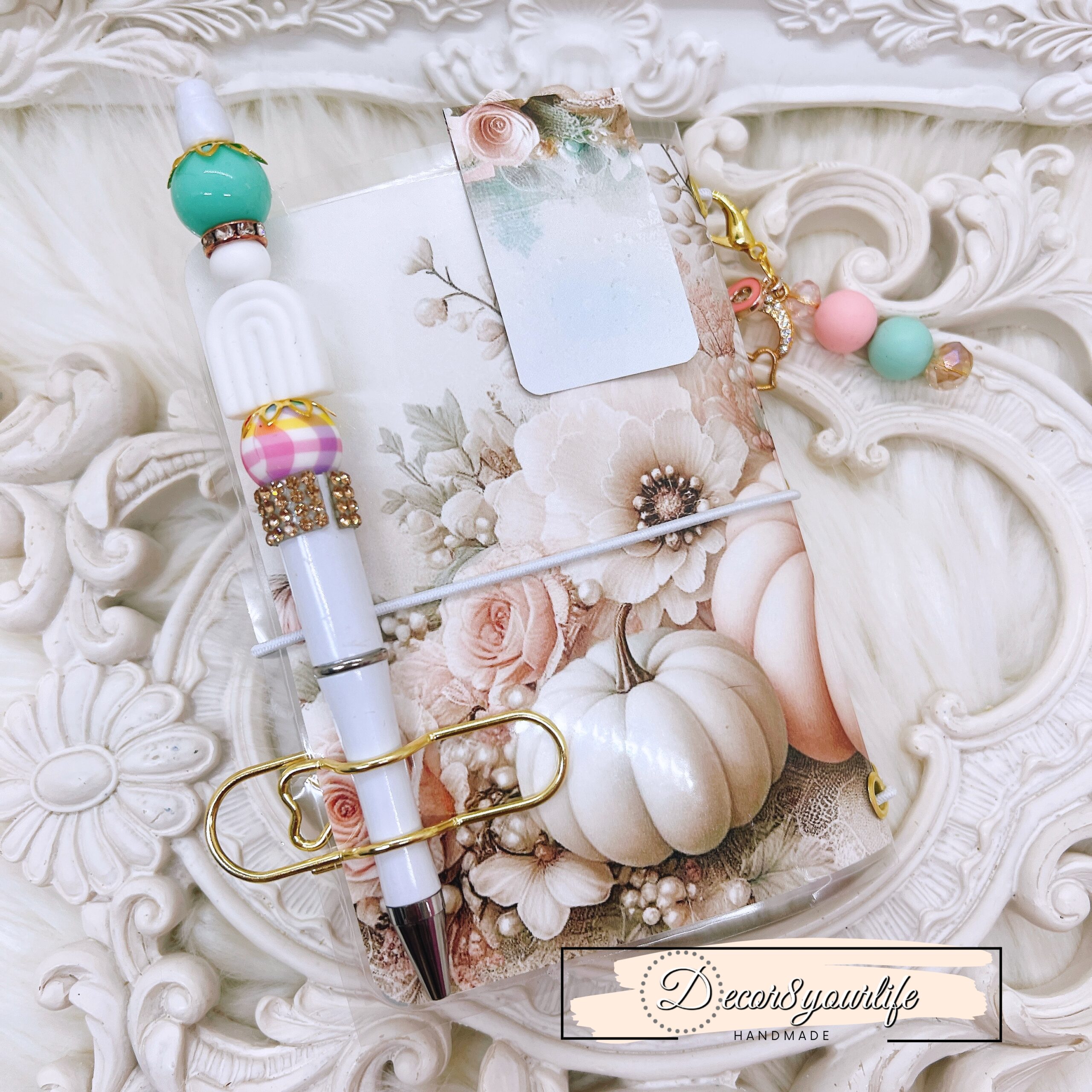Handmade Laminated Travelers Notebook in a Shabby Chic Pastel Pumpkin Theme