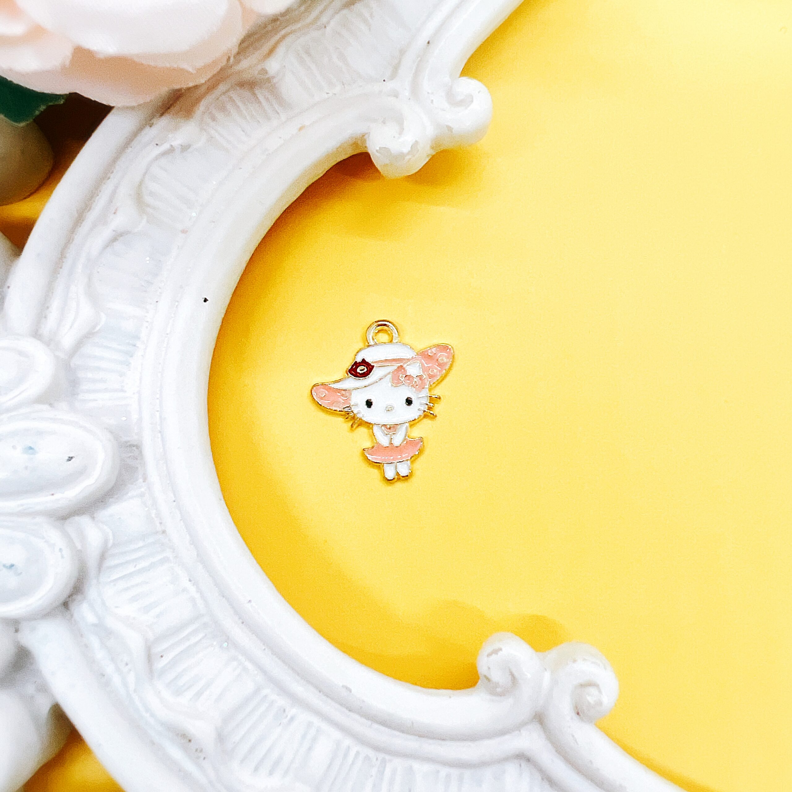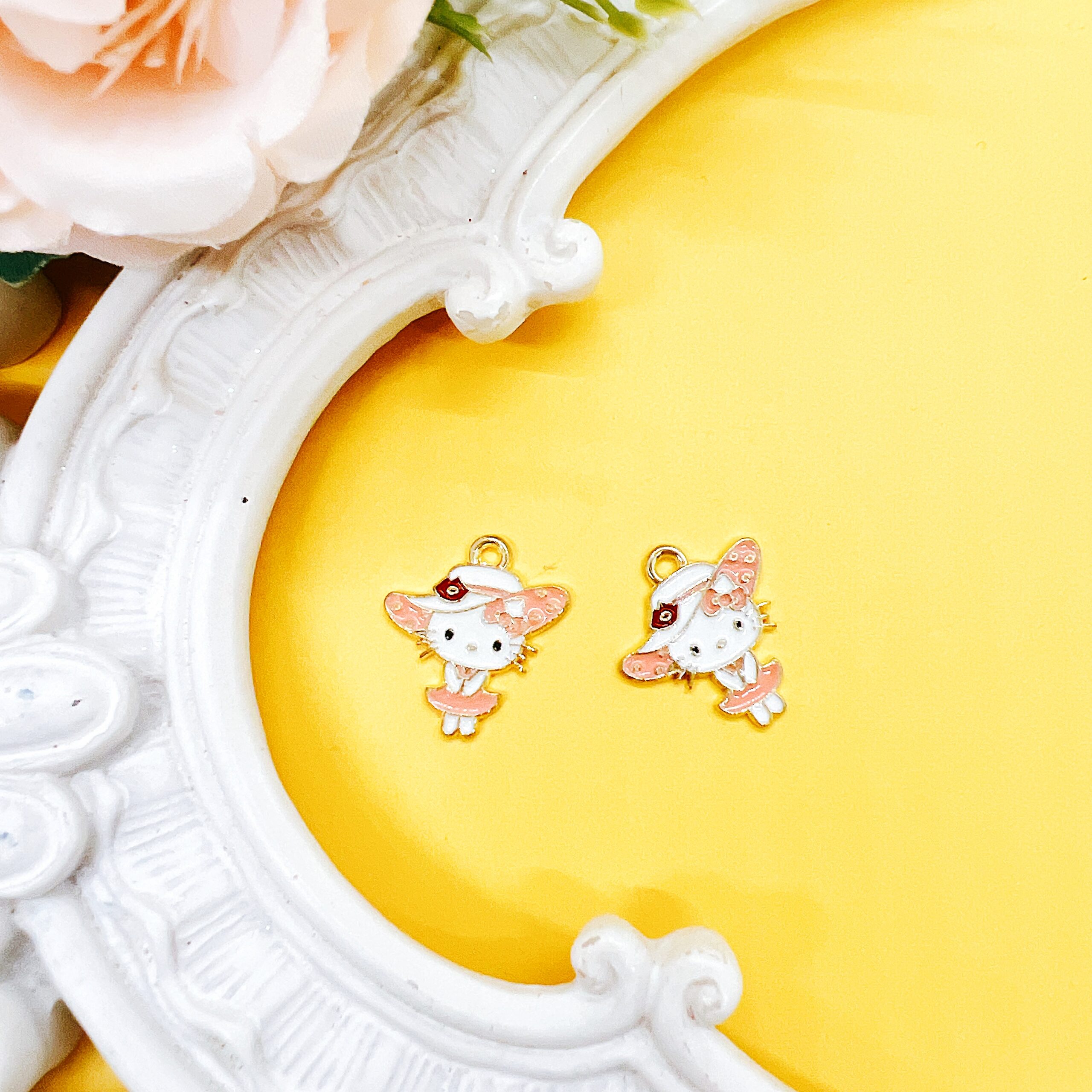 Each charm features a sturdy metal base with a smooth enamel finish and an attached loop for easy hanging. They are ideal for wire wrapping, jump rings, elastic cord, and lobster clasps, making them versatile for a wide range of craft and jewelry applications. Whether you create planner accessories, phone charms, backpack pulls, or handmade gifts, these charms bring a soft, feminine, and playful aesthetic that customers are always searching for.