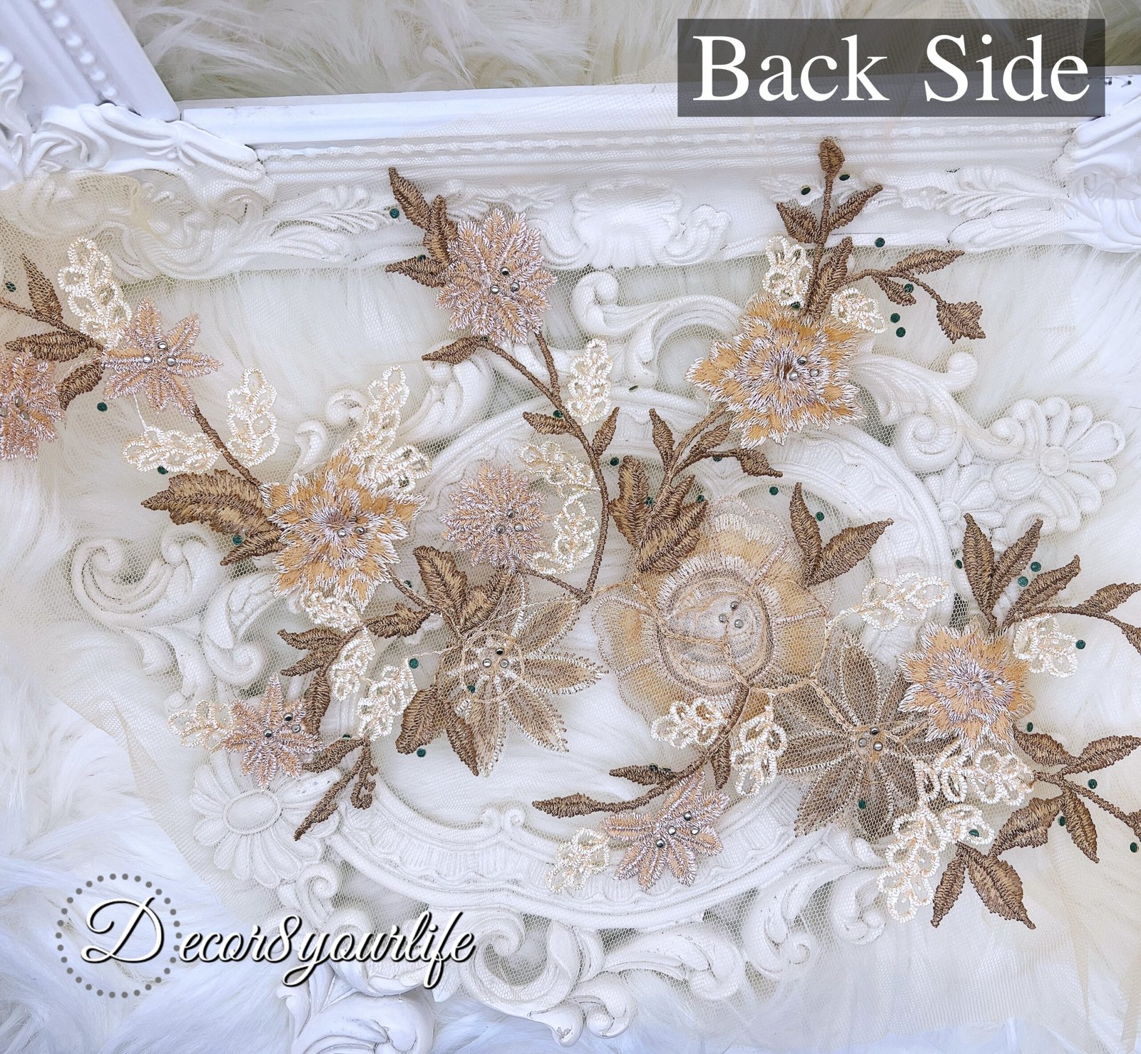 Whether you’re decorating a bridal gown, crafting a memory album, embellishing home décor, or adding elegance to handmade accessories, this applique is versatile and stunning. The soft neutral palette pairs beautifully with shabby chic, vintage, romantic, and wedding-themed aesthetics.