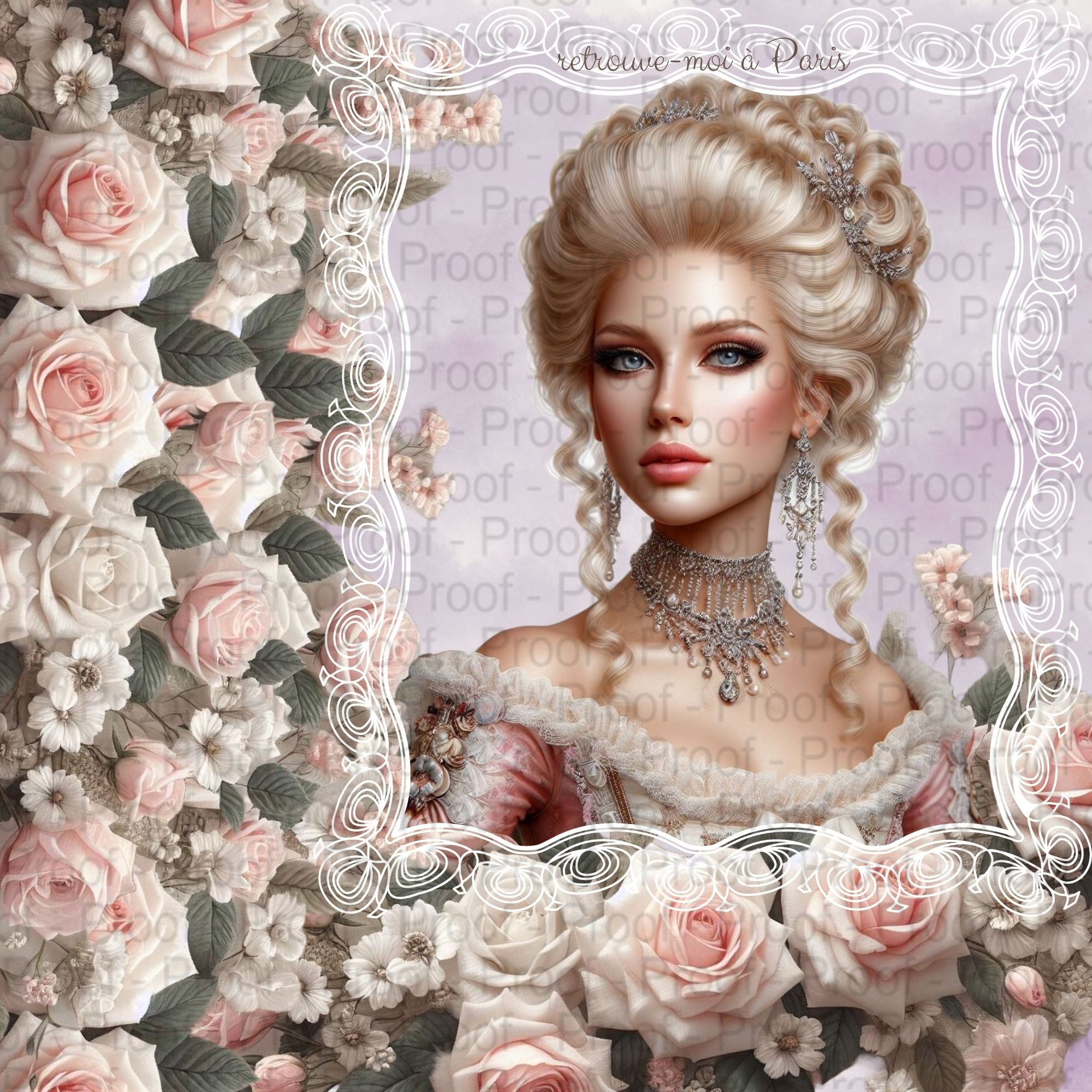 marie antoinette, rococo portrait scrapbook paper, shabby chic floral frame printable, french royal ephemera collage, victorian lady journal page, ornate pastel frame paper, vintage paris aesthetic digital paper, romantic rose junk journal background