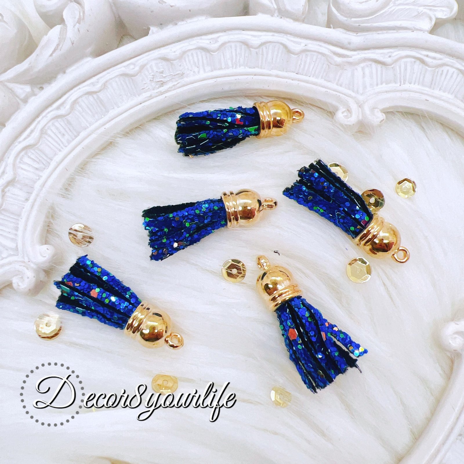 These petite tassels arrive in a five-piece set, each charm measuring approximately 1.5 inches long and about ¼ inch wide. Each tassel features shimmering sequins and an elegant gold-tone metal cap with a loop attachment—ready to be added to your journals, keychains, bags, or craft projects.