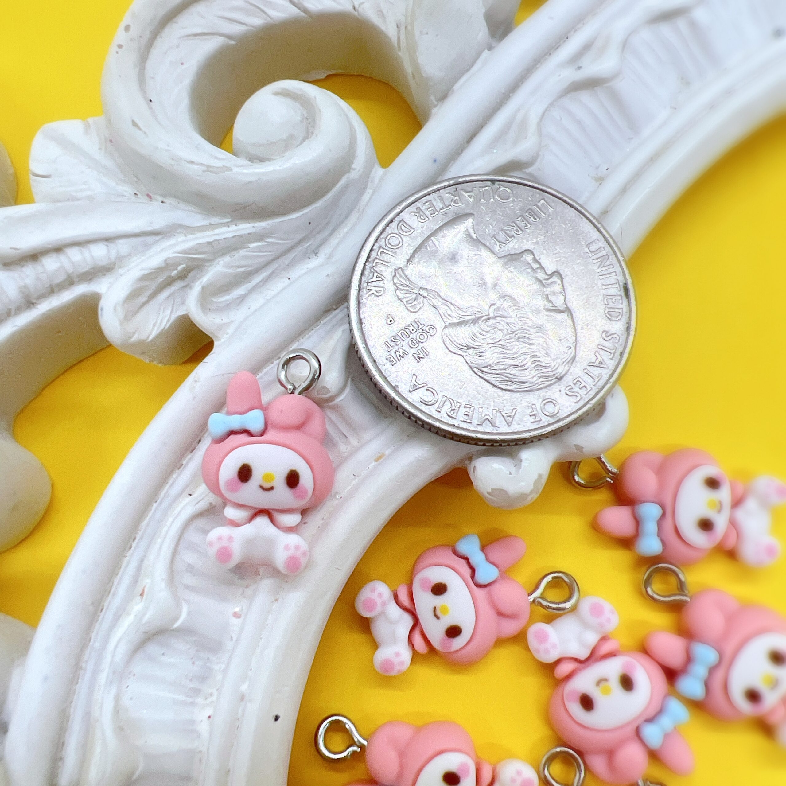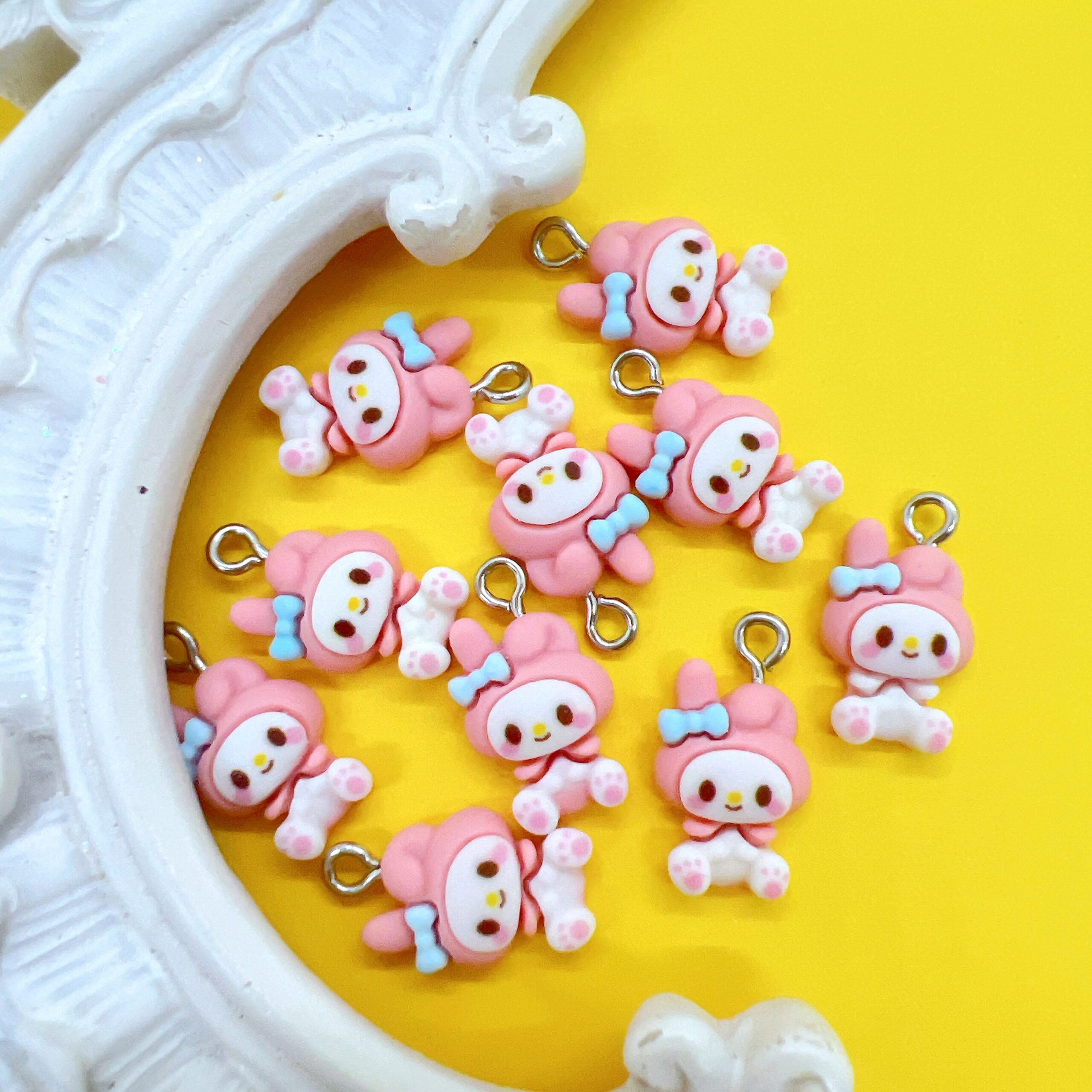 These My Melody charms are sold as a set of two, making them ideal for matching projects or coordinated designs. Whether you are creating handmade gifts, adding personality to your craft inventory, or designing items to sell, these licensed charms bring a recognizable and cheerful touch without overpowering your work.
