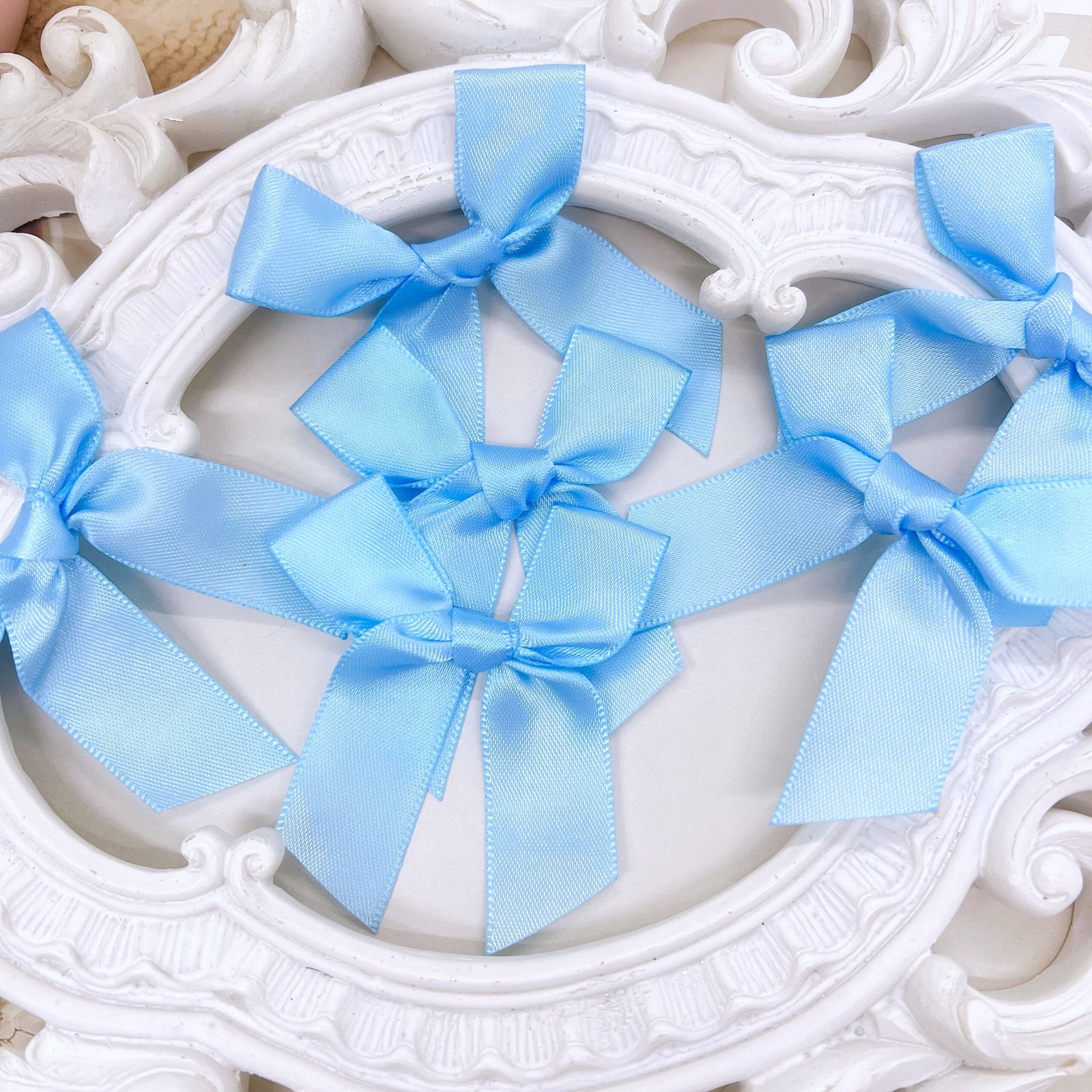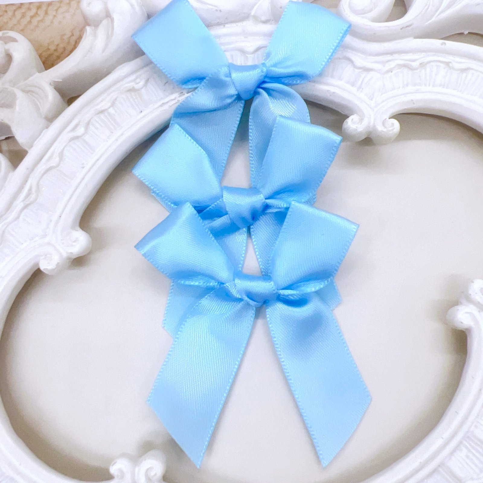 Pastel Blue Handmade Satin Bows – Set of 3