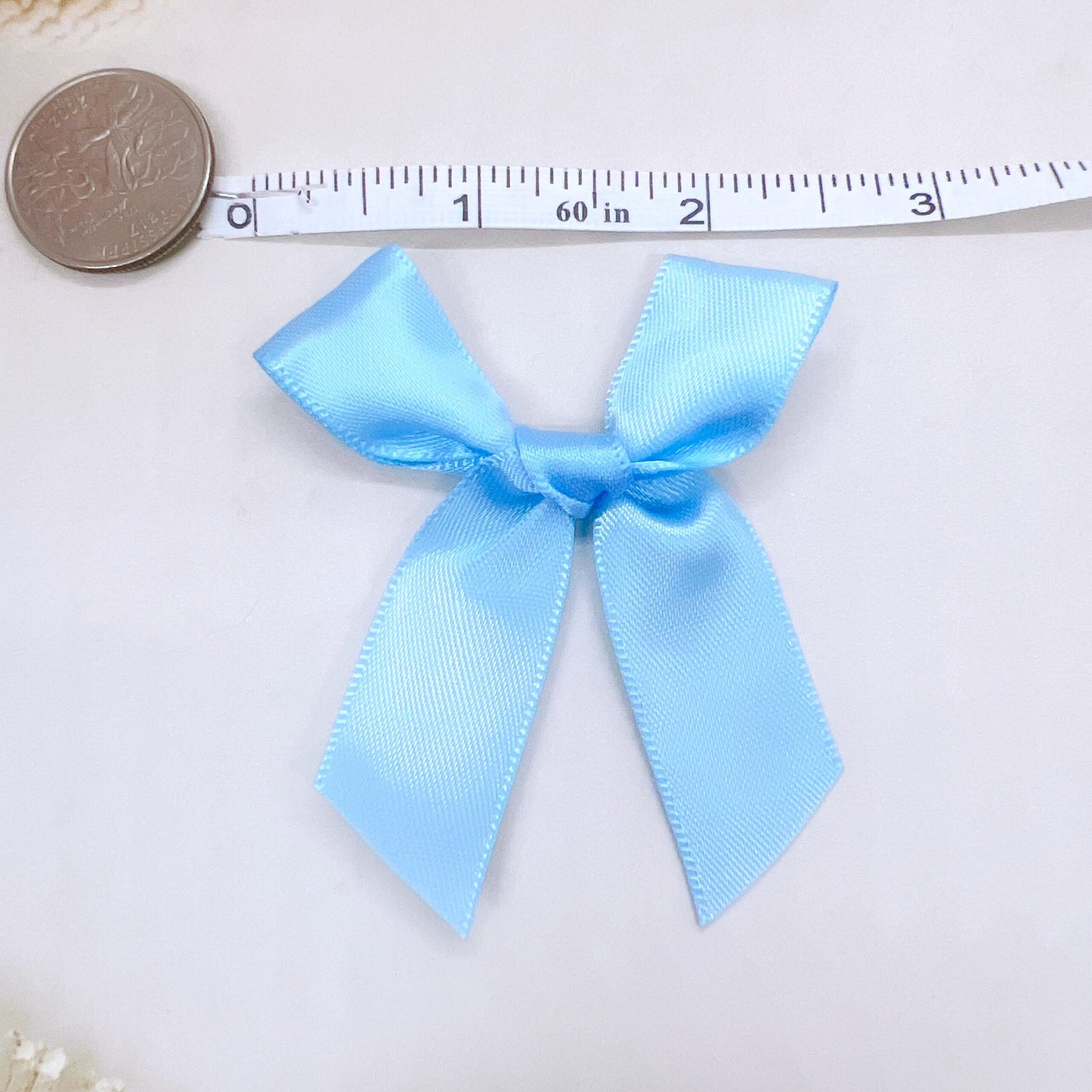 Each of these pastel blue satin bows is handmade with precision, giving your projects a refined, elegant look. Our bows come in a range of beautiful colors and sizes.  These satin bows are approximately 2.5 by 3 inches in size, and you get three handmade bows per pack.