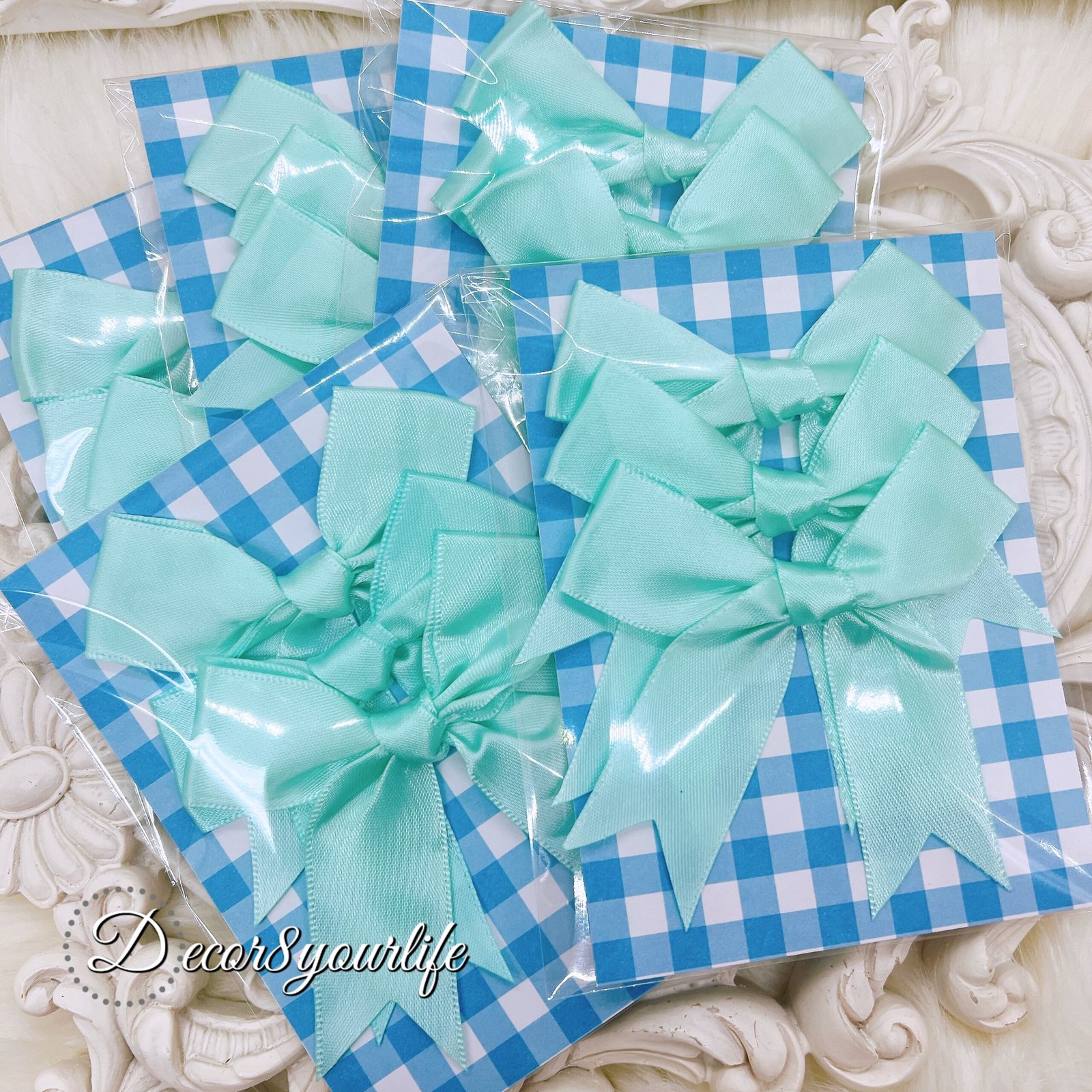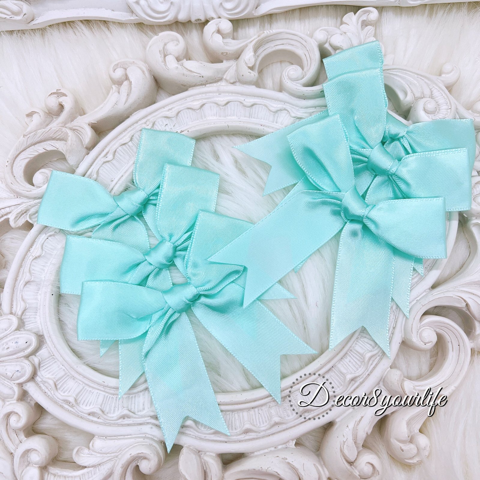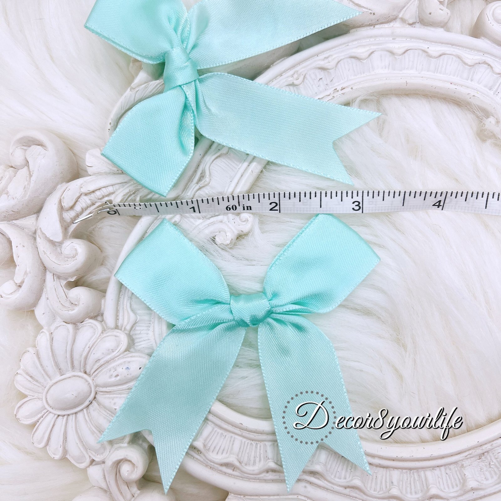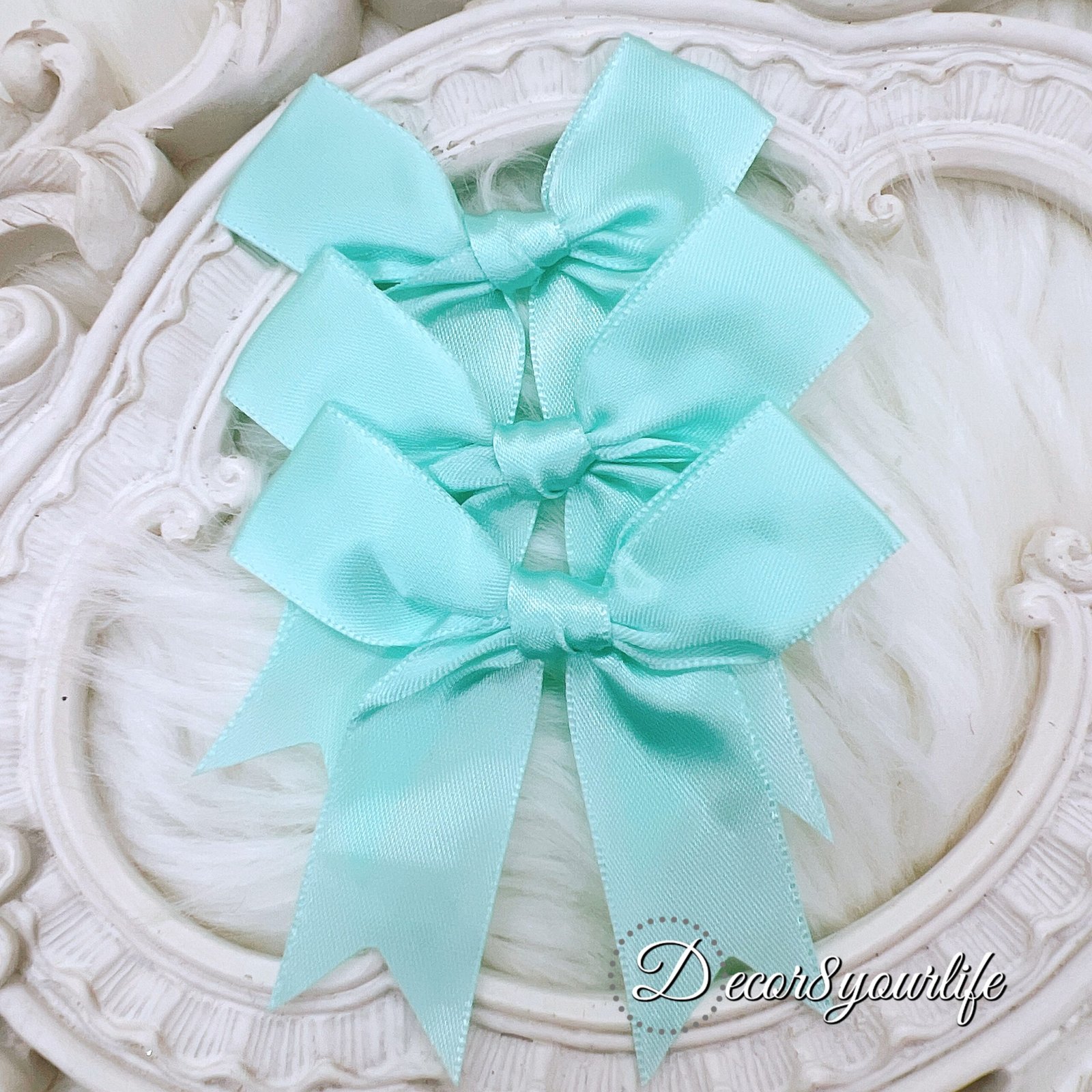Each of these Tiffany-blue (pastel green) satin bows is handmade with precision, giving your projects a refined, elegant look. Our bows come in a range of beautiful colors and sizes.  These satin bows are approximately 3 by 3 inches in size, and you get three handmade bows per pack.