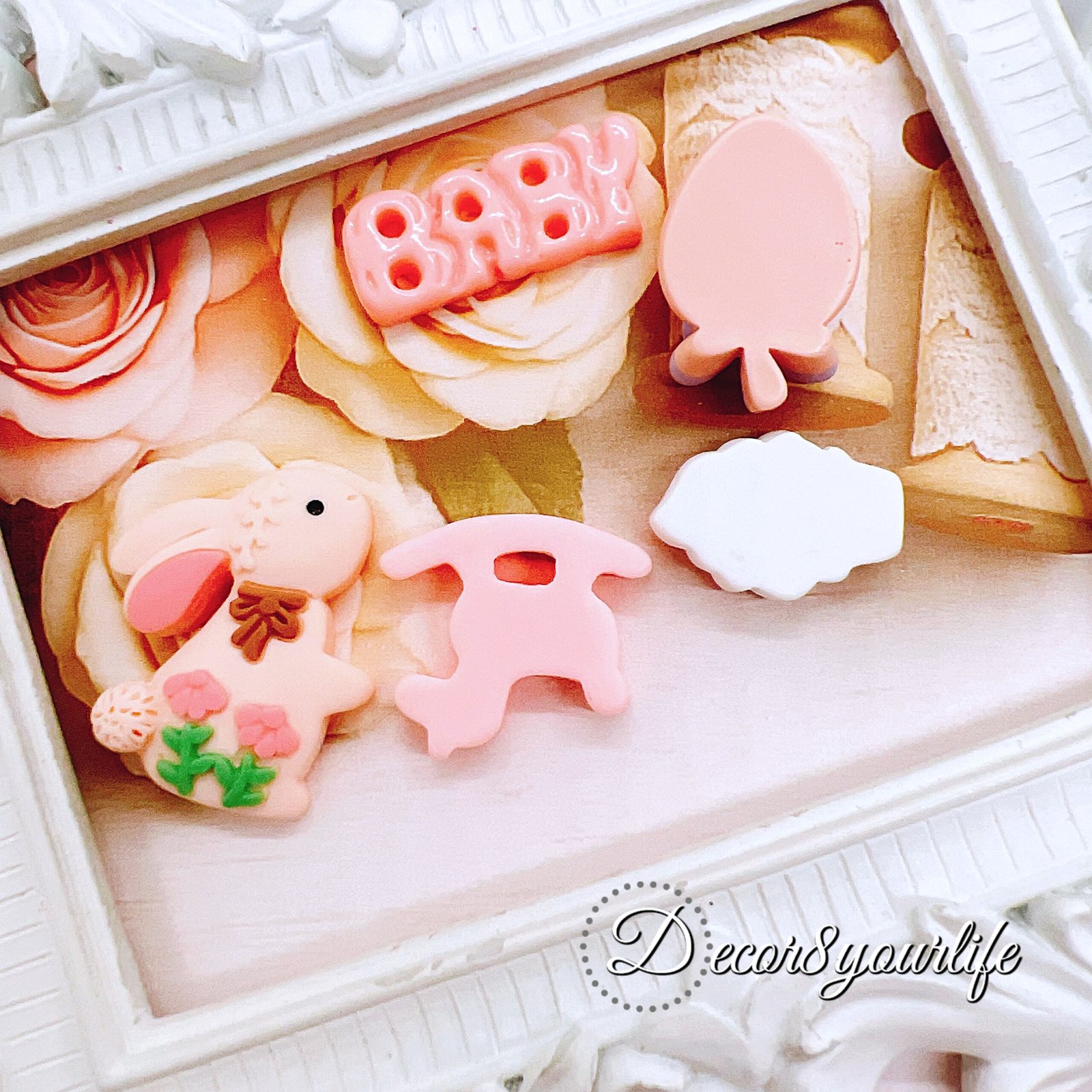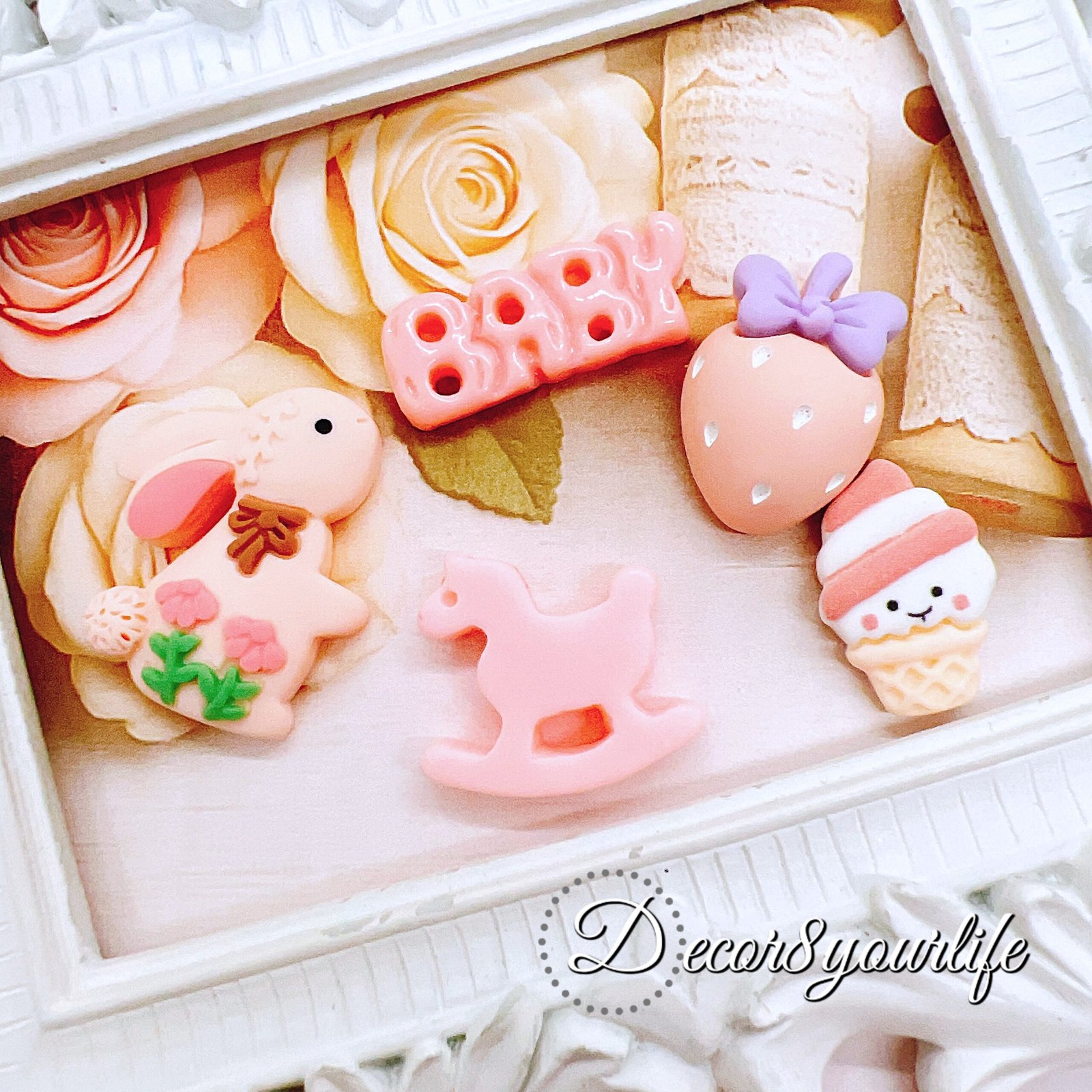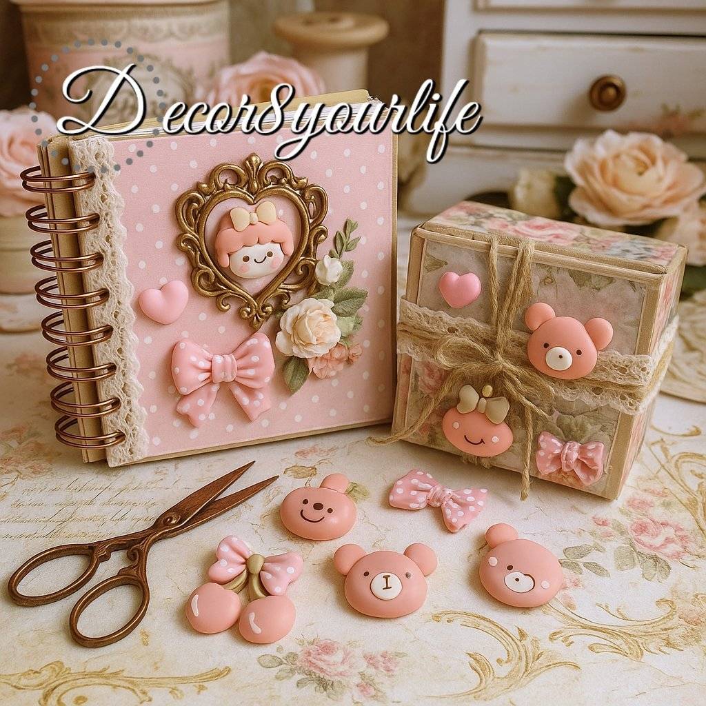 Pastel peach cabochons are back on the desk 💗 Five cute pieces per set, sized for detail work (about 0.5″–1″). Glue them on planner clips, mini album covers, shaker charms, gift tags… or pop one in a bow center and watch it transform.