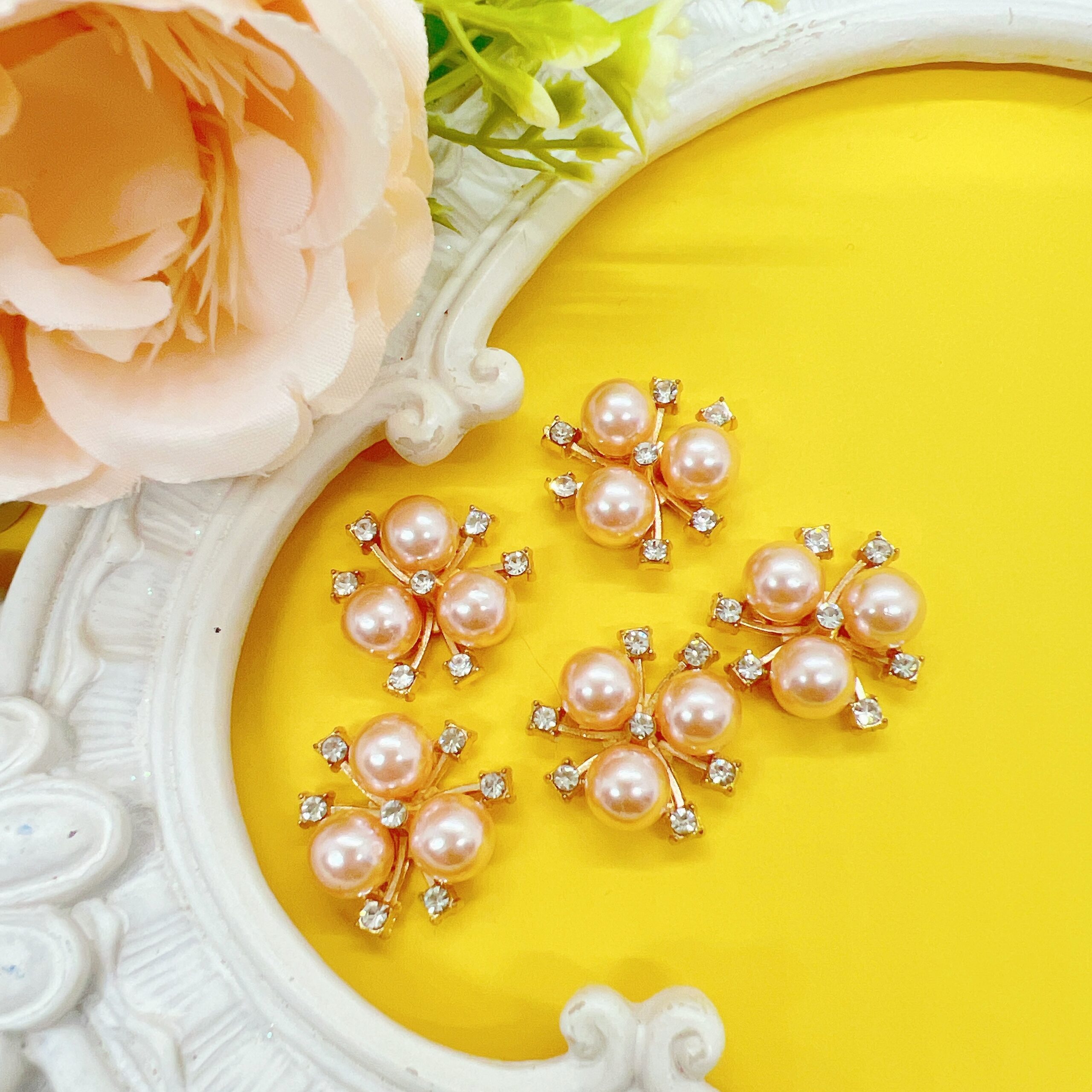 Pastel Peach Pearl Cabochon with Rhinestones – Set of 5, Approx. Size 3/4″
