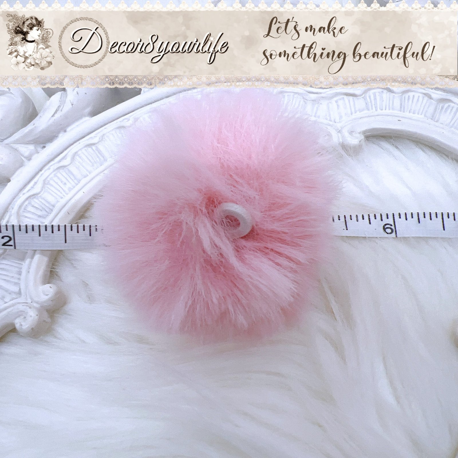 Pastel Pink Faux Fur Pom Pom Charm – Soft Glam Craft Embellishment