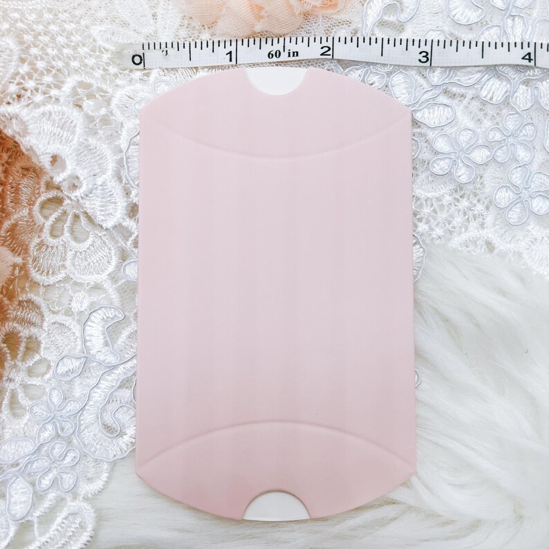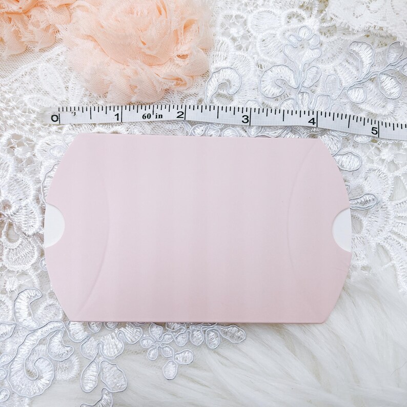 Each pillow box measures approximately 4 ½ x 2 ¾ inches and is perfectly sized for jewelry, candies, soaps, tea, ephemera, mini keepsakes, and heartfelt notes. Their smooth pastel pink finish makes them ideal for baby showers, bridal showers, weddings, birthdays, Valentine’s Day, Easter baskets, and handmade business packaging.