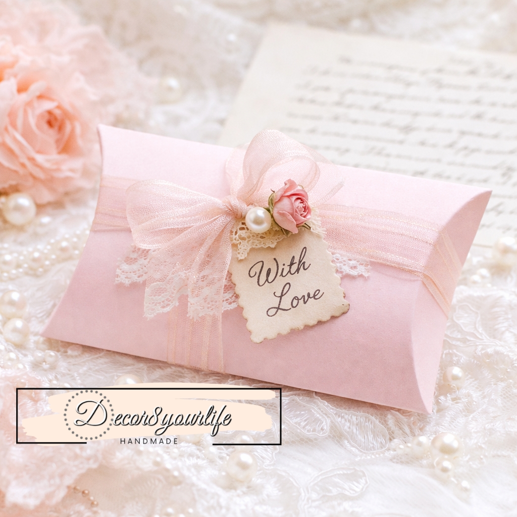There’s something so sweet about pastel pink packaging. These pillow boxes are one of my favorite ways to dress up small gifts, happy mail, and handmade surprises. I love tying them with lace, soft ribbons, and a simple tag, then filling them with chocolates, jewelry, mini soaps, or journaling ephemera. They also make the cutest pockets and tuck-ins for junk journals and scrapbooks.