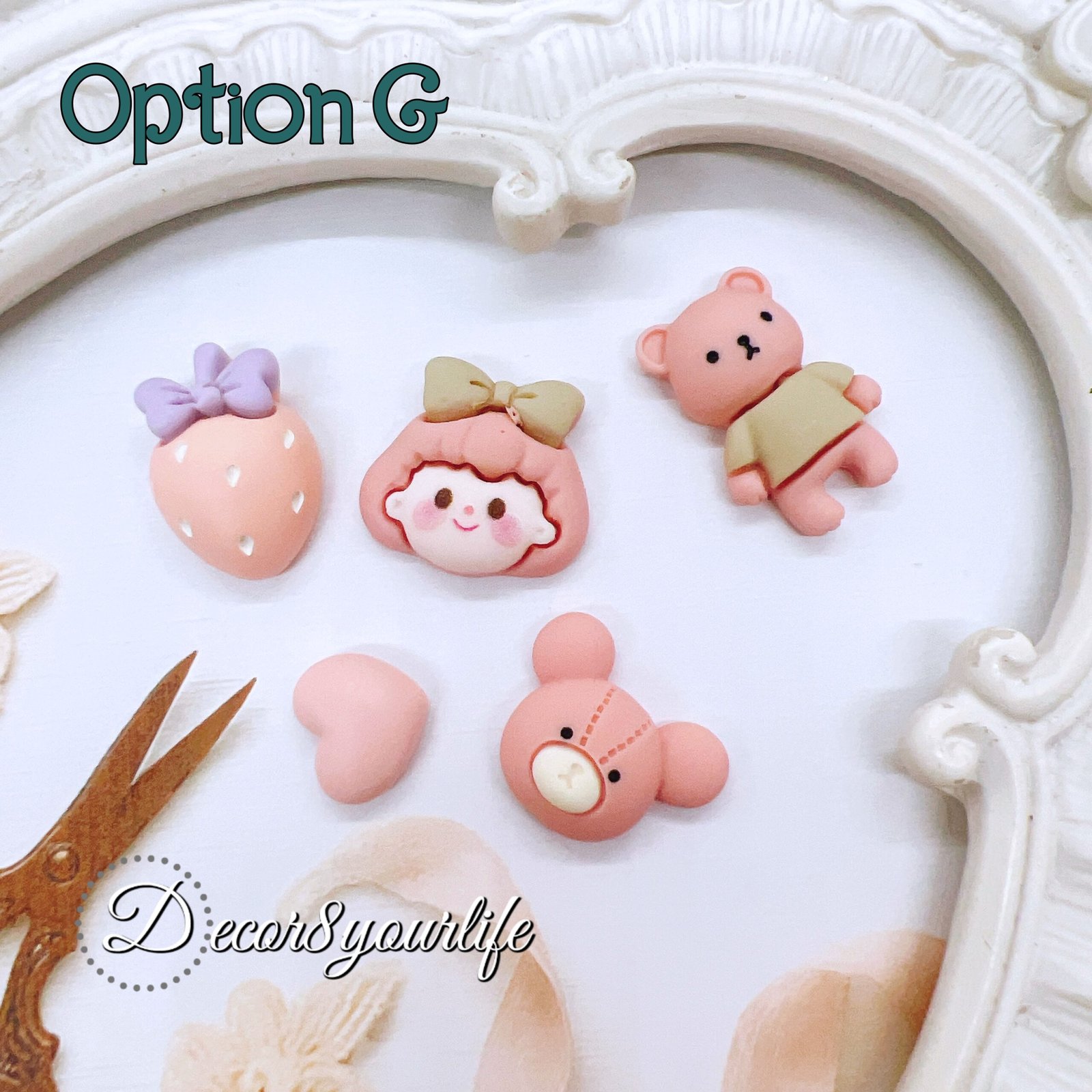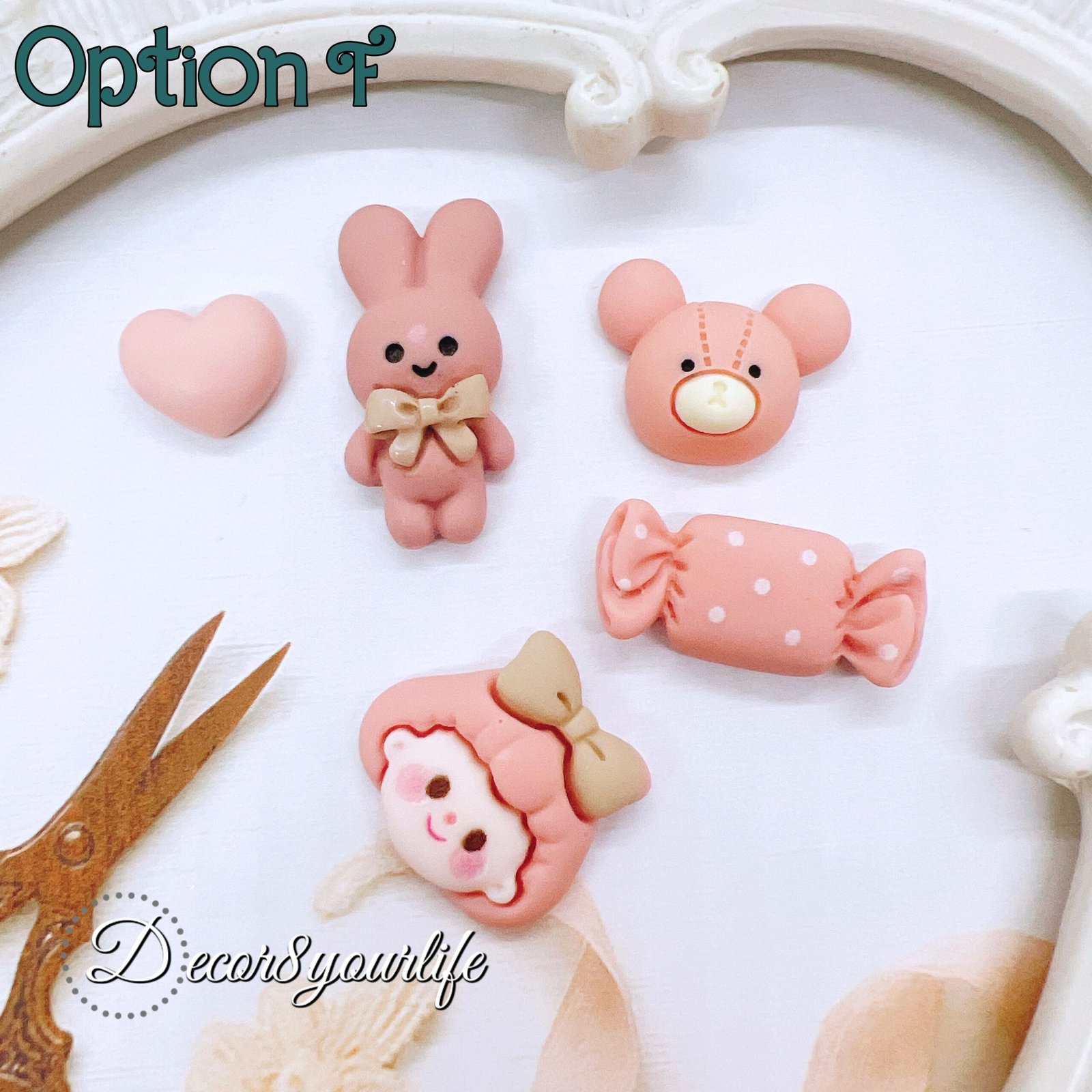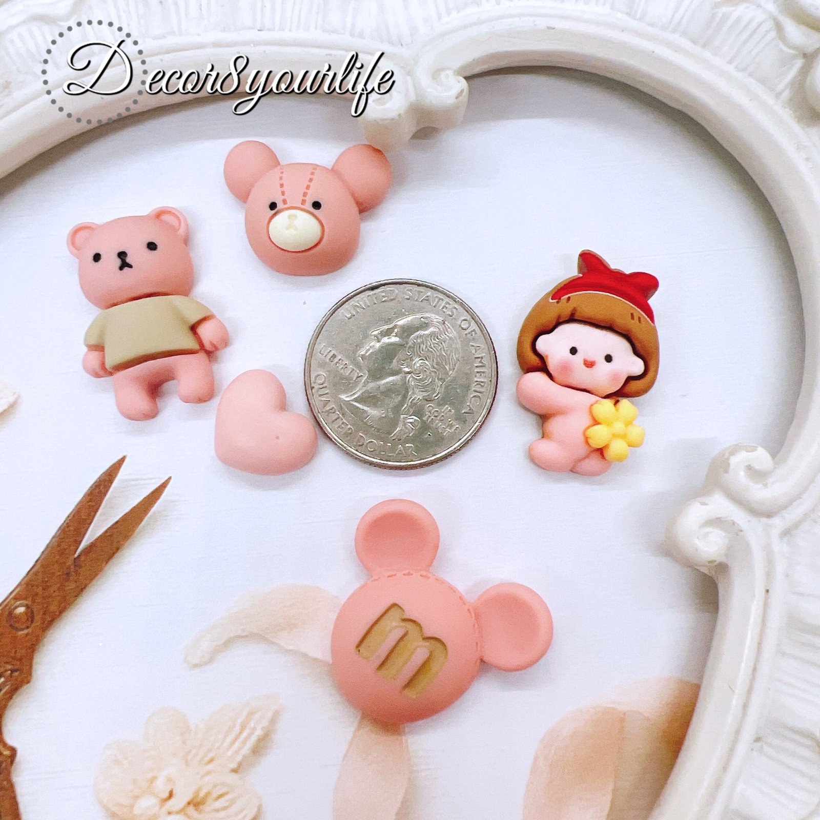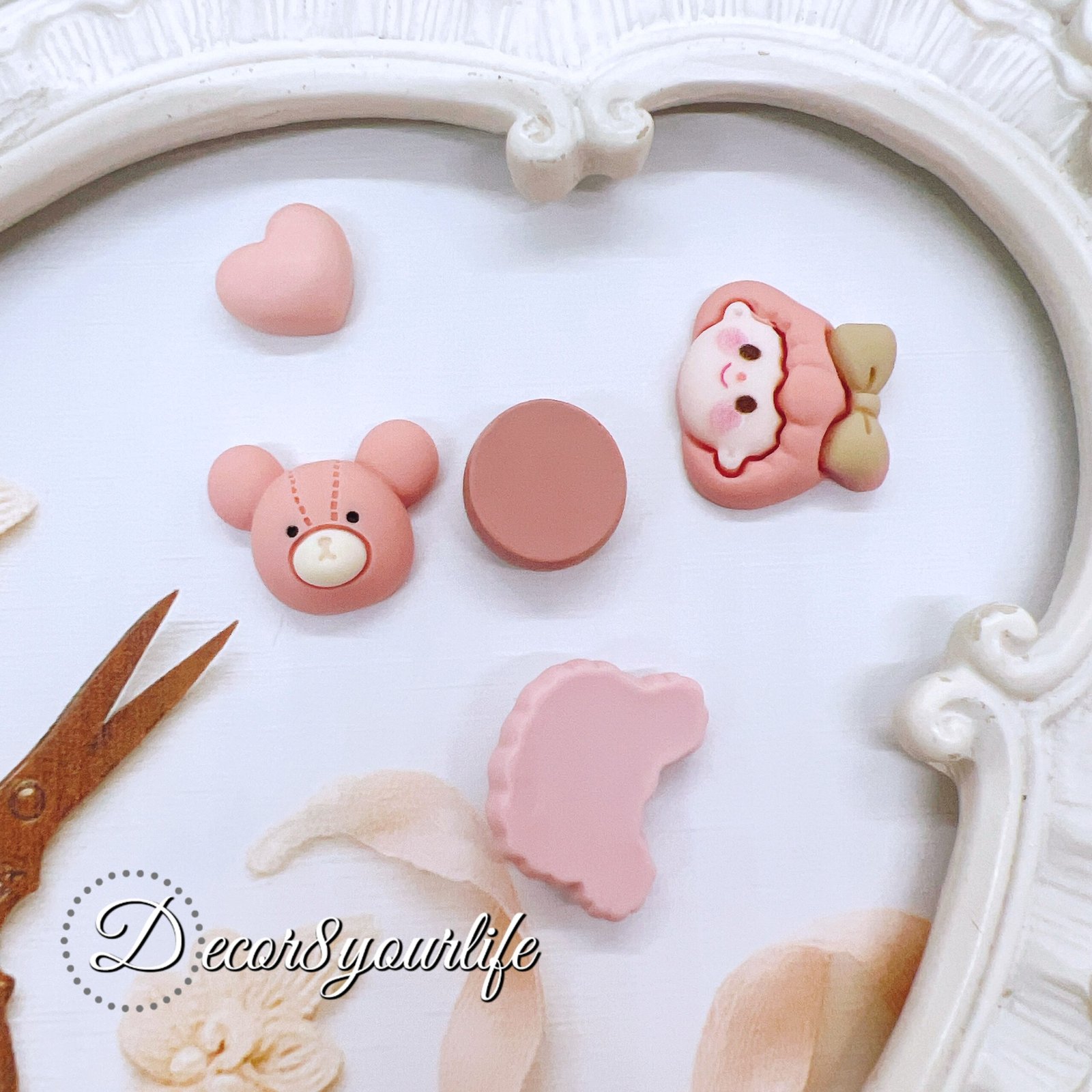 Bring a pop of color and personality to your creative projects with this delightful set of five resin flat-back cabochons. Each pack comes with a mix of small, kawaii-style shapes — from cute characters and strawberries to bows, candies, and other adorable mini designs.