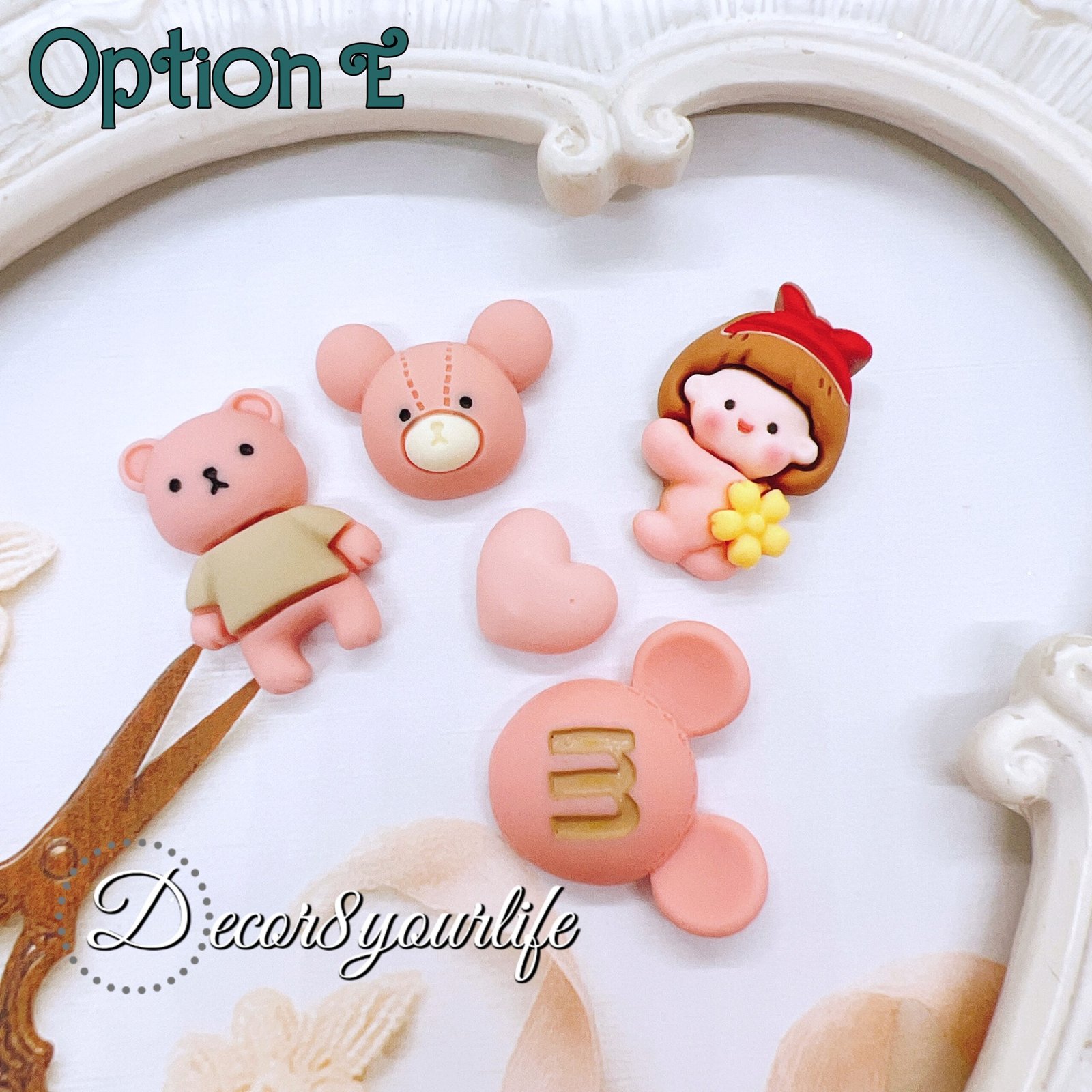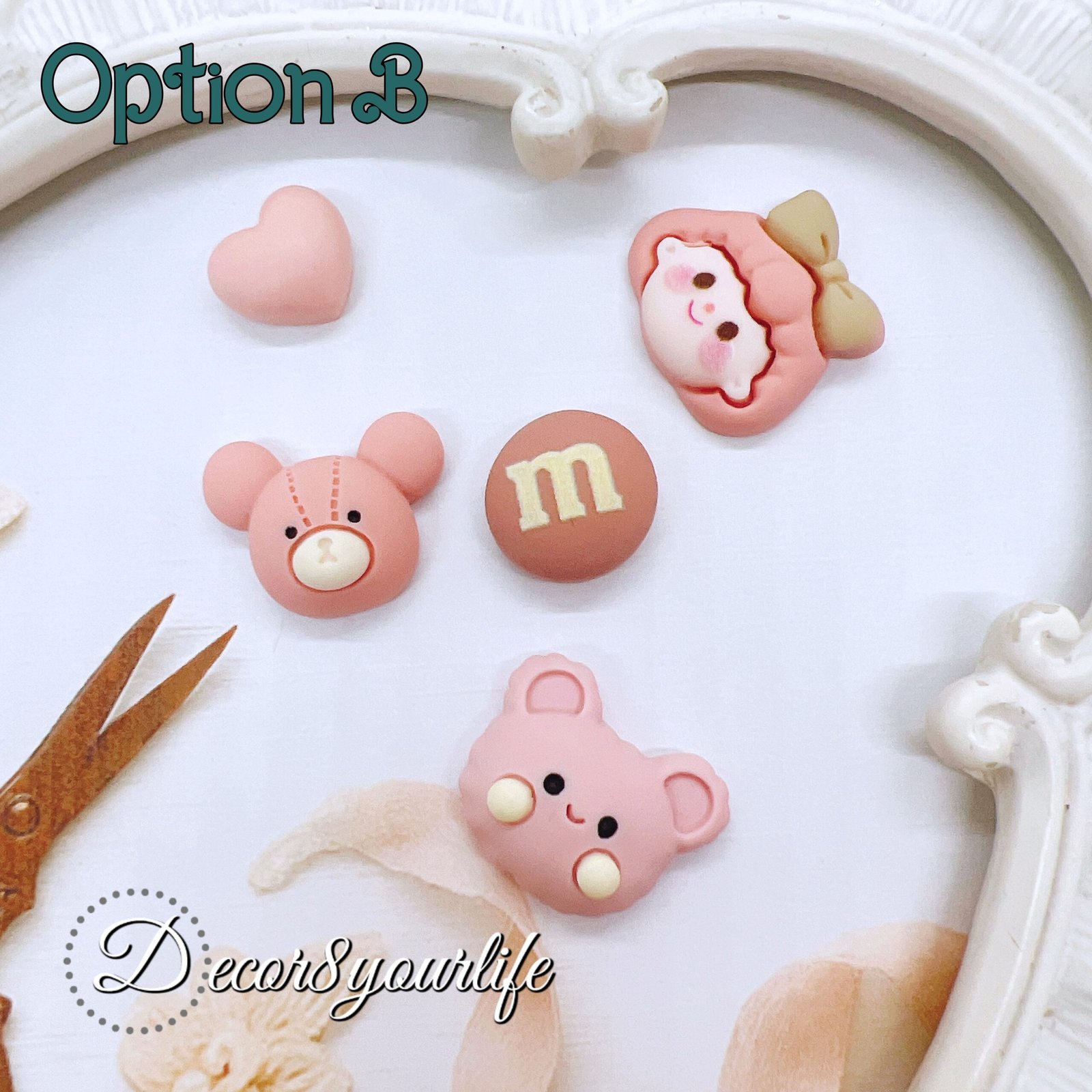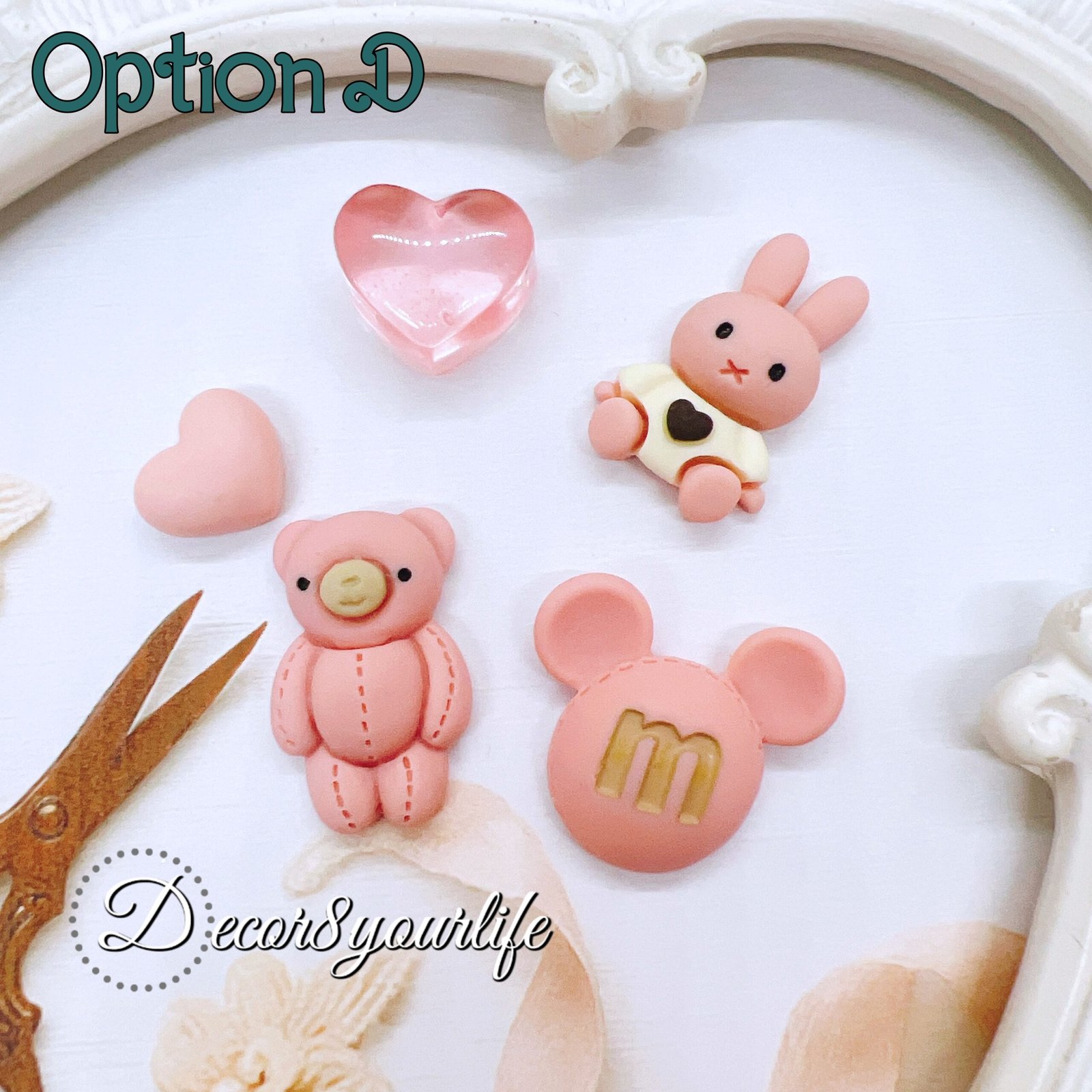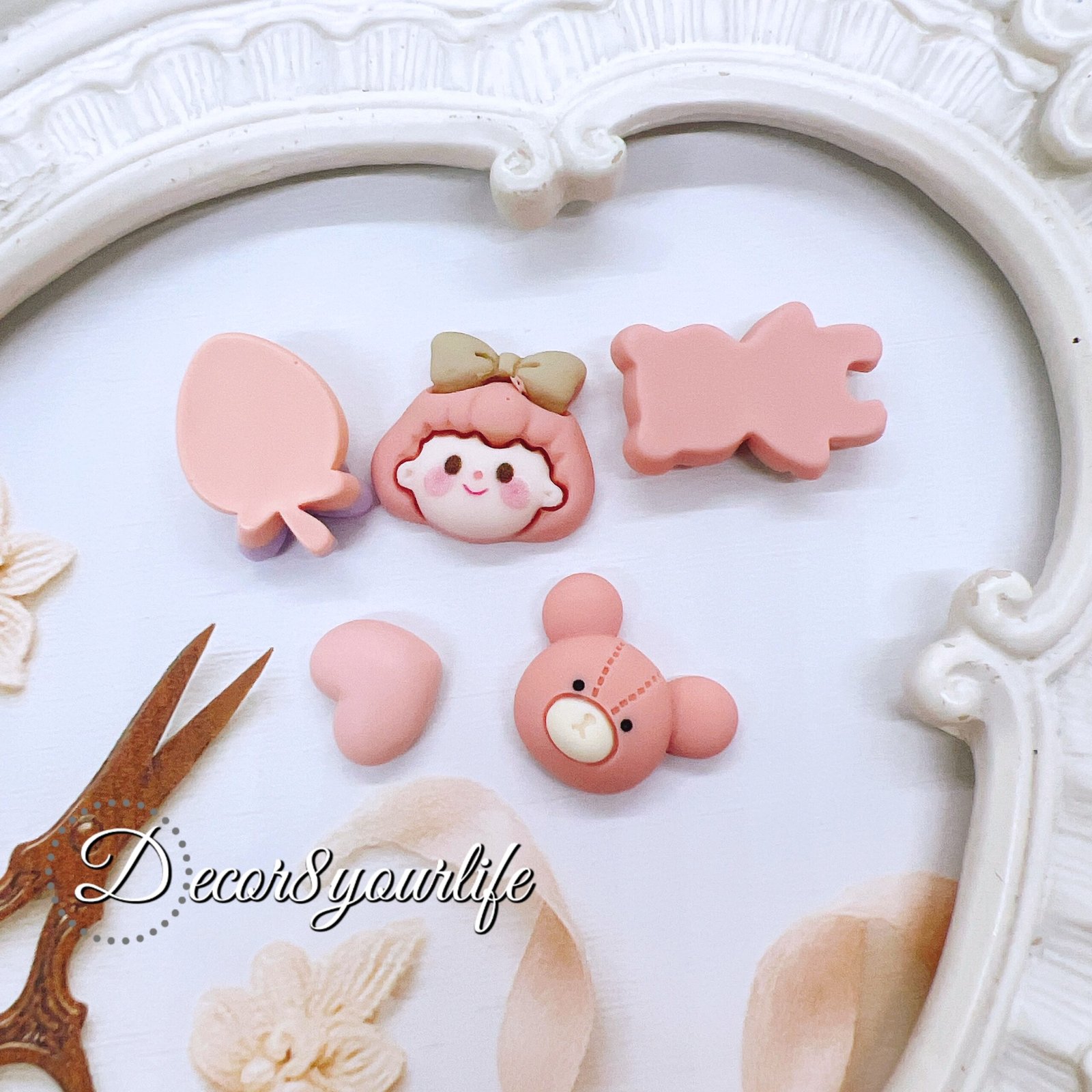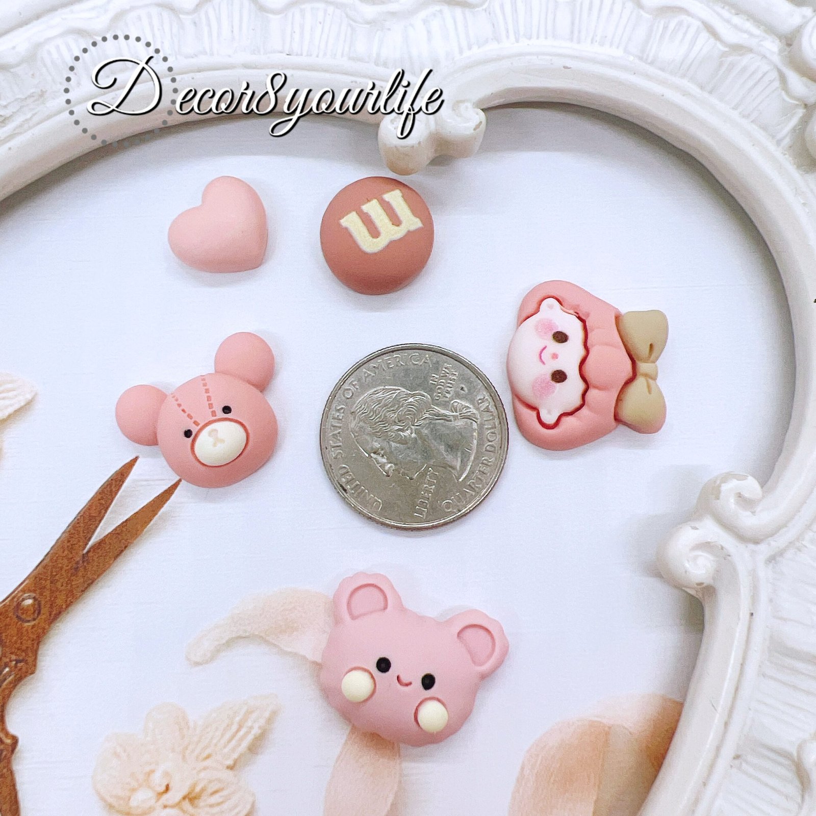 Bring a pop of color and personality to your creative projects with this delightful set of five resin flat-back cabochons. Each pack comes with a mix of small, kawaii-style shapes — from cute characters and strawberries to bows, candies, and other adorable mini designs.