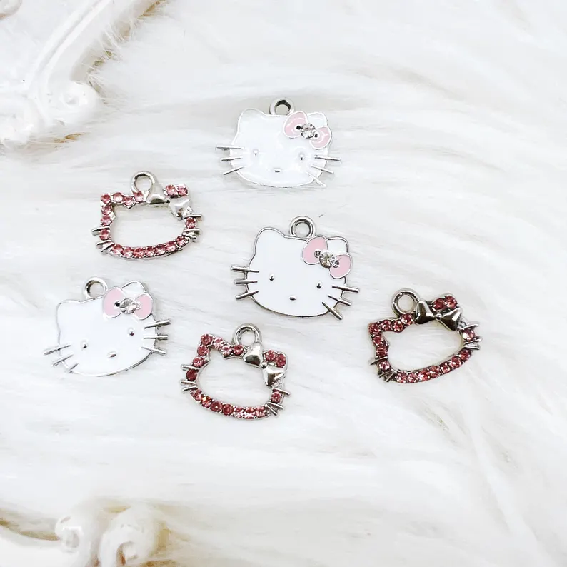 This assortment includes three traditional solid enamel Hello Kitty face charms and three open-style outline charms decorated with shimmering rhinestones. The combination gives you both a clean, iconic look and a more decorative, jewelry-inspired option, making the set perfect for a wide range of uses such as planners, traveler’s notebooks, junk journals, scrapbook layouts, handmade jewelry, keychains, zipper pulls, and phone charms.