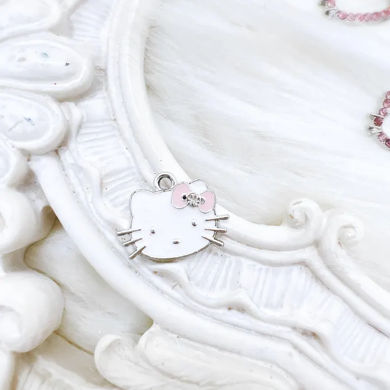 Pink and White Hello Kitty Charms – Official Sanrio Licensed Enamel & Rhinestone Craft Charms (Pack of 6)