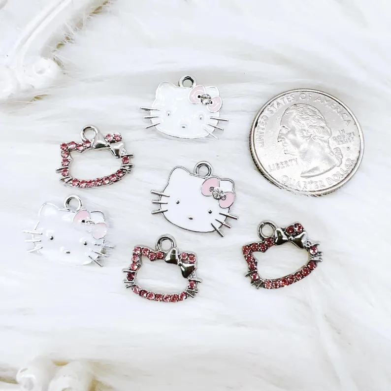 Add a touch of timeless cuteness to your creative projects with this officially licensed Sanrio Hello Kitty charm set. Each pack includes six silver tone charms in a coordinated pink and white theme, featuring a mix of classic enamel designs and sparkling rhinestone accents.