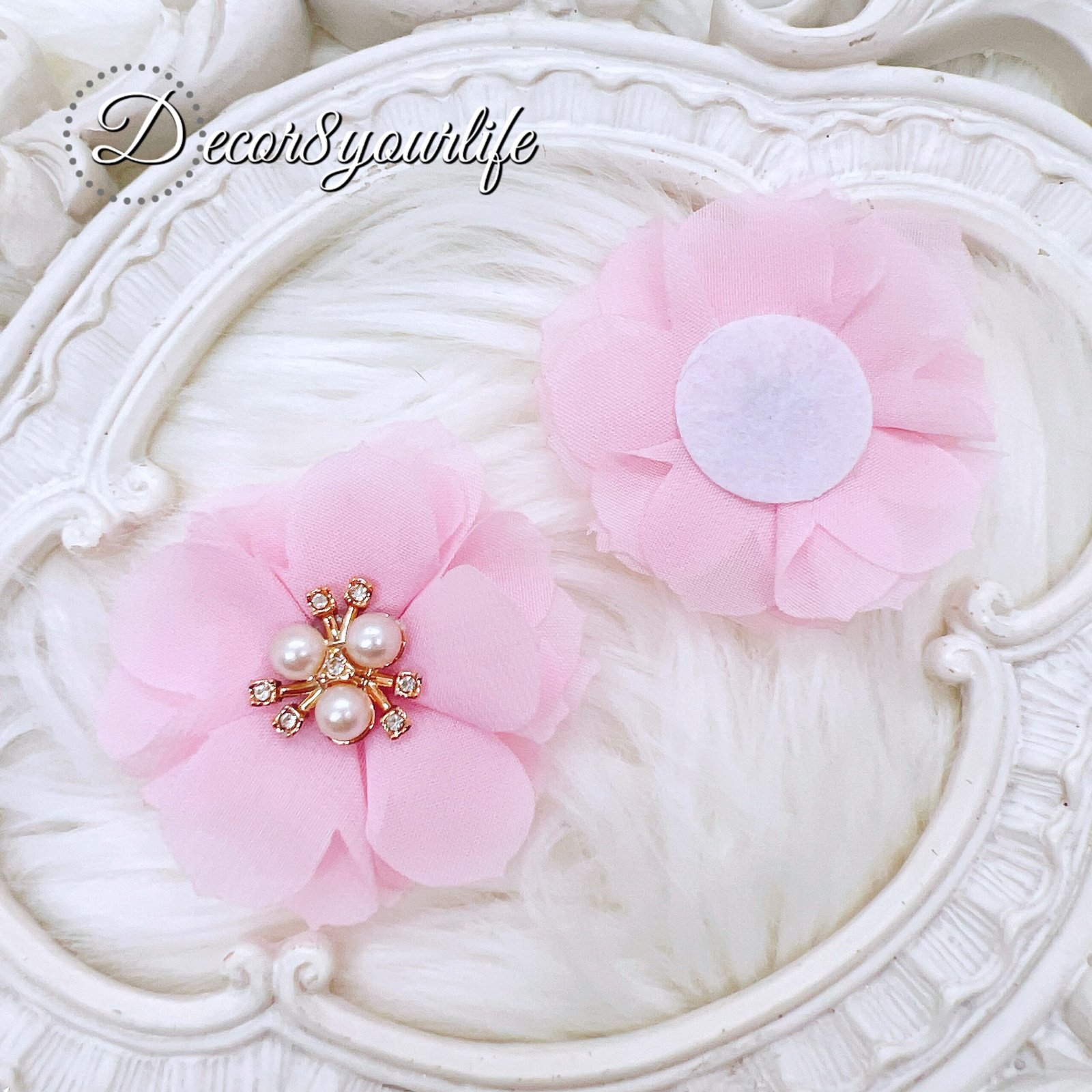 The soft chiffon material creates a gentle, romantic look, while the rhinestone centers bring a hint of glamour. The compact size makes them easy to place on a variety of surfaces, and their flat backs ensure a secure fit when adhered with glue or double-sided tape.