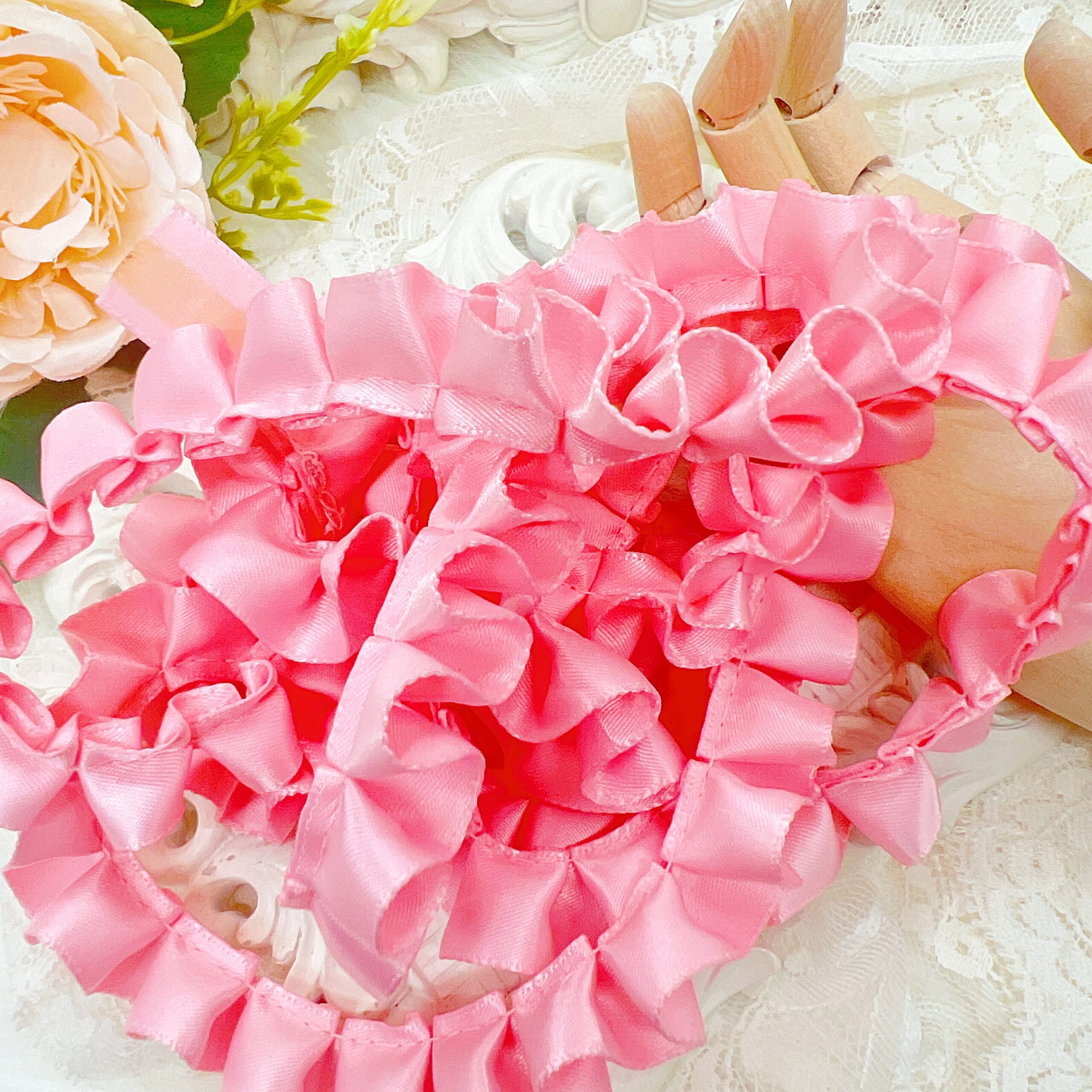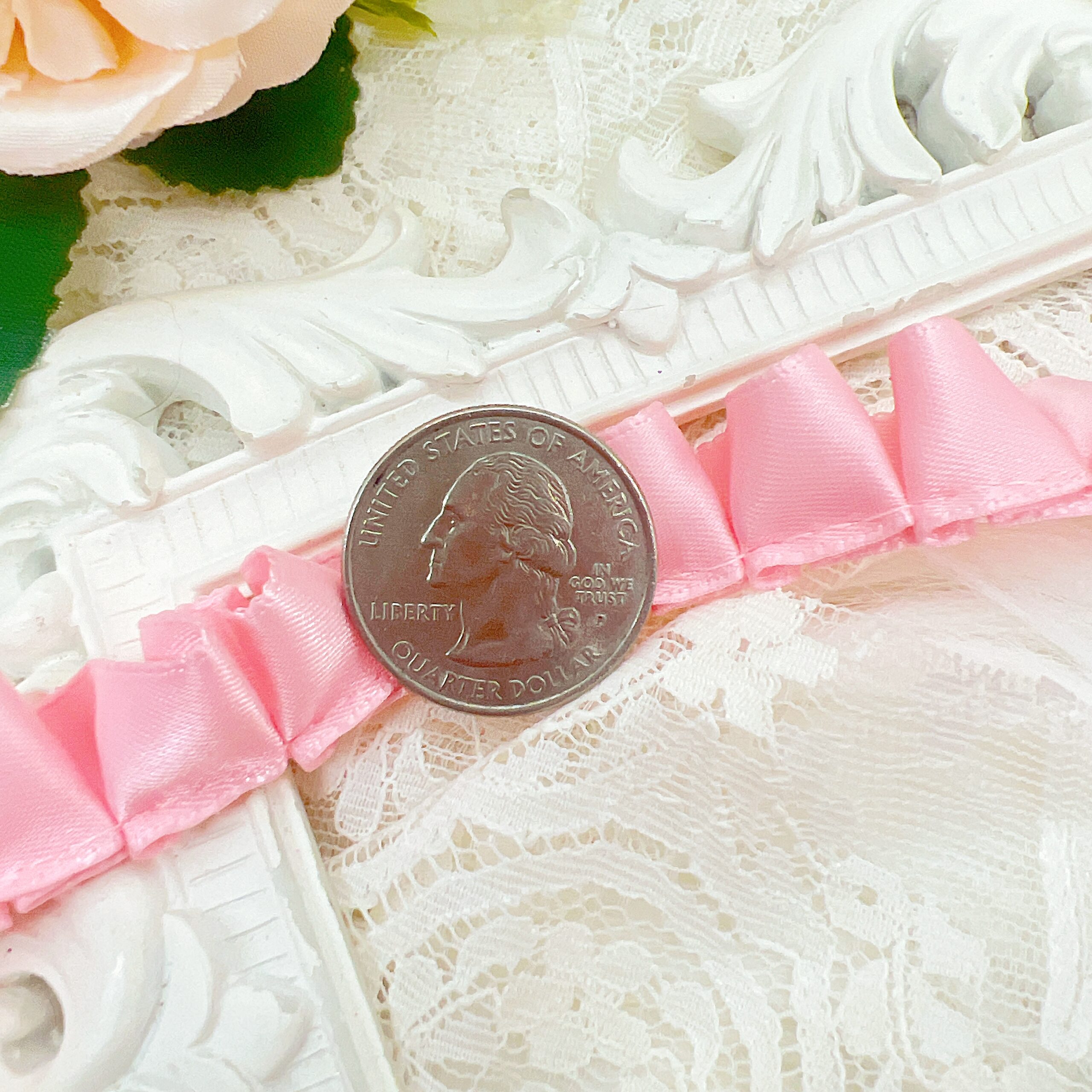Pink Satin Box-pleated Trim – Romantic Vintage Craft Trims for Journals, Planners, Sewing & Paper Arts