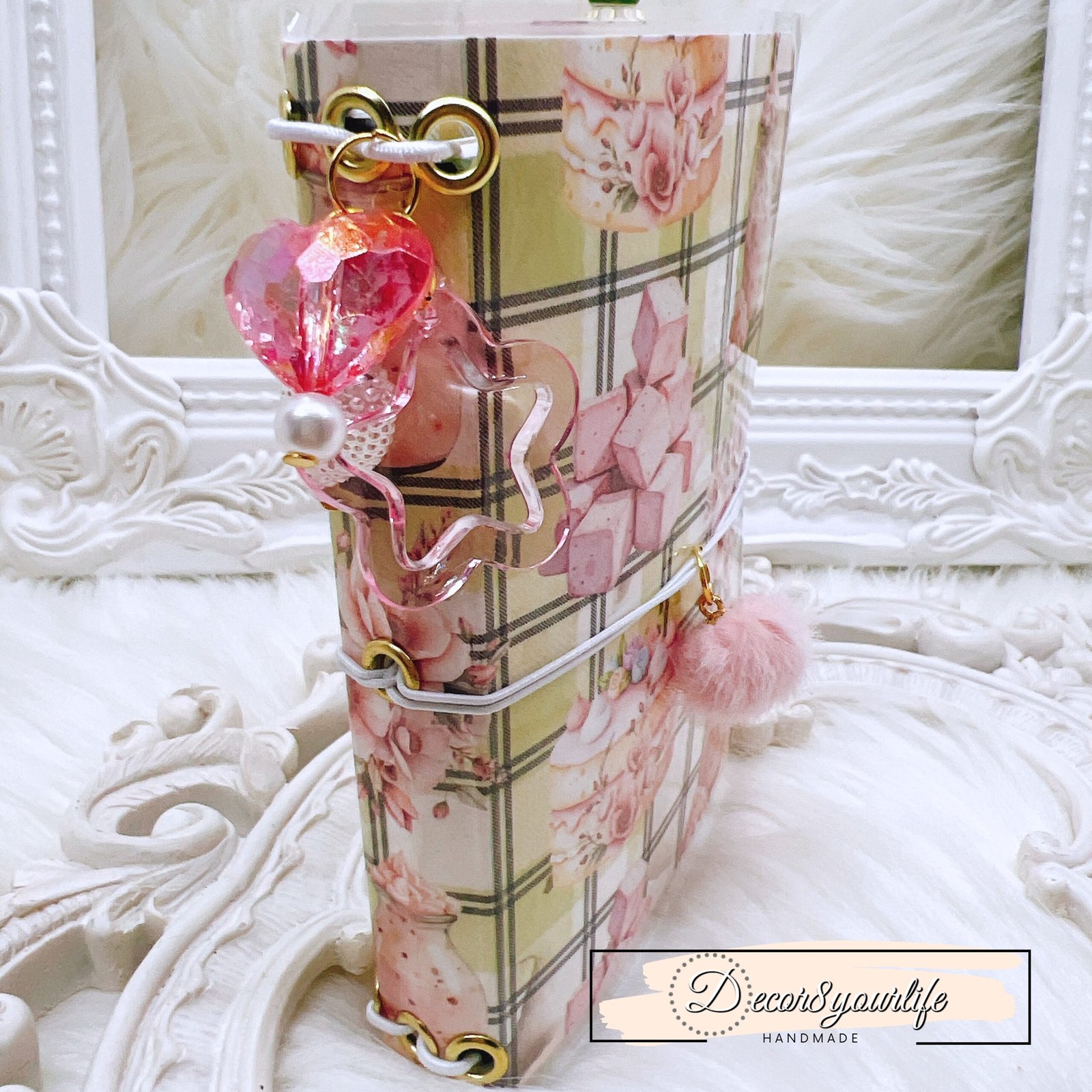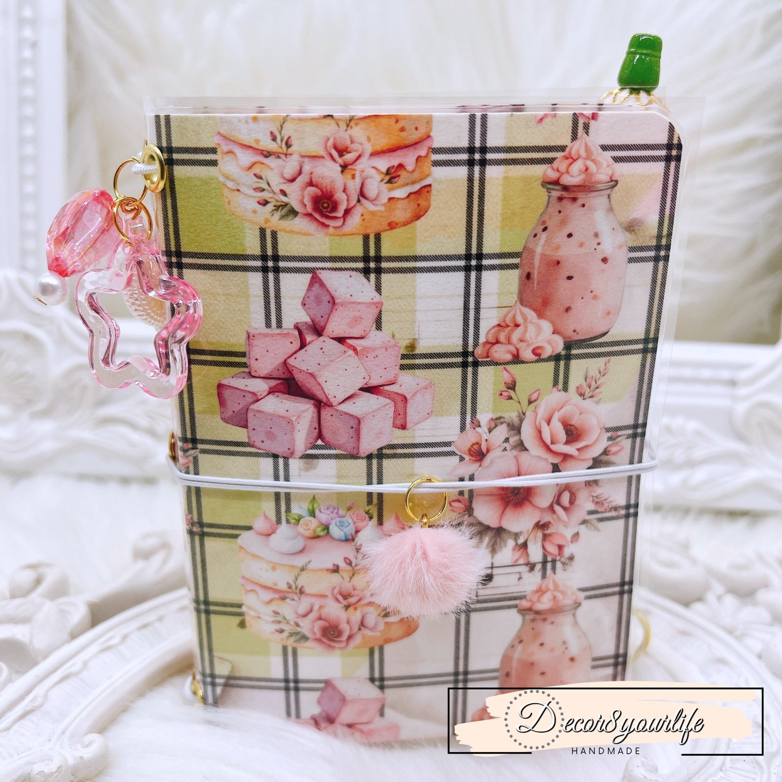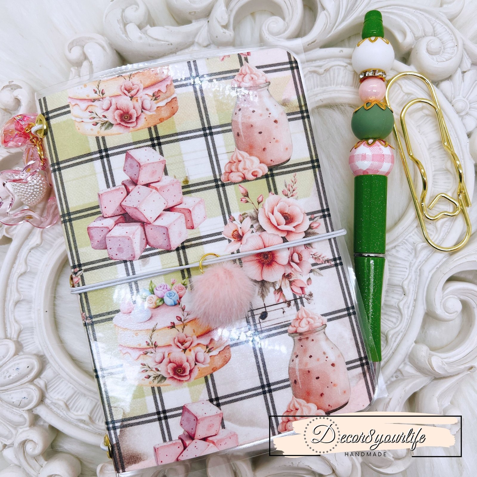 This laminated traveler’s notebook isn’t just a journal—it’s a handmade keepsake. Whether you’re looking for a unique handmade gift for a crafter or planner lover, or you’re a stationery enthusiast who appreciates the details of chunky charms and dessert-inspired art, this TN will quickly become a favorite.