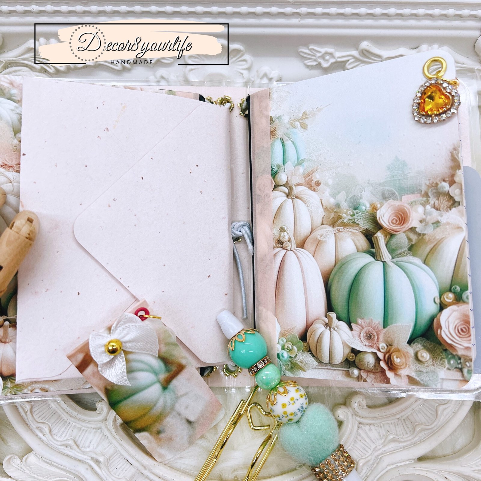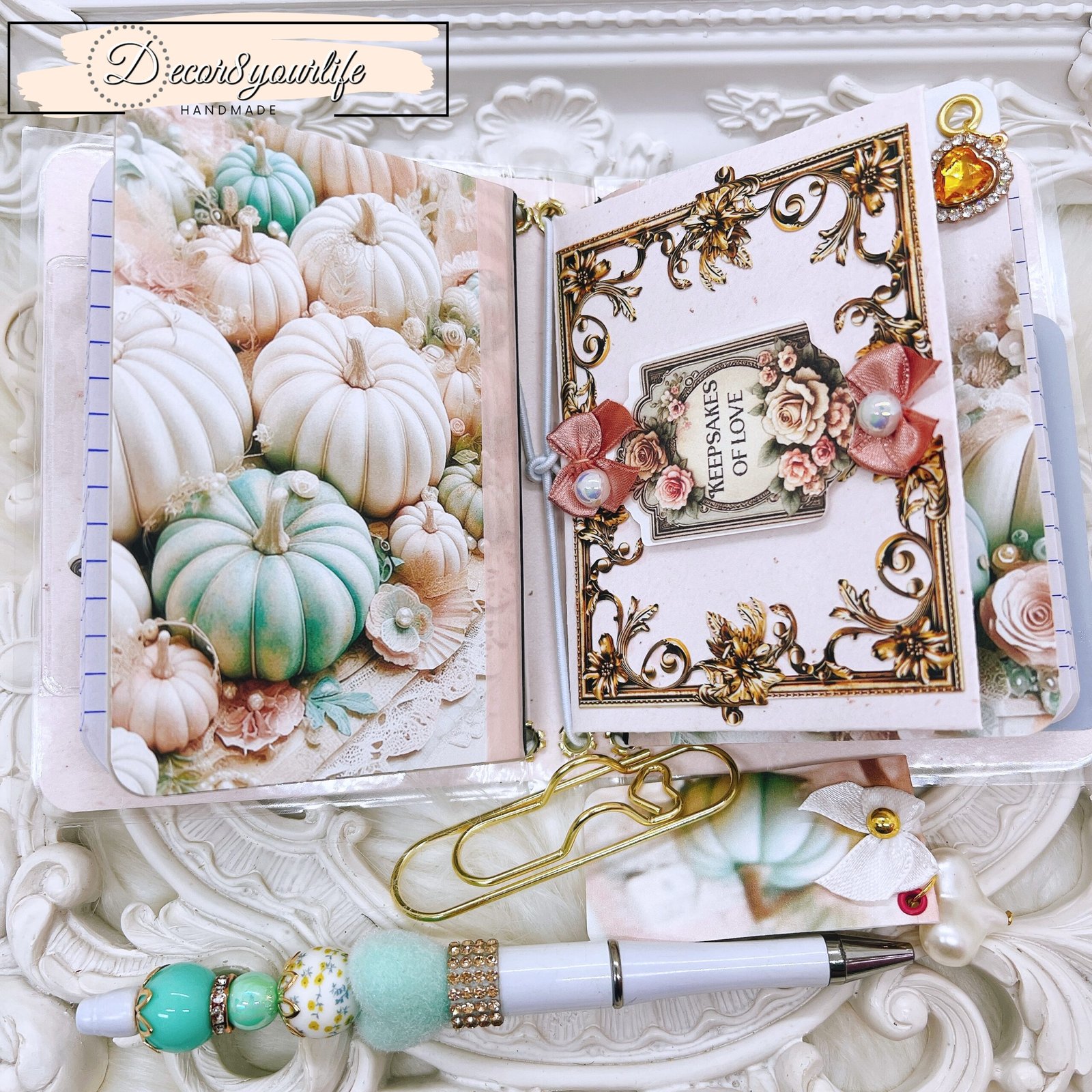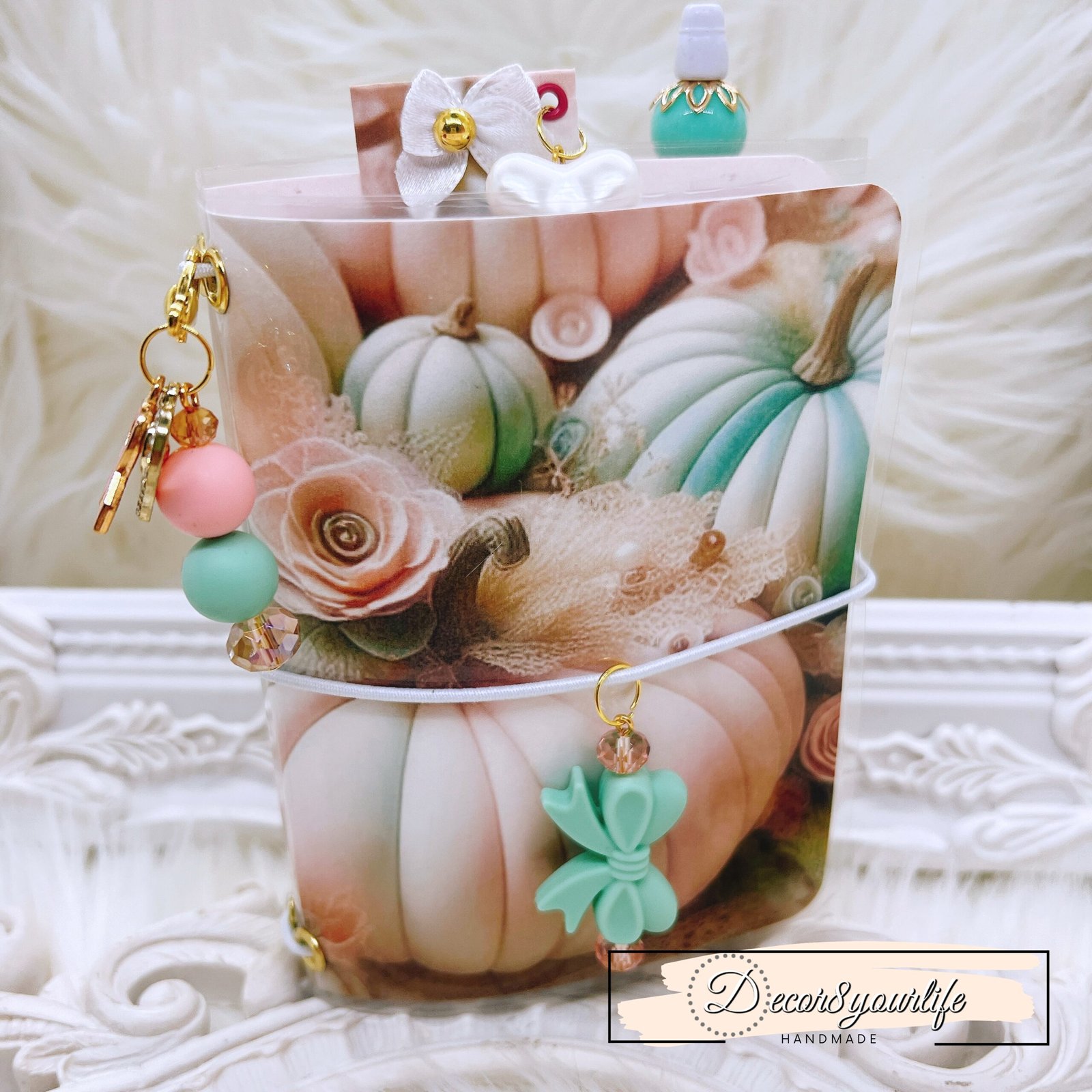 Each design features layered pastel pumpkins, delicate pearls, and soft floral accents—perfect for scrapbooking, junk journaling, mini albums, cards, planners, tags, and more. Print them on your favorite cardstock for a beautiful, professional finish.