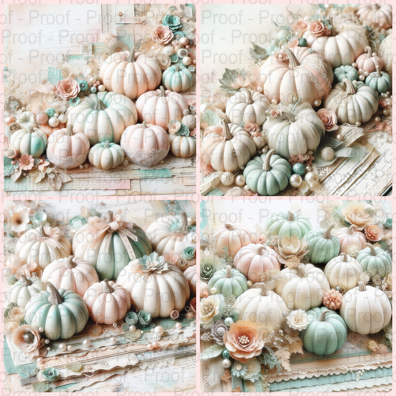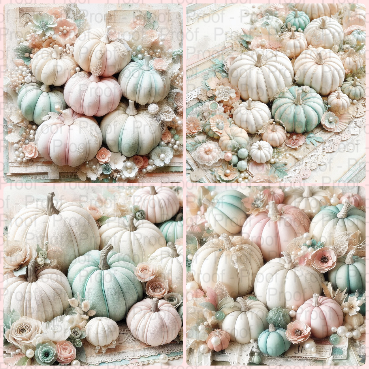 #ShabbyChicScrapbookPaper #DigitalScrapbookPaper #PrintablePaperPack #FallCraftSupplies #PastelPumpkins #JunkJournalIdeas #ScrapbookPaper #Decor8yourlife #PumpkinsAndPearls #AutumnCrafting
