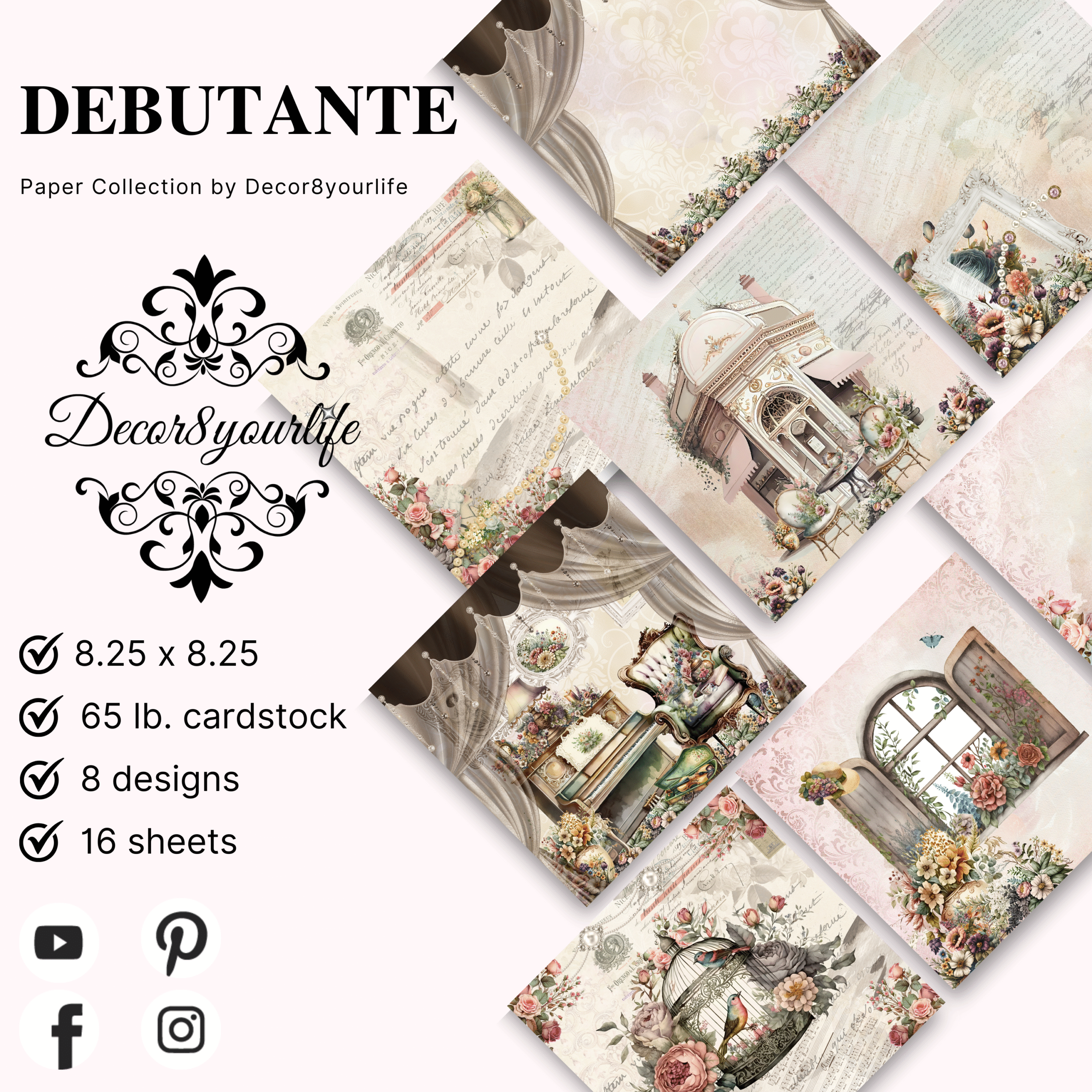 Debutante Vintage Glam Scrapbook Paper Collection – Elegant Floral Designs on Acid-Free Card Stock – 8.5 x 8.5