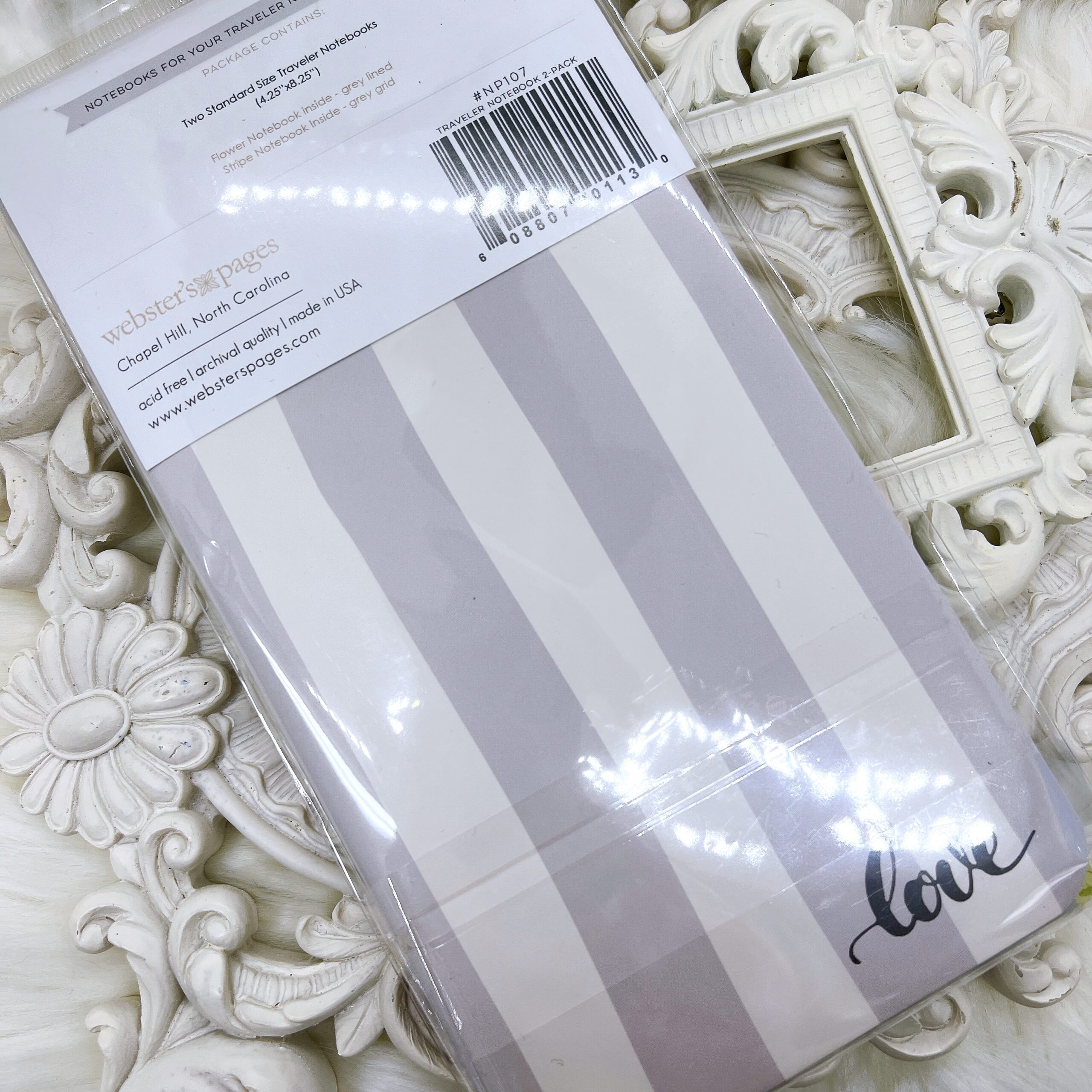 A rare Webster’s Pages traveler’s notebook insert set featuring one floral lined notebook and one striped grid notebook. Standard TN size (4.25 x 8.25 inches). Collector’s find. Limited availability.