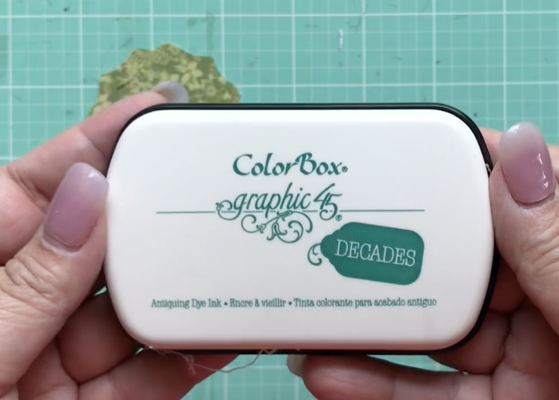 Once I’m done fussy cutting, I ink around the edges with Colorbox Graphic 45 Dark Cashmere ink.