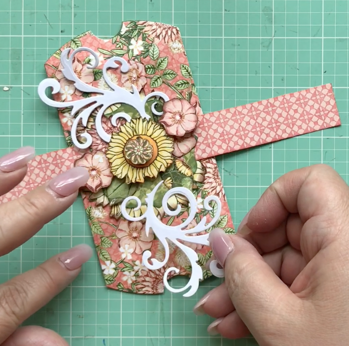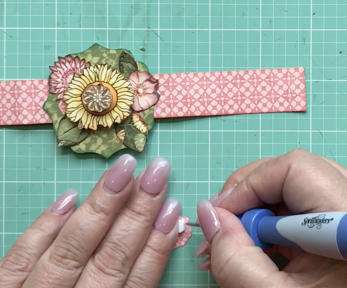 Because I’m using the 12×12 sheet, you can see how much larger the flower is. So what I decided to do was to add it to the back of the buckle; and it frames it so beautifully!